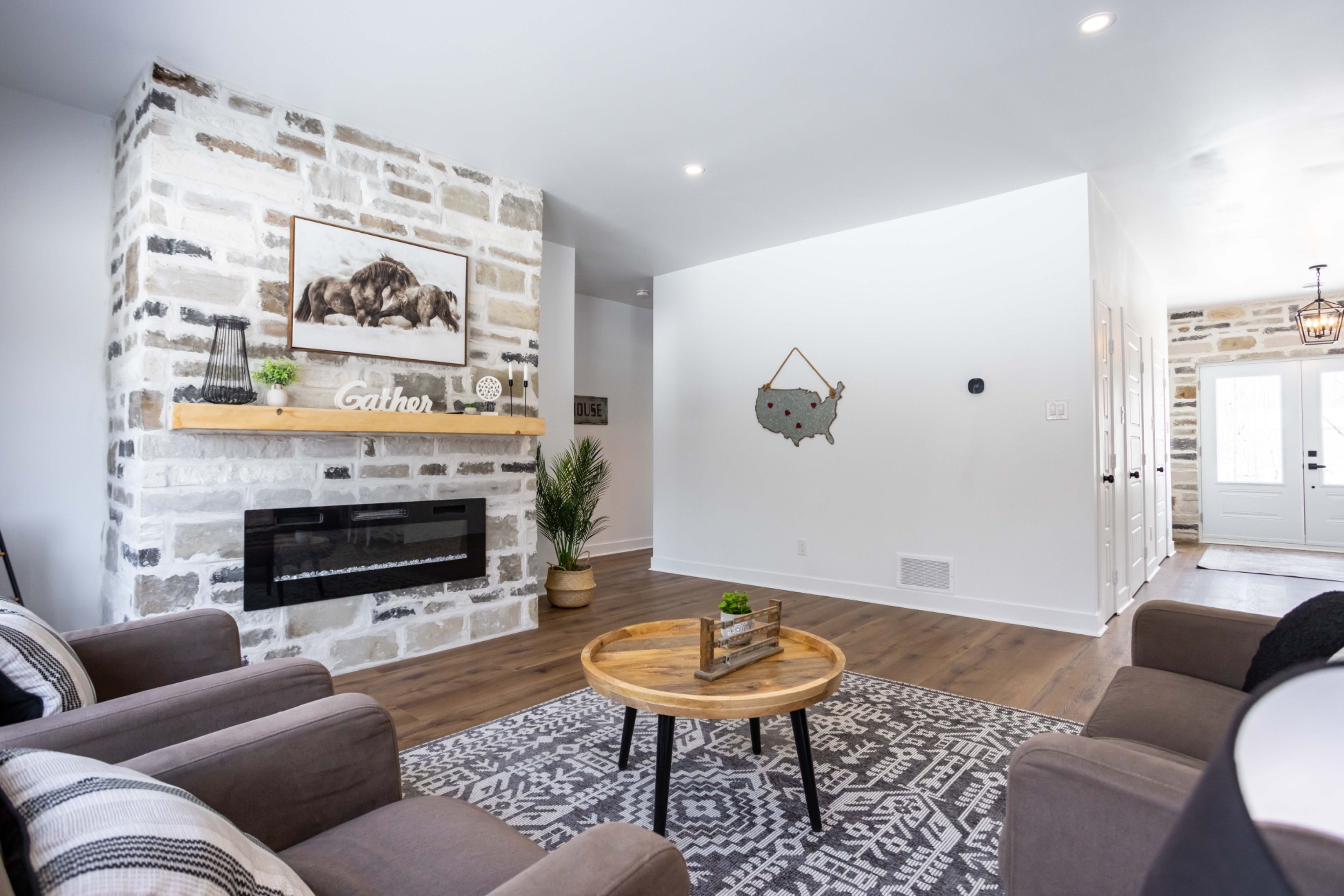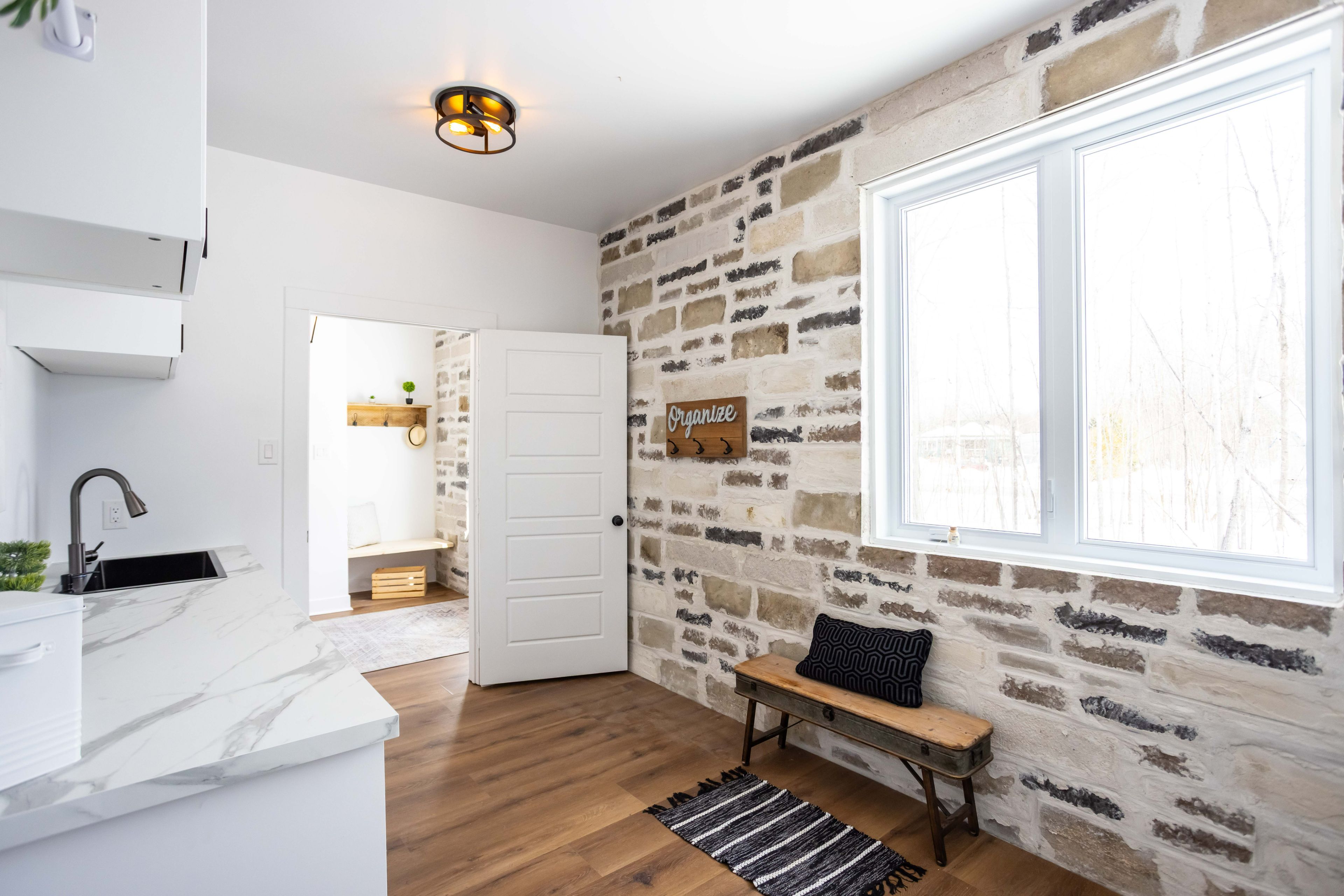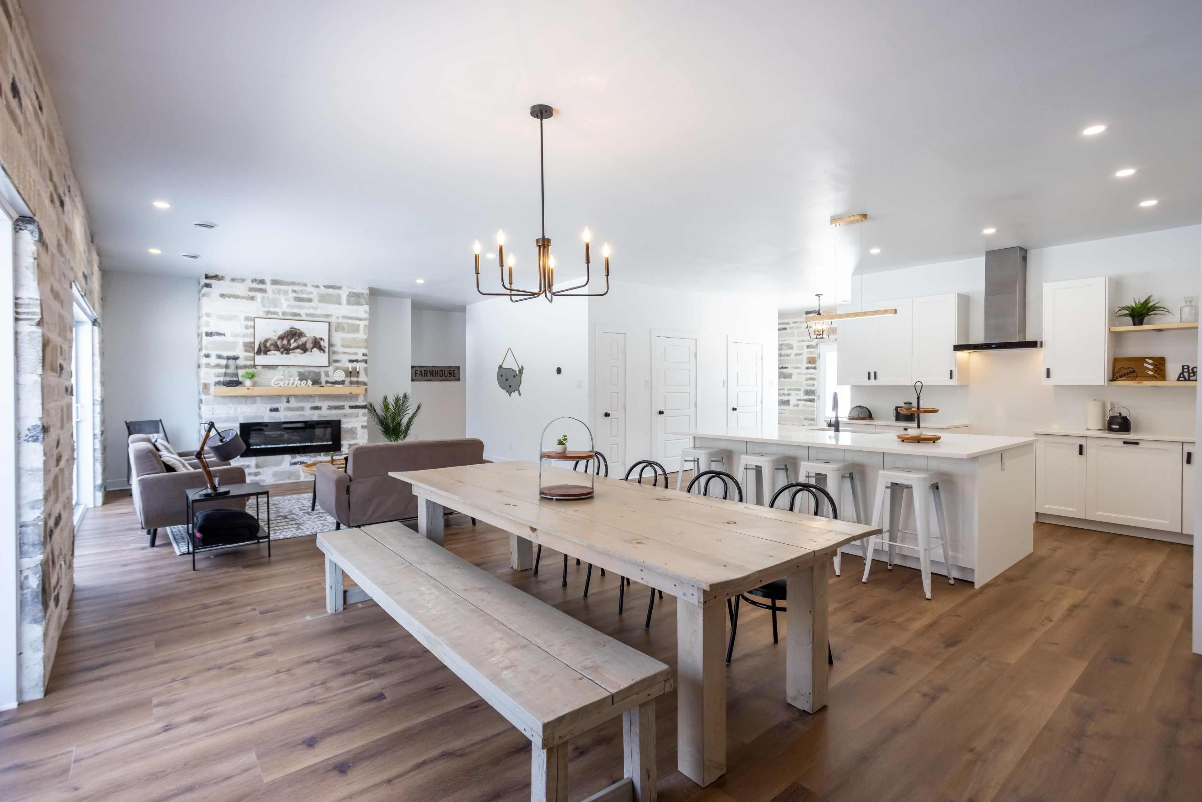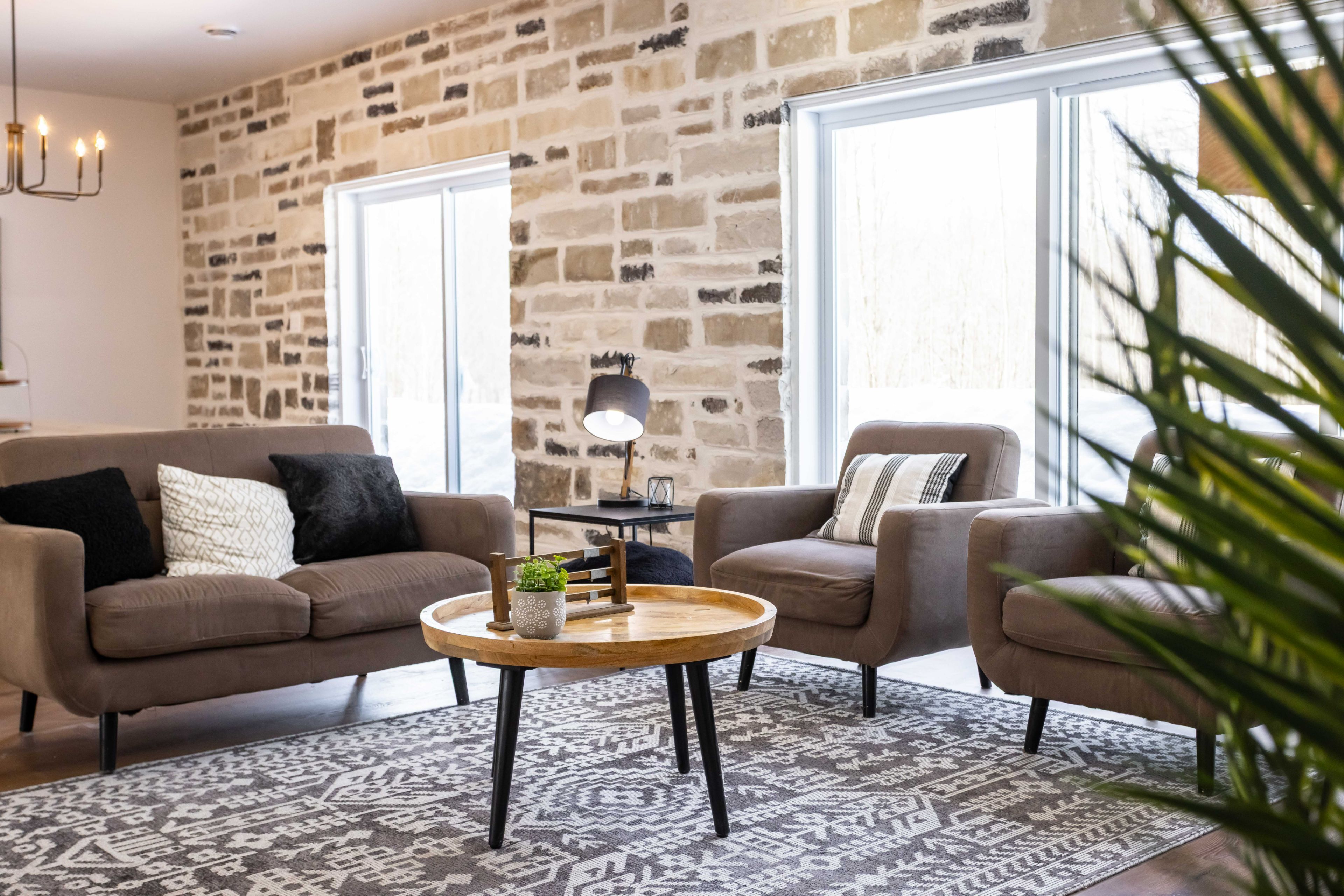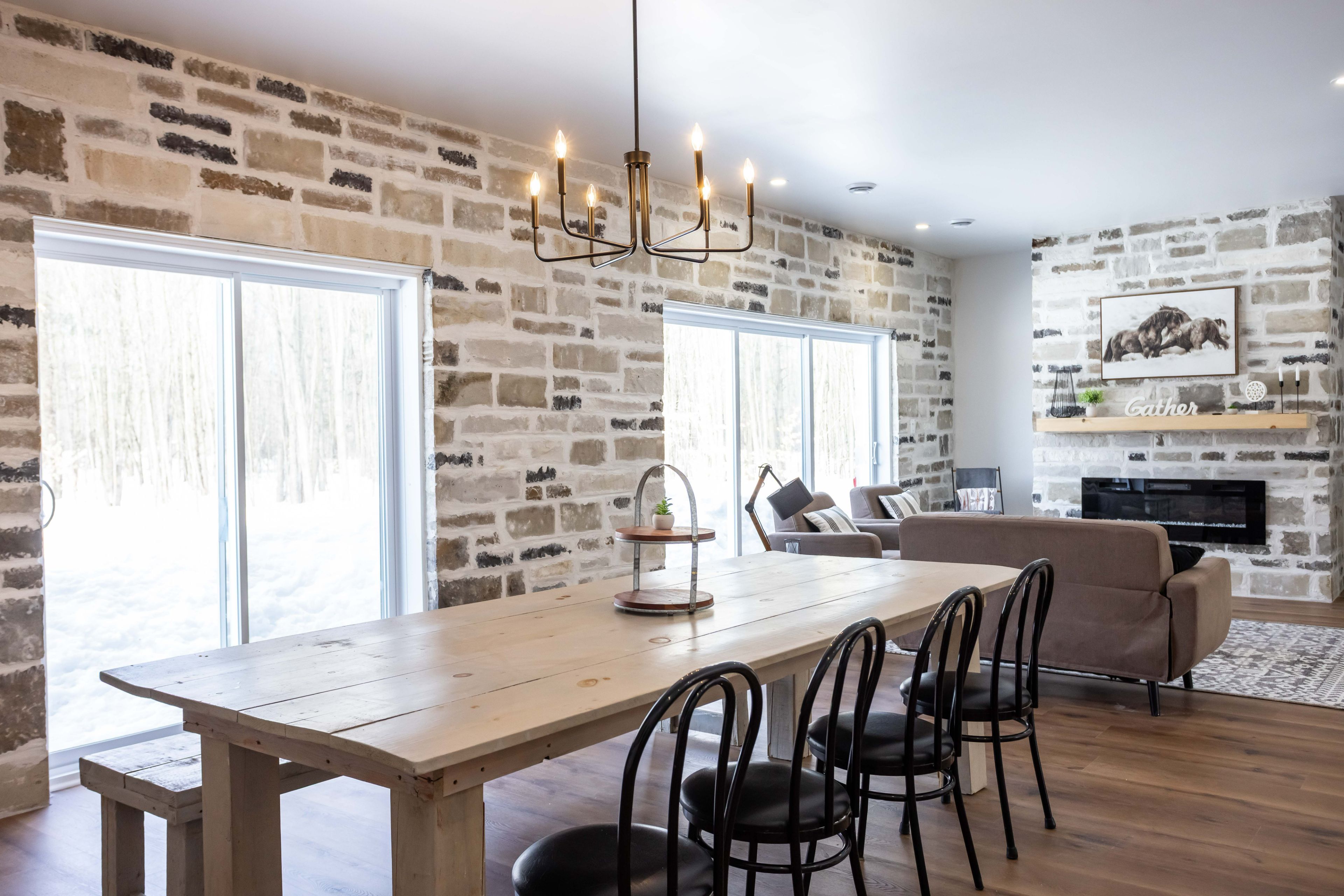 Welcome to this stunning brand new custom-built stone bungalow set on 3. 2 private acres, offering a rare blend of luxury, craftsmanship & peaceful country living surrounded by nature. Tucked among mature trees with a natural creek running along the back of the property, this home offers exceptional privacy & a tranquil setting that feels like your own private retreat. Inside, the home showcases striking architecture with 10 ft ceilings, expansive windows, & extensive use of natural stonework that adds warmth and timeless character throughout. High-end luxury vinyl flooring with a durable anti-scratch finish flows seamlessly across the entire home. The open-concept living & dining space is designed to capture the beauty of the surrounding landscape. A stunning stone feature wall with fireplace anchors the room and serves as the focal point, while large sliding doors invite natural light inside & create a seamless connection between indoor living and the peaceful outdoor setting. The kitchen features premium cabinetry, quartz countertops, & a clean modern design that blends functionality with refined style while remaining perfectly connected to the main living space for entertaining. The home offers 3 spacious bedrooms and 2 beautifully finished bathrooms, including a serene primary suite with a walk-in closet and spa-inspired ensuite featuring a double vanity and glass shower. The primary bedroom also offers direct access to the backyard, allowing you to step outside and enjoy the quiet natural surroundings. Comfort and efficiency are enhanced by a high-end heating system valued at approximately $45,000, featuring heated floors throughout the home combined with a thermal heat pump and furnace system. Additional features include an hrv air exchange system and tankless hot water heater. The impressive heated garage offers approximately 1,400 sq ft of space and features a heated garage floor, providing excellent flexibility for vehicles, storage, hobbies, or workshop use.