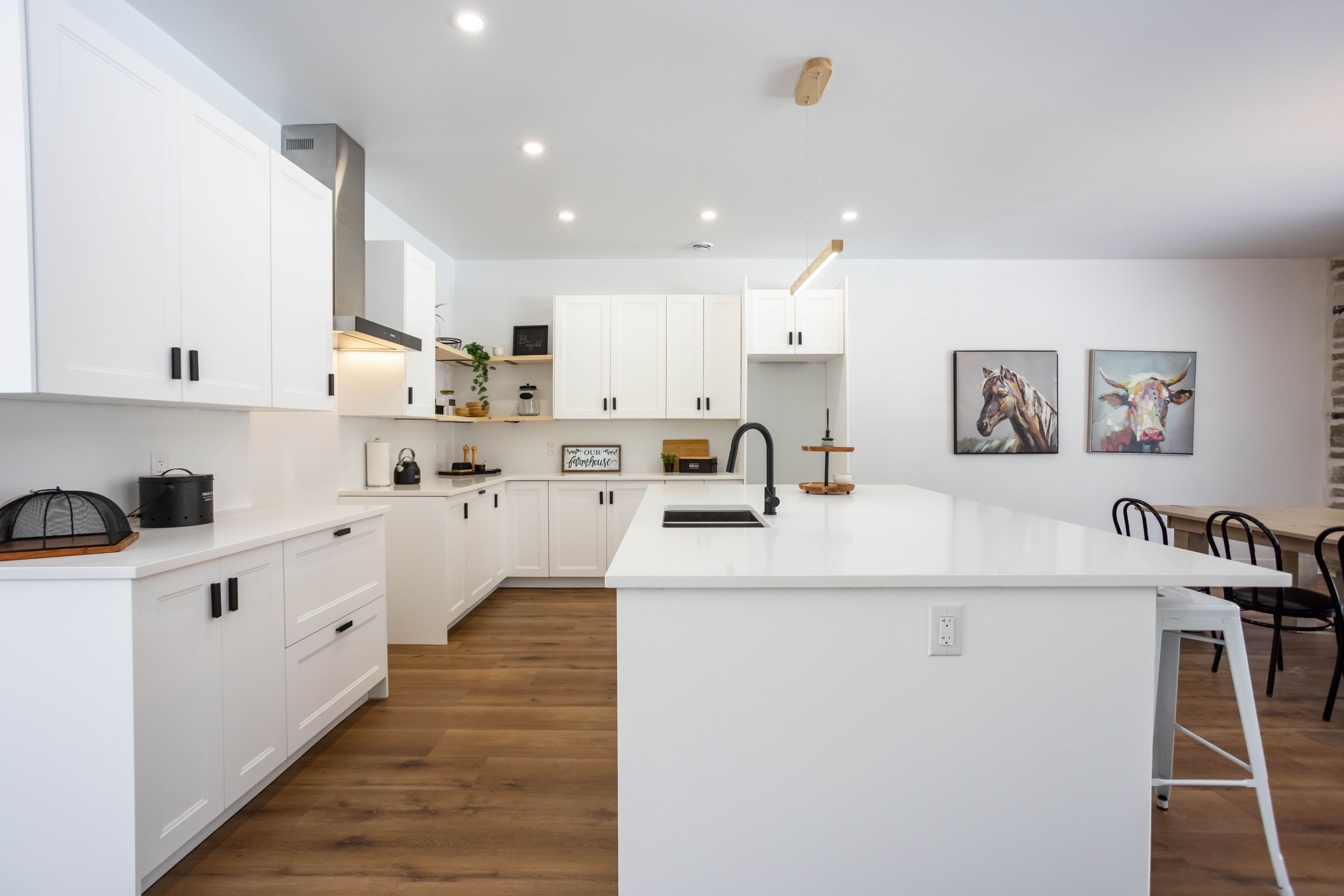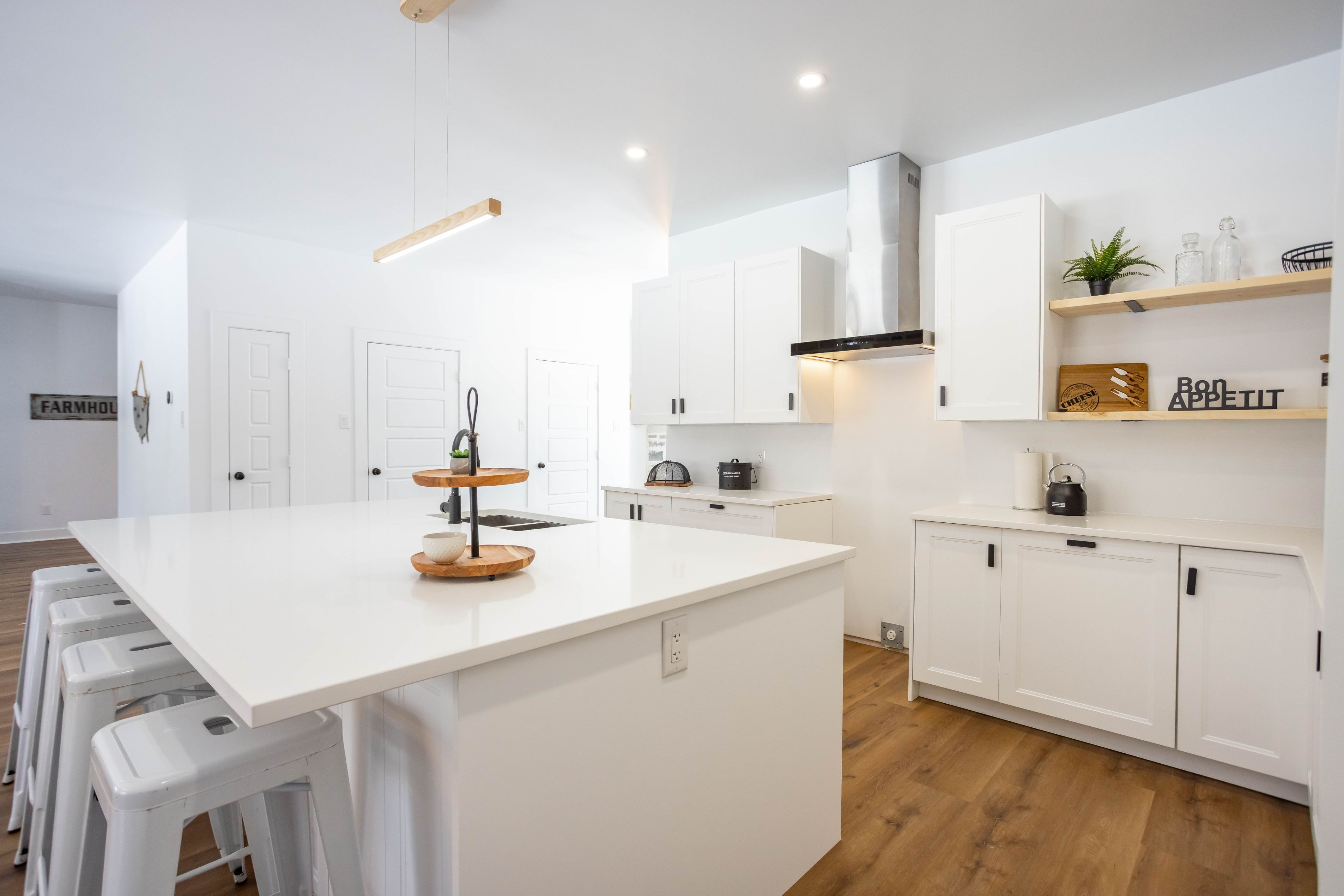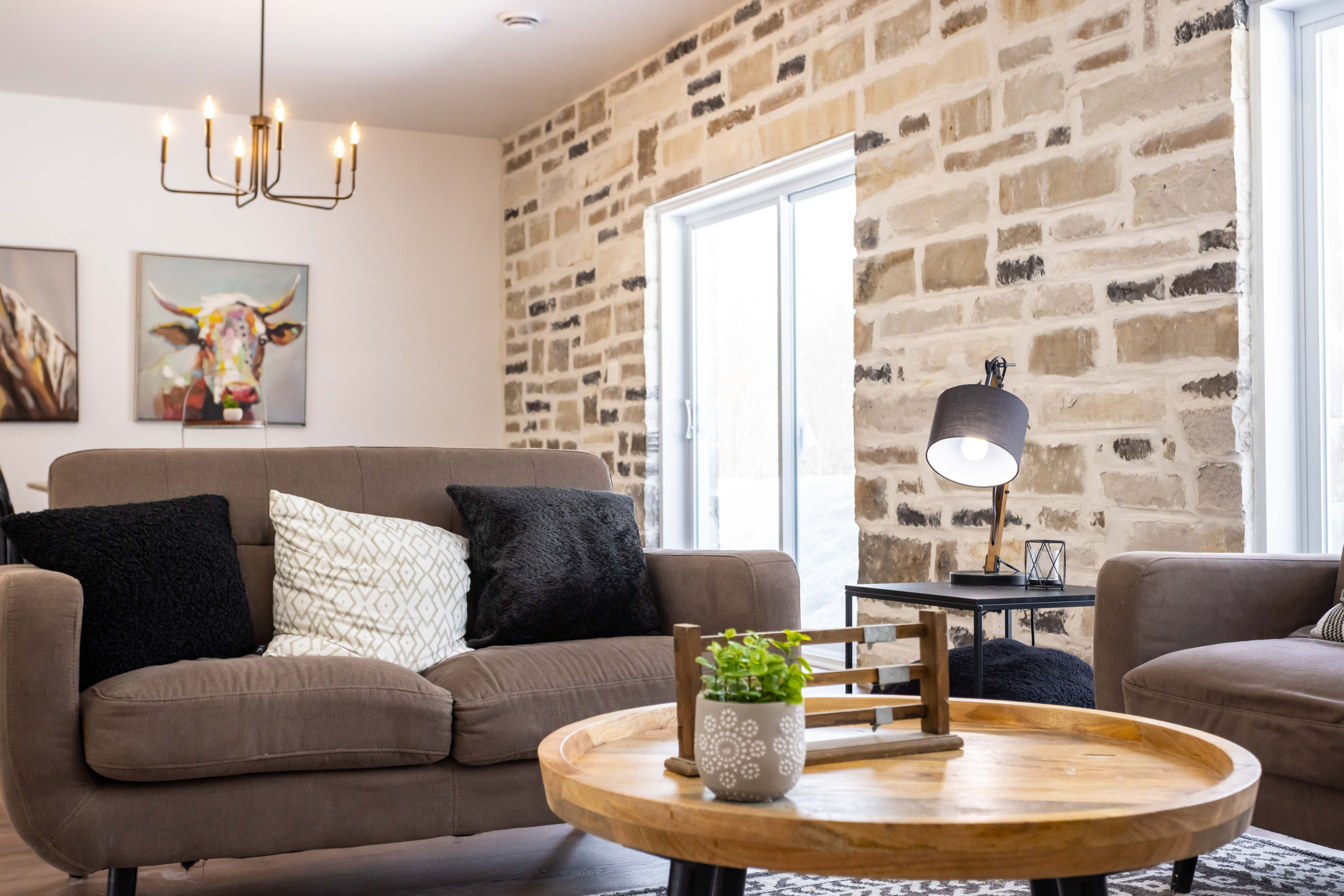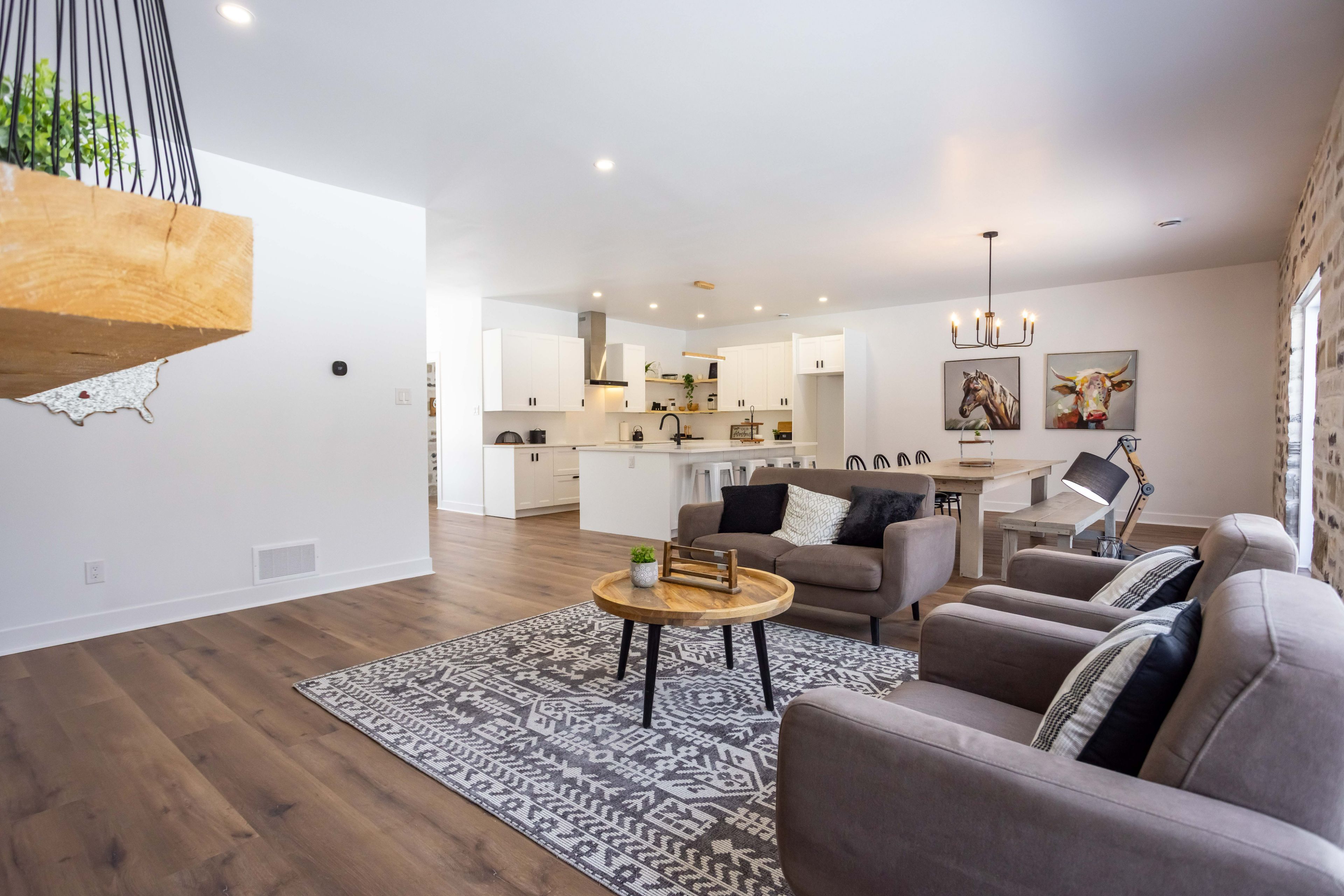 Welcome to this stunning brand new custom-built stone bungalow set on 3. 2 private acres, offering a rare blend of luxury, craftsmanship & peaceful country living surrounded by nature. Tucked among mature trees with a natural creek running along the back of the property, this home offers exceptional privacy & a tranquil setting that feels like your own private retreat. Inside, the home showcases striking architecture with 10 ft ceilings, expansive windows, & extensive use of natural stonework that adds warmth and timeless character throughout. High-end luxury vinyl flooring with a durable anti-scratch finish flows seamlessly across the entire home. The open-concept living & dining space is designed to capture the beauty of the surrounding landscape. A stunning stone feature wall with fireplace anchors the room and serves as the focal point, while large sliding doors invite natural light inside & create a seamless connection between indoor living and the peaceful outdoor setting. The kitchen features premium cabinetry, quartz countertops, & a clean modern design that blends functionality with refined style while remaining perfectly connected to the main living space for entertaining. The home offers 3 spacious bedrooms and 2 beautifully finished bathrooms, including a serene primary suite with a walk-in closet and spa-inspired ensuite featuring a double vanity and glass shower. The primary bedroom also offers direct access to the backyard, allowing you to step outside and enjoy the quiet natural surroundings. Comfort and efficiency are enhanced by a high-end heating system valued at approximately $45,000, featuring heated floors throughout the home combined with a thermal heat pump and furnace system. Additional features include an hrv air exchange system and tankless hot water heater. The impressive heated garage offers approximately 1,400 sq ft of space and features a heated garage floor, providing excellent flexibility for vehicles, storage, hobbies, or workshop use.