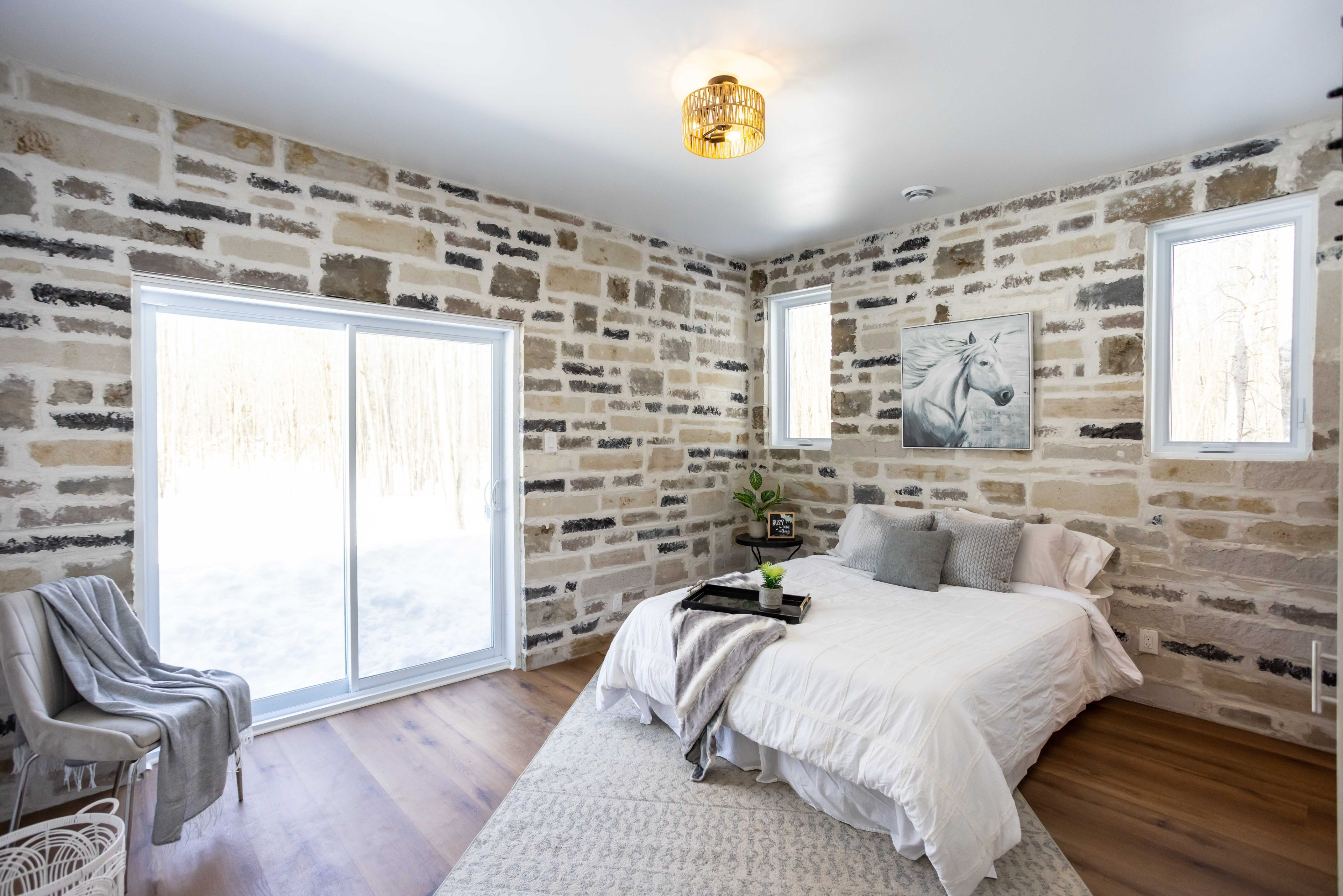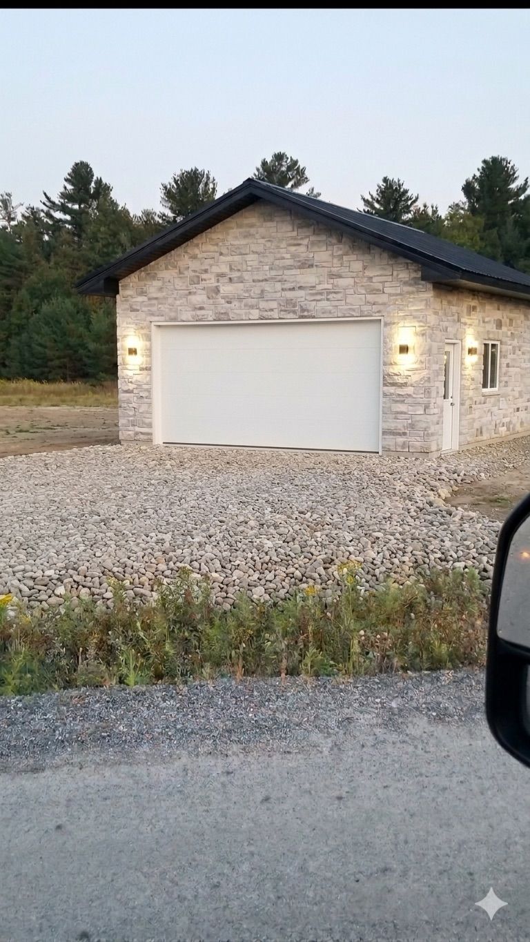 Welcome to this stunning brand new custom-built stone bungalow set on 3. 2 private acres, offering a rare blend of luxury, craftsmanship, and peaceful country living surrounded by nature, with the added option for a 20x20 detached storage/workshop at the rear-ideal for those seeking extra space beyond traditional basement storage. Tucked among mature trees with a natural creek along the back of the property, this home offers exceptional privacy and a tranquil setting that feels like your own private retreat. Inside, the home showcases striking architecture with 10 ft ceilings, expansive windows, and extensive natural stonework that adds warmth and timeless character throughout. High-end luxury vinyl flooring with a durable anti-scratch finish flows seamlessly across the entire home. The open-concept living and dining space is designed to capture the beauty of the surrounding landscape, anchored by a stunning stone feature wall with fireplace, while large sliding doors bring in natural light and create a seamless indoor-outdoor connection. The kitchen features premium cabinetry, quartz countertops, and a clean modern design, perfectly integrated for both everyday living and entertaining. The home offers 3 spacious bedrooms and 2 beautifully finished bathrooms, including a serene primary suite with a walk-in closet and spa-inspired ensuite with double vanity and glass shower, plus direct access to the backyard. Comfort and efficiency are enhanced by a high-end $45,000 heating system with heated floors throughout, a thermal heat pump and furnace system, hrv air exchange, and a tankless hot water heater. The impressive heated garage offers approximately 1,400 sq ft with a heated floor, ideal for vehicles, storage, or workshop use. A unique opportunity to enjoy modern comfort, space, and privacy in a truly peaceful setting. Some images used in this listing have been digitally enhanced or modified using ai for visual clarity.