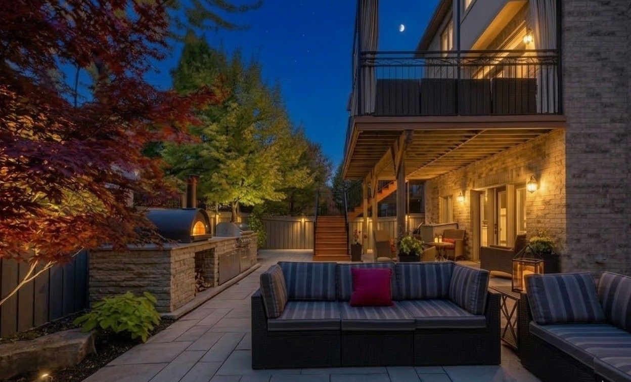 Welcome to 3244 ribble crescent, a stunning fernbrook executive home with a rare triple car garage on one of bronte creek's most coveted streets. Surrounded by lush ravines, scenic walking trails, and bronte creek provincial park, this impressive residence offers almost 5,600 sq. Ft. Of finished living space across three levels-perfect for growing or multi-generational families. A soaring two-storey entrance and grand foyer set the tone, leading to elegant principal rooms and an open-concept layout. The chef's kitchen anchors the main floor with solid surface counters, professional-grade viking appliances, and an oversized breakfast area overlooking the trex deck. The spacious family room features a padova fireplace, with two main floor offices, imported stone floors, custom lighting, window treatments, richly stained oak flooring, and a matching grand staircase complete the level. Upstairs offers four oversized bedrooms, including a spectacular primary suite with a sitting area, spa-inspired ensuite, designer walk-in dressing room, and an additional walk-in closet. Three custom bathrooms, a spacious foyer with art niche, second-floor laundry, and stained hardwood floors complete the upper level. The professionally finished lower level features soaring 9' ceilings and a double french door walk-out with floor-to-ceiling windows. Highlights include a custom bar with sub-zero beverage centre, built-in oven and dishwasher, linear gas fireplace, 4pc bathroom, open-concept games area, theatre-style family room with imported seating, gym, large storage/utility room, and seasonal closet. The fully hardscaped backyard is a private oasis with a tranquil waterfall, outdoor kitchen with pizza oven, bbq station, side burner and stainless storage, multiple flagstone patios, seating areas, and a grand trex deck with wrought iron railings. Complete with full fencing, custom gates, poured stairs, beautiful landscaping, a new roof and garage doors.