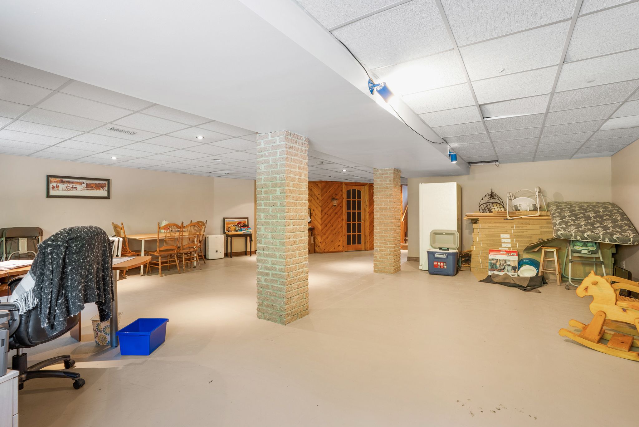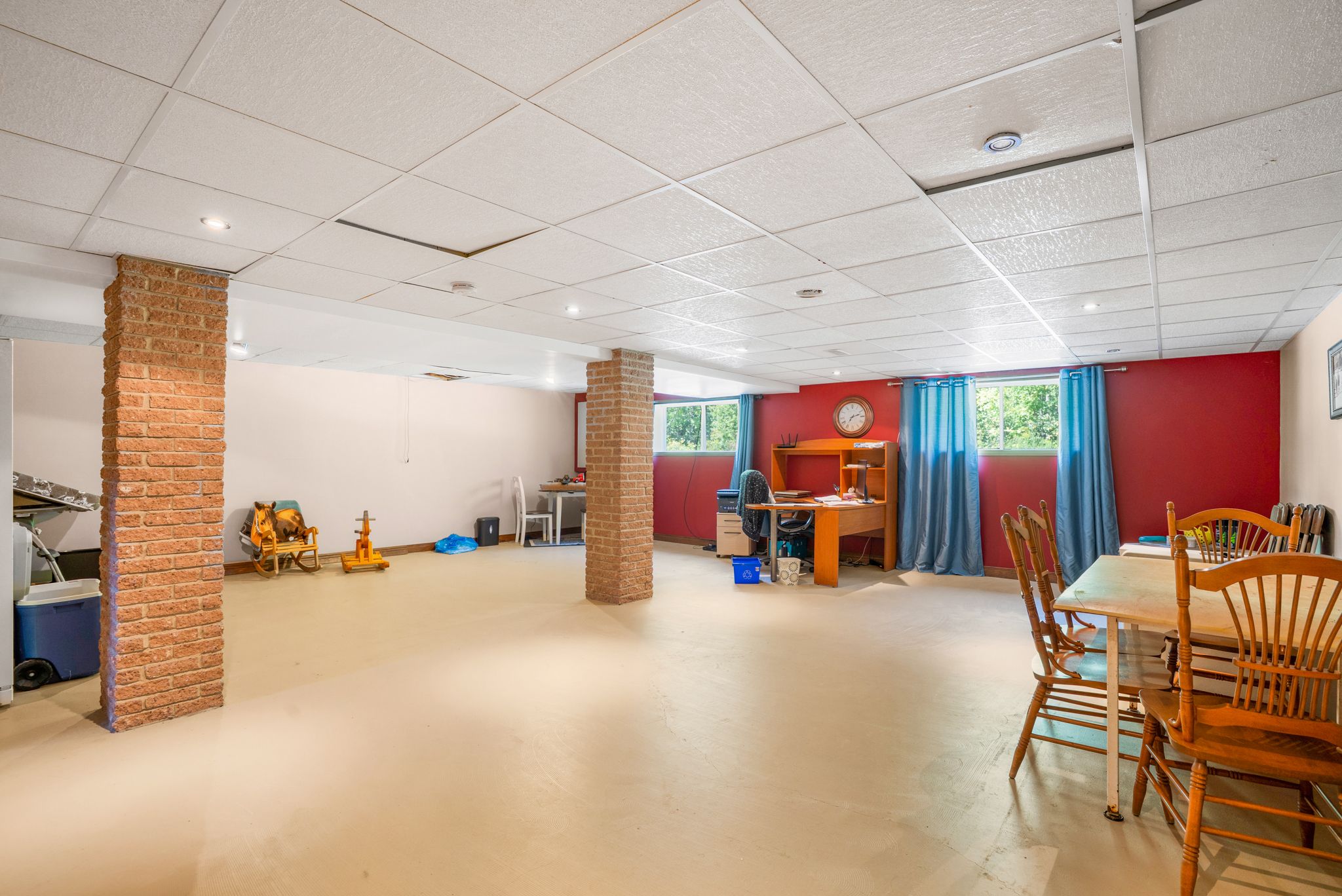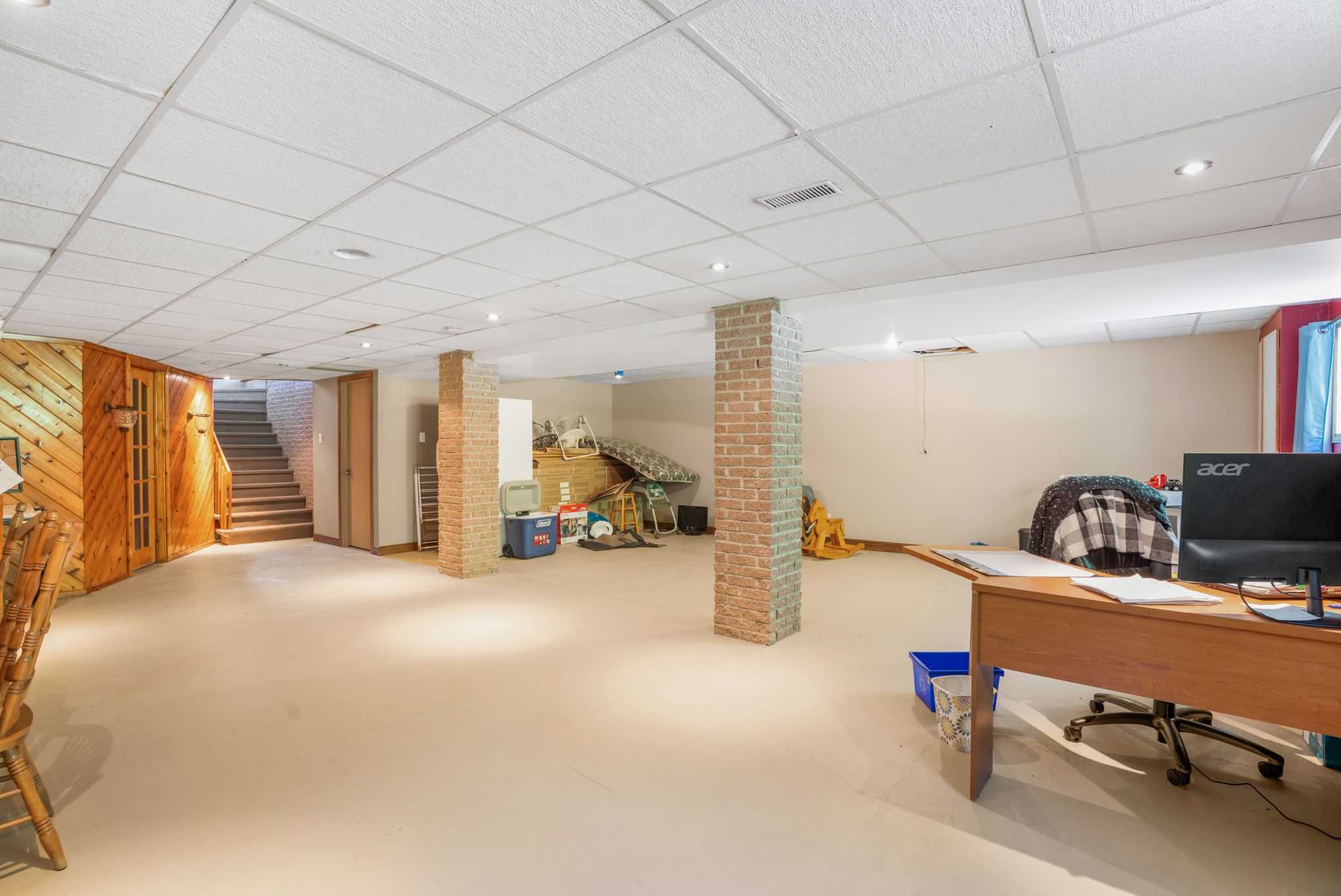 • Finished basement offers extra living space, including a home office area.