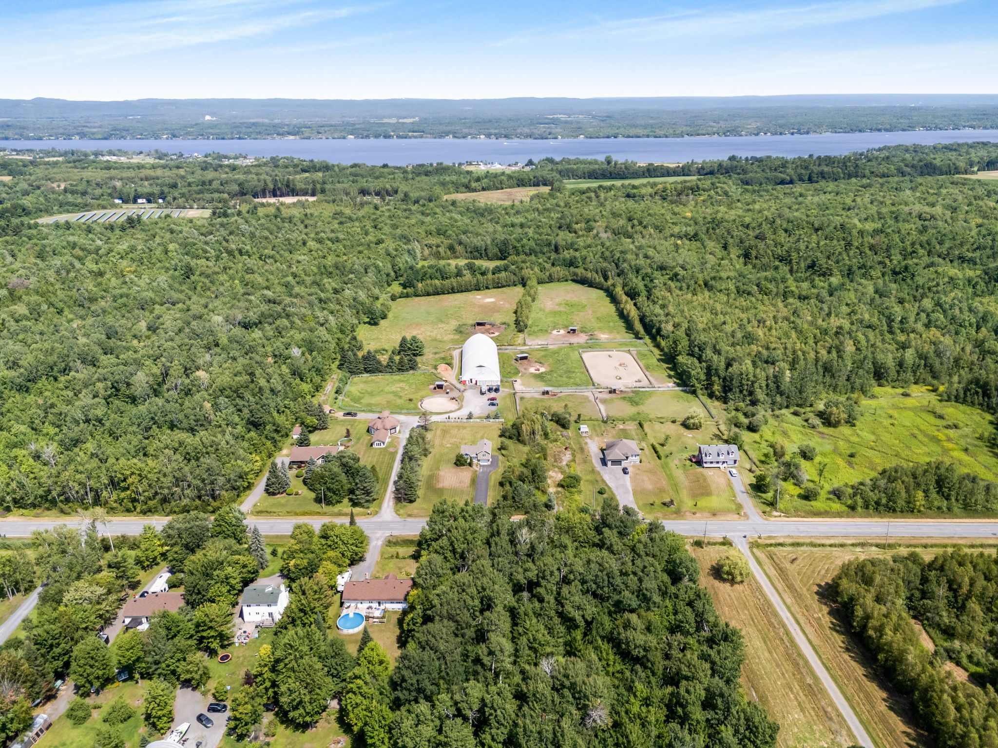 A 19 acre hobby farm minutes to the quebec border. A 60' x 160' barn with interior riding ring, 12 stalls and tack room. A garage/workshop with double doors and hay loft. Paddocks, exterior training ring and mostly cleared land. A well maintained family home features a large living room with wood vaulted ceilings, plenty of natural light and a wood burning fireplace. A great kitchen design with plenty of cabinets, center island lunch counter and an adjacent dining area with garden door giving access to a back deck, patio area and an above ground, salt system pool. A large primary bedroom with ample closet space and cheater ensuite bath. This relaxing main bath features a claw foot soaker tub and separate shower. A second bedroom and laundry closet complete the main level. A finished basement gives plenty of additional living space with a family room large enough to accommodate a home office area. A third bedroom , utility room with workshop space and firewood storage area. Propane heat, central air, central vac, wood flooring, carpet free. 200 amp service in the home, 100 amp in the barn.