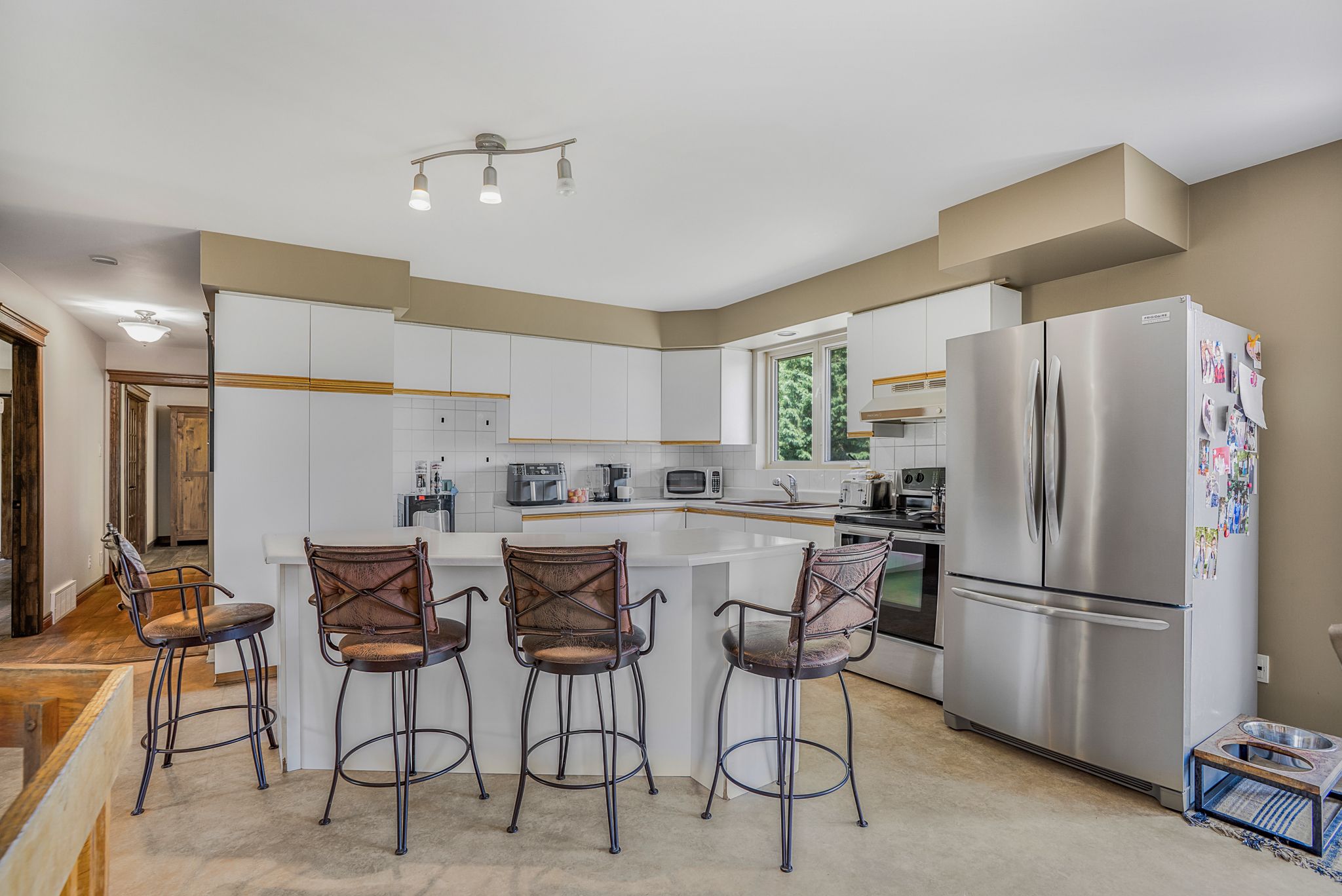 • Amazing kitchen with a center island and access to a backyard deck and pool.