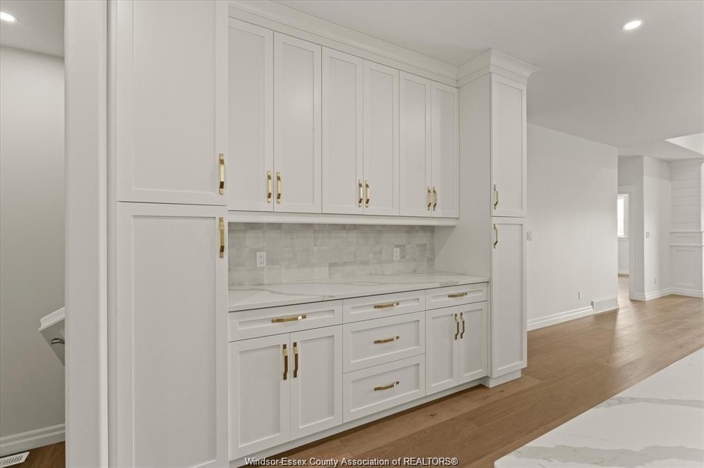 • Gourmet kitchen featuring custom cabinetry and quartz countertops.