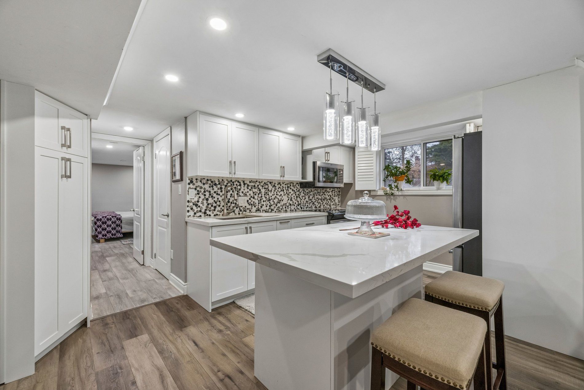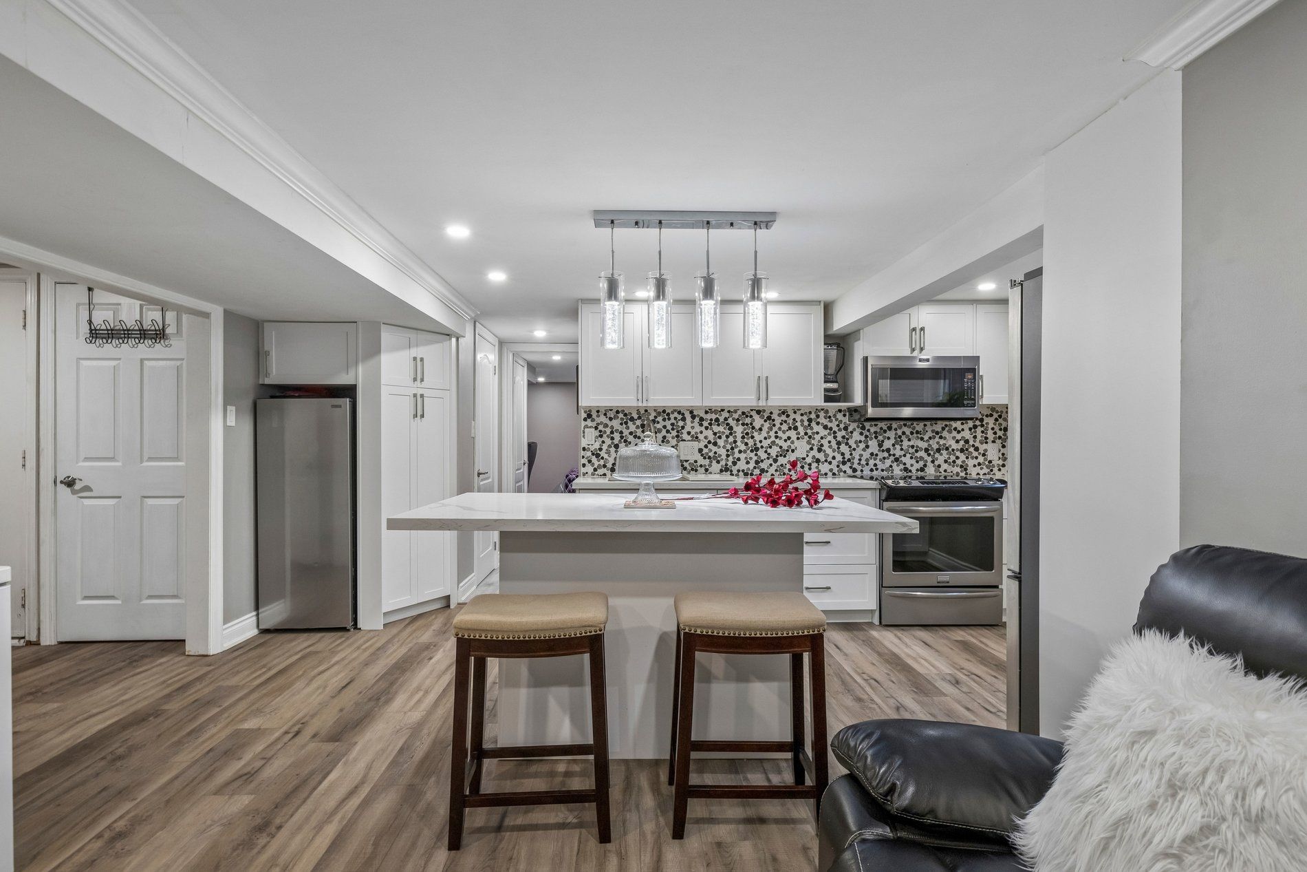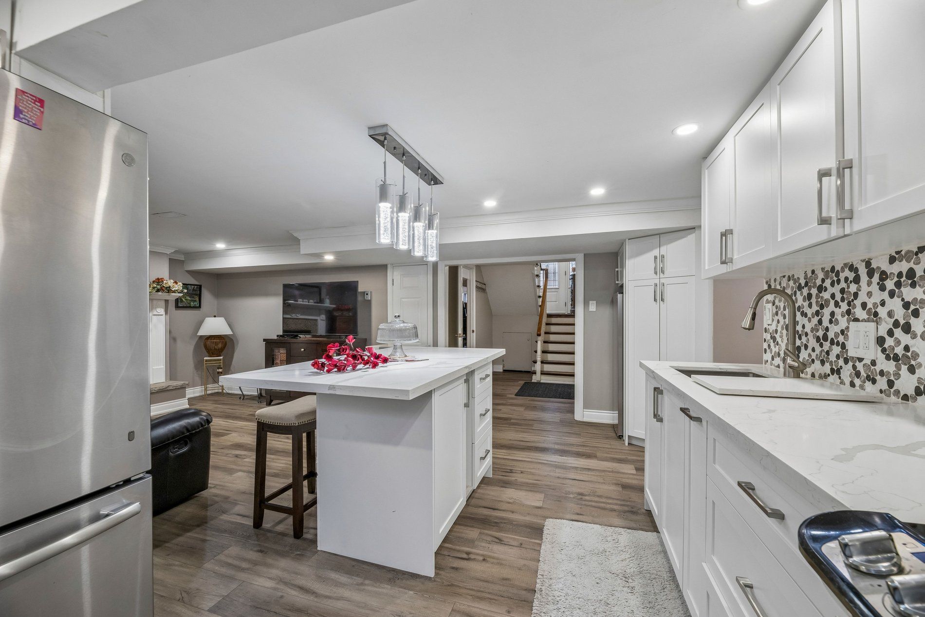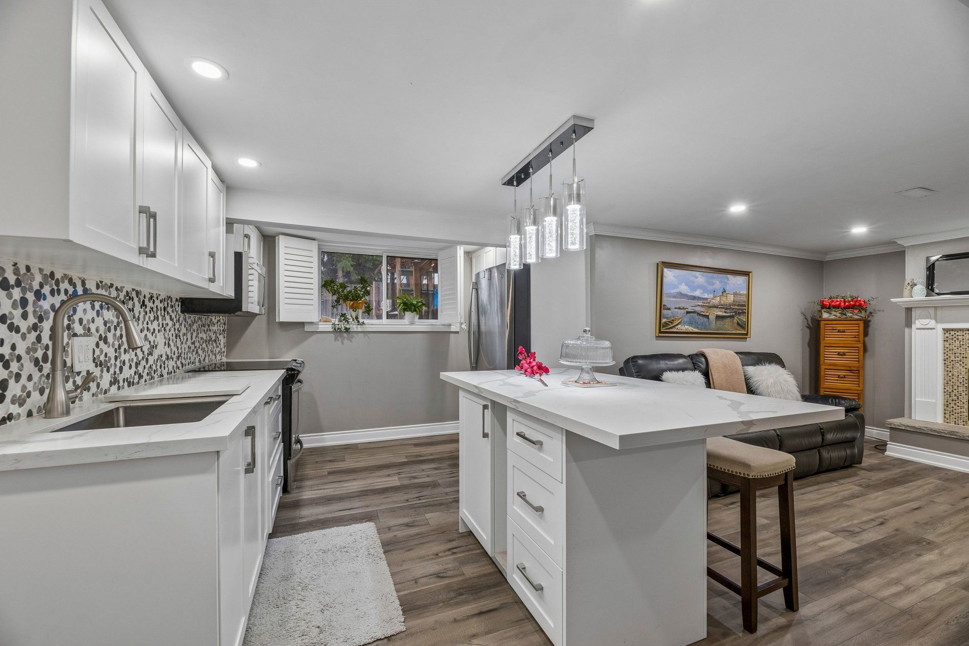 • Bright open-concept living and dining areas with hardwood floors throughout.