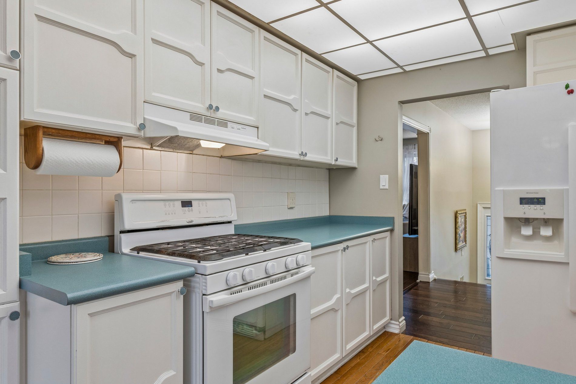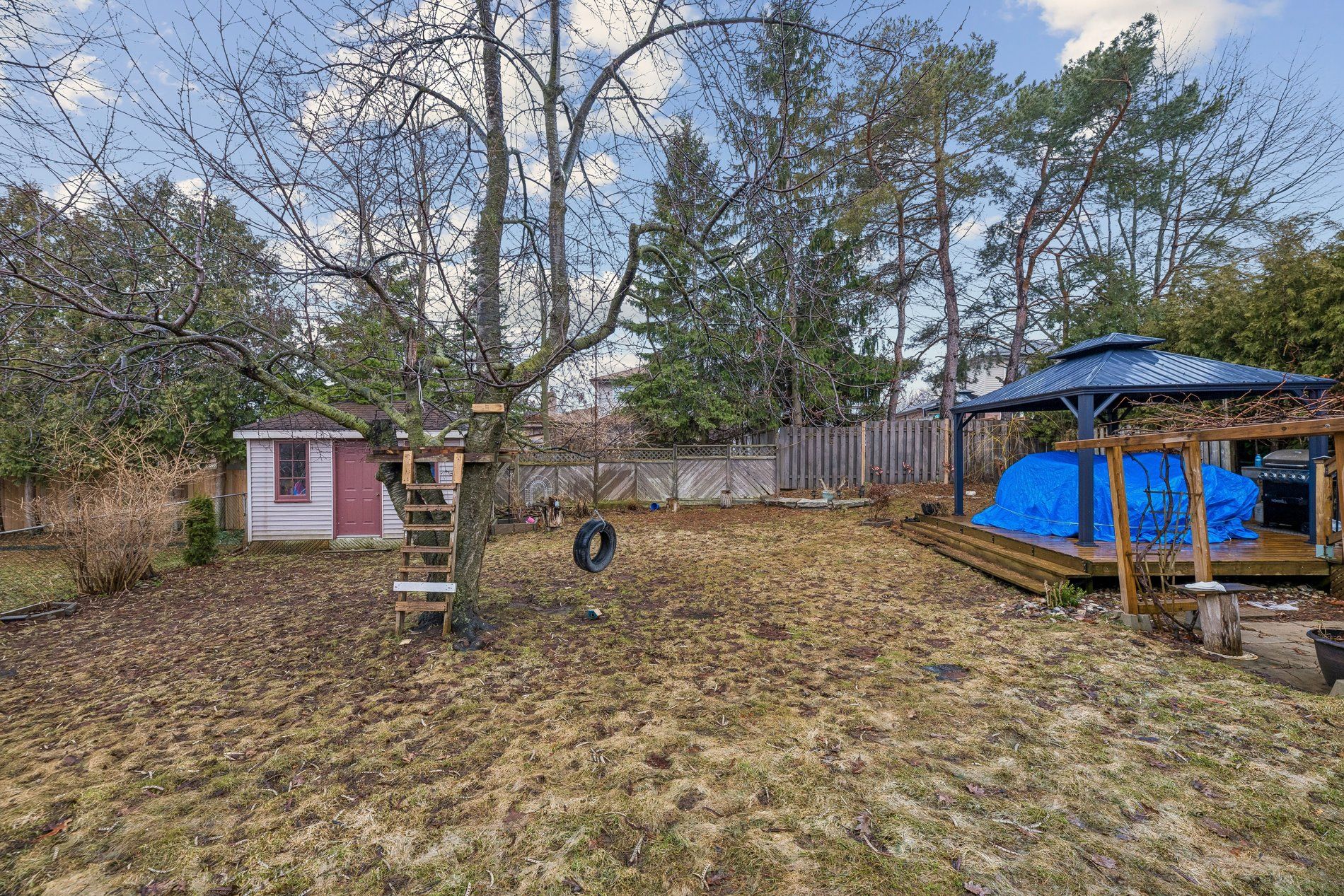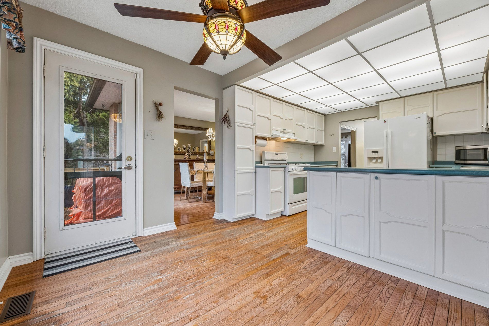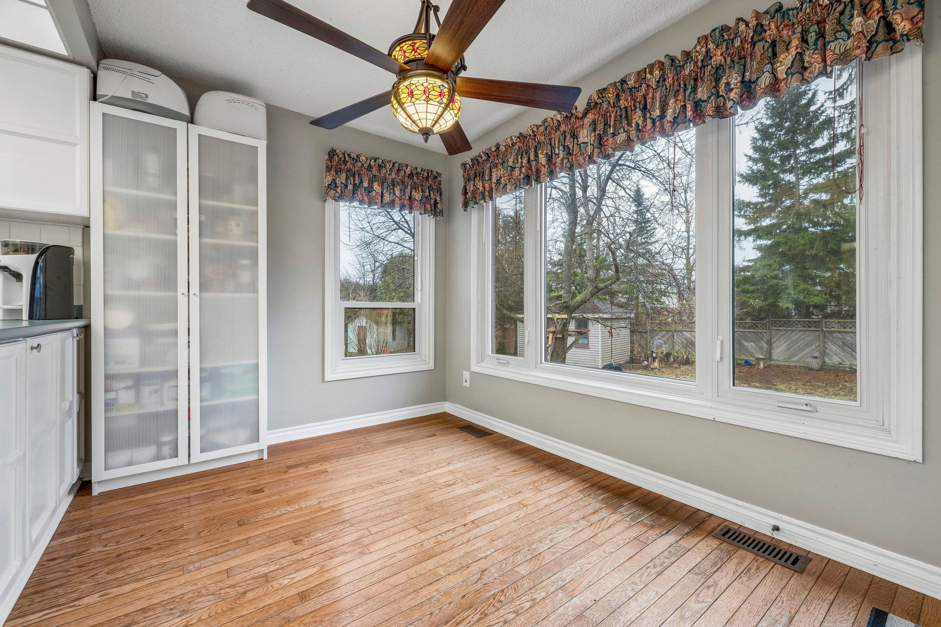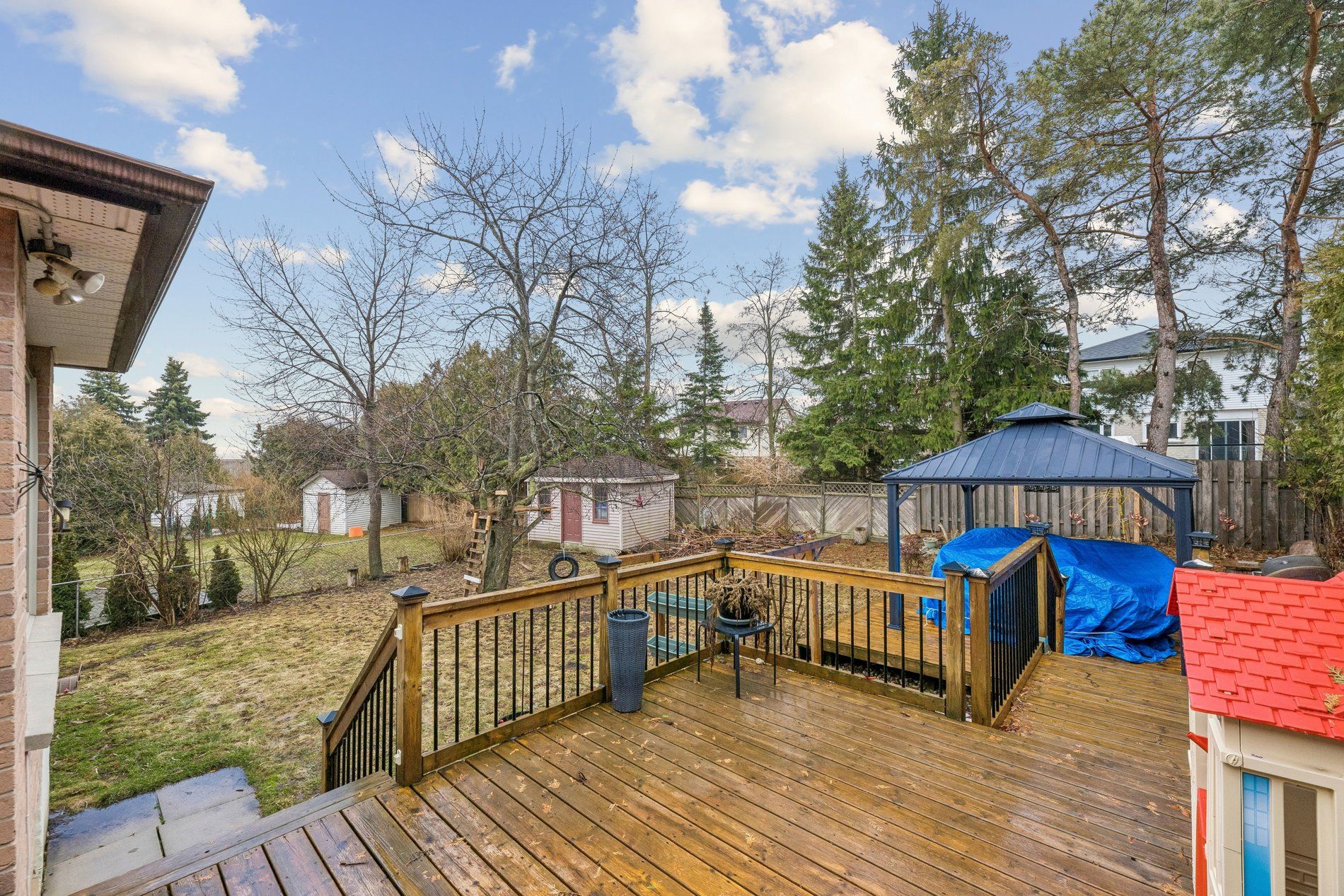 • Spacious eat-in kitchen overlooking a pie-shaped backyard with cherry trees.