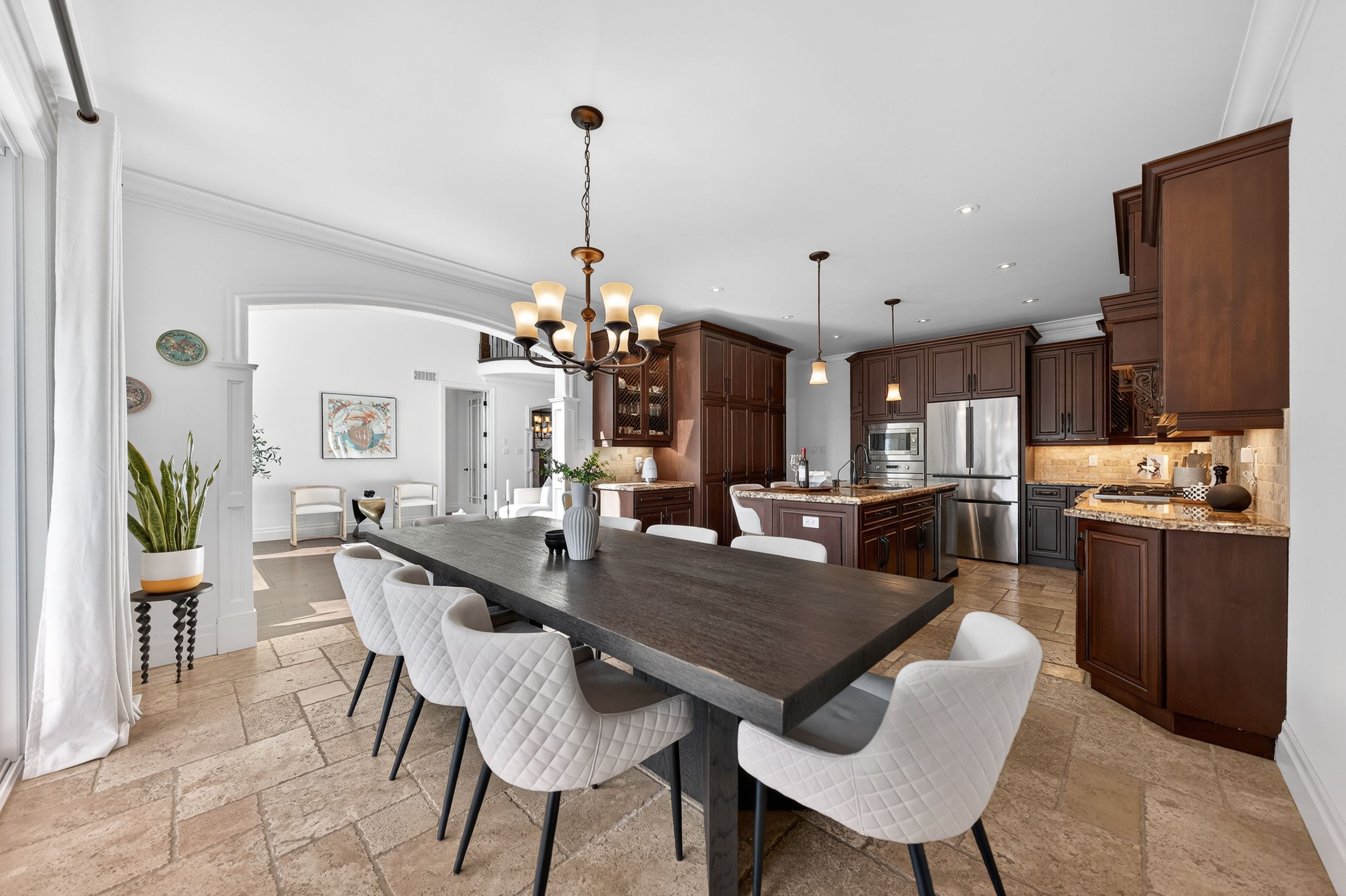 • Well-equipped kitchen with granite counters and breakfast area leading to backyard.