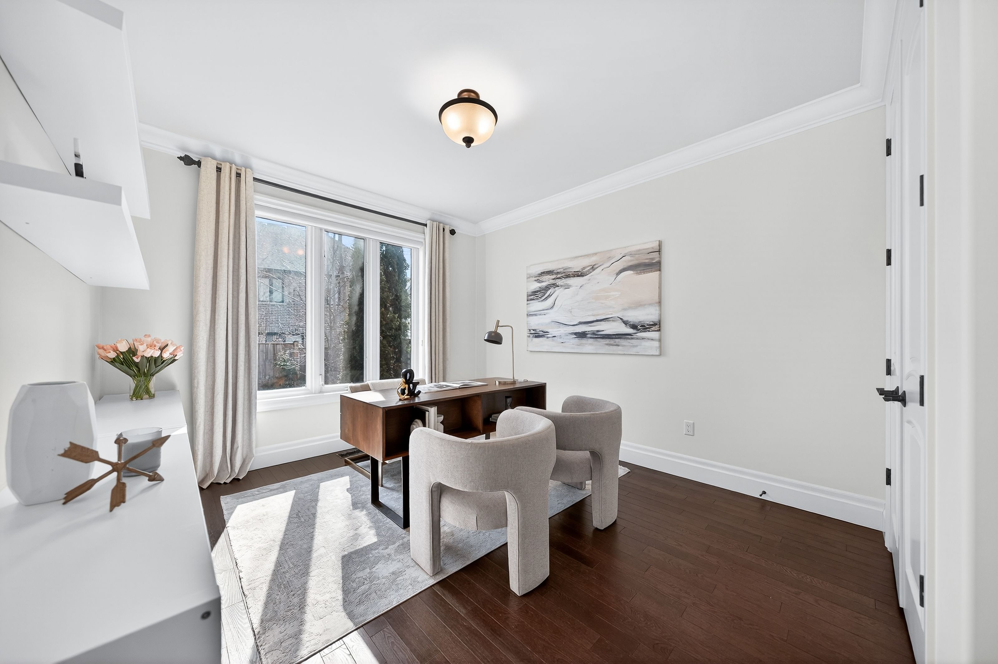 This is your carriage crossing dream home. Welcome to 325 deerfoot trail, located in one of waterloo's most sought-after communities. This custom klondike-built home offers 5,300+ sf of beautifully finished living space, with 4+1 bedrms & 4 bathrms, thoughtfully designed with quality craftsmanship, timeless finishes, & functional family living. Step inside the grand entry opening to formal living & dining rms with coffered ceilings & detailed millwork. The home is anchored by a stunning 2-storey great rm with gas fireplace & oversized windows flooding the space with natural light. The well-appointed chervin kitchen features a lrg centre island, granite counters, premium appliances, under-cabinet lighting, backsplash, & a bright breakfast area with walkout to the backyard & covered back porch. The main flr also offers a private office/potential 6th bedrm, mudrm/laundry rm, & powder rm. Upstairs offers 4 spacious bedrms, including an expansive primary retreat with tray ceiling, feature wall with linear electric fireplace, sitting area, walk-in closet with built-ins, additional dual closets, & a 5-pce ensuite with dual vanities, tiled glass shower, & jacuzzi tub. 3 additional sizable bedrms & a 5-pce main bathrm complete the upper level. The fully finished lower level features a lrg rec rm with electric fireplace, additional bedrm, 3-pce bathrm, wet bar (in-law potential), & ample storage. Hardwood & natural stone flring, custom ceiling treatments, crown moulding, curated millwork, & custom window coverings throughout. Set on a professionally landscaped lot with interlocking driveway, covered back porch, expansive patio, & fully fenced private backyard with mature trees, hardscaping, & perennial gardens. Located just mins to top-rated schools, u of w & wilfrid laurier university, rim park, grey silo golf club, trails, st. Jacobs market, & major commuter routes. A rare opportunity to own a beautifully finished home in one of waterloo's most desirable neighbourhoods.