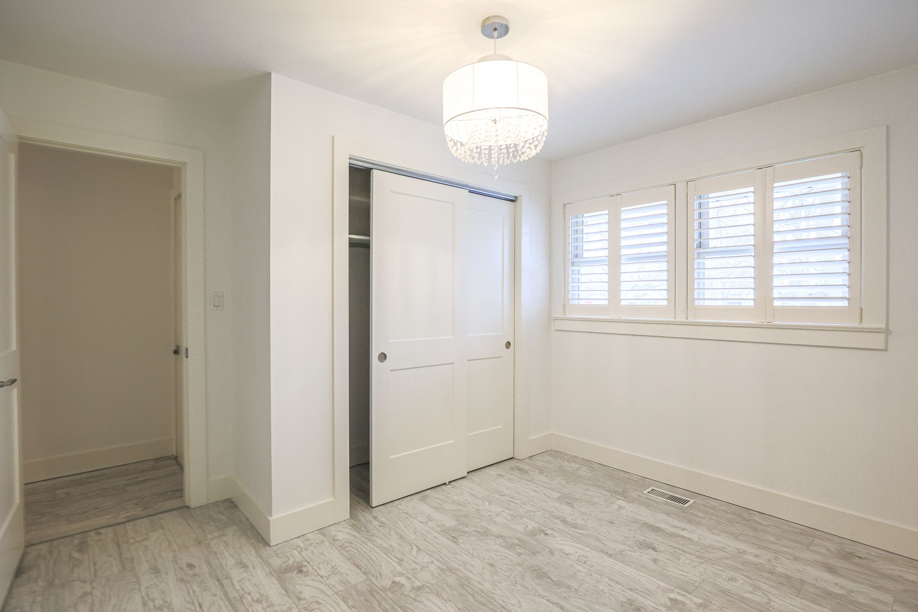 • Spacious main level features two bedrooms and a primary with a walk-in closet.