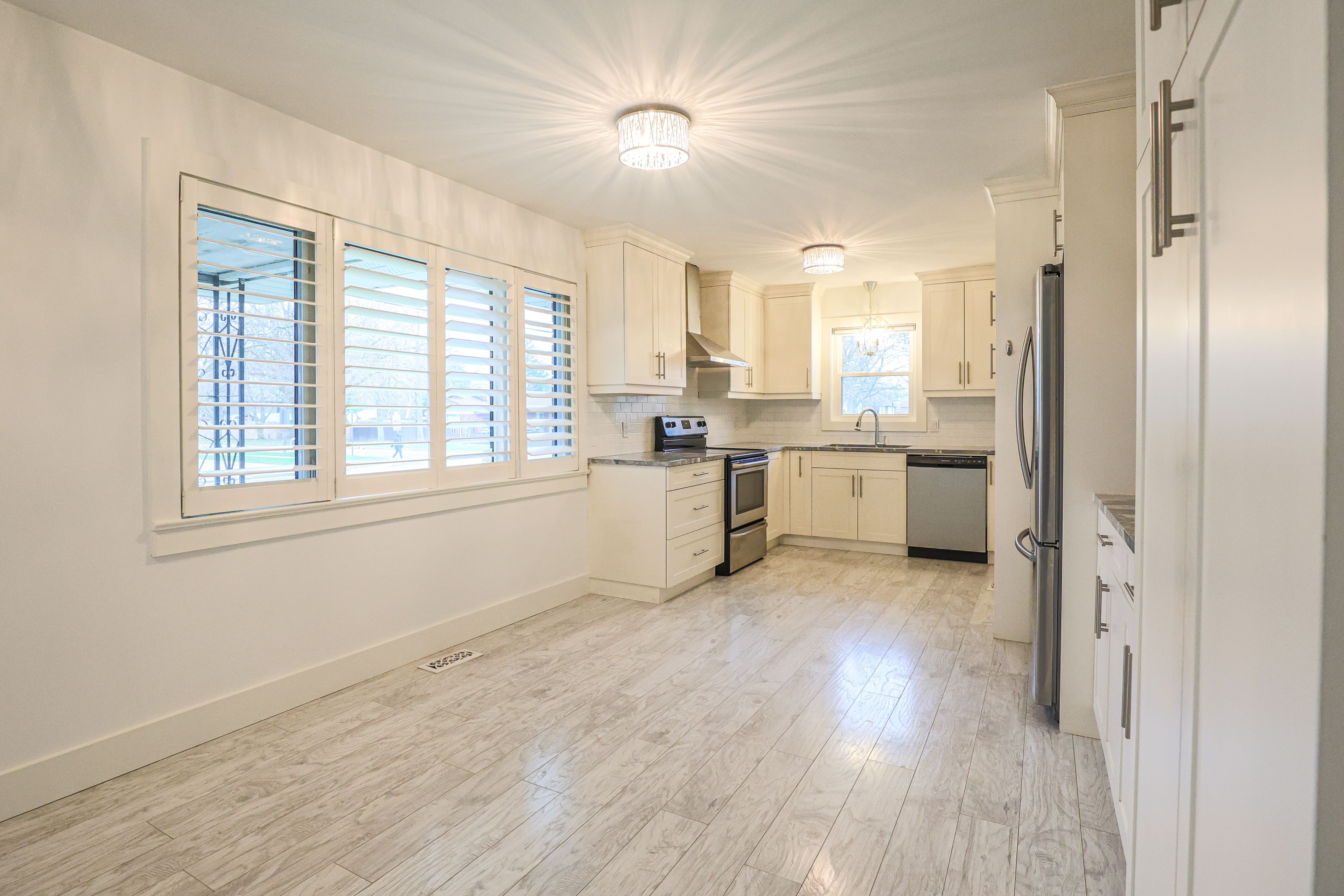 Exceptional value in this north end bungalow on a large corner lot and ready for occupancy. The recently renovated main floor offers a custom kitchen with granite countertops and gorgeous elegant light fixtures throughout. Offering two bedrooms on the main level including a large primary bedroom with walk in closet and laundry facility, as well as an open concept kitchen, living room area and luxurious 4 piece bathroom. The fully finished basement has a separate entrance with its own laundry area, another two bedrooms and a full kitchen with living room flex space. Move in to the main level and rent the basement or use for your extended family. Step into the market with confidence and gain added income at the same time. The options are endless. Close to all amenities including places of worship, excellent schools and shopping centres, this home is the perfect investment or starter.