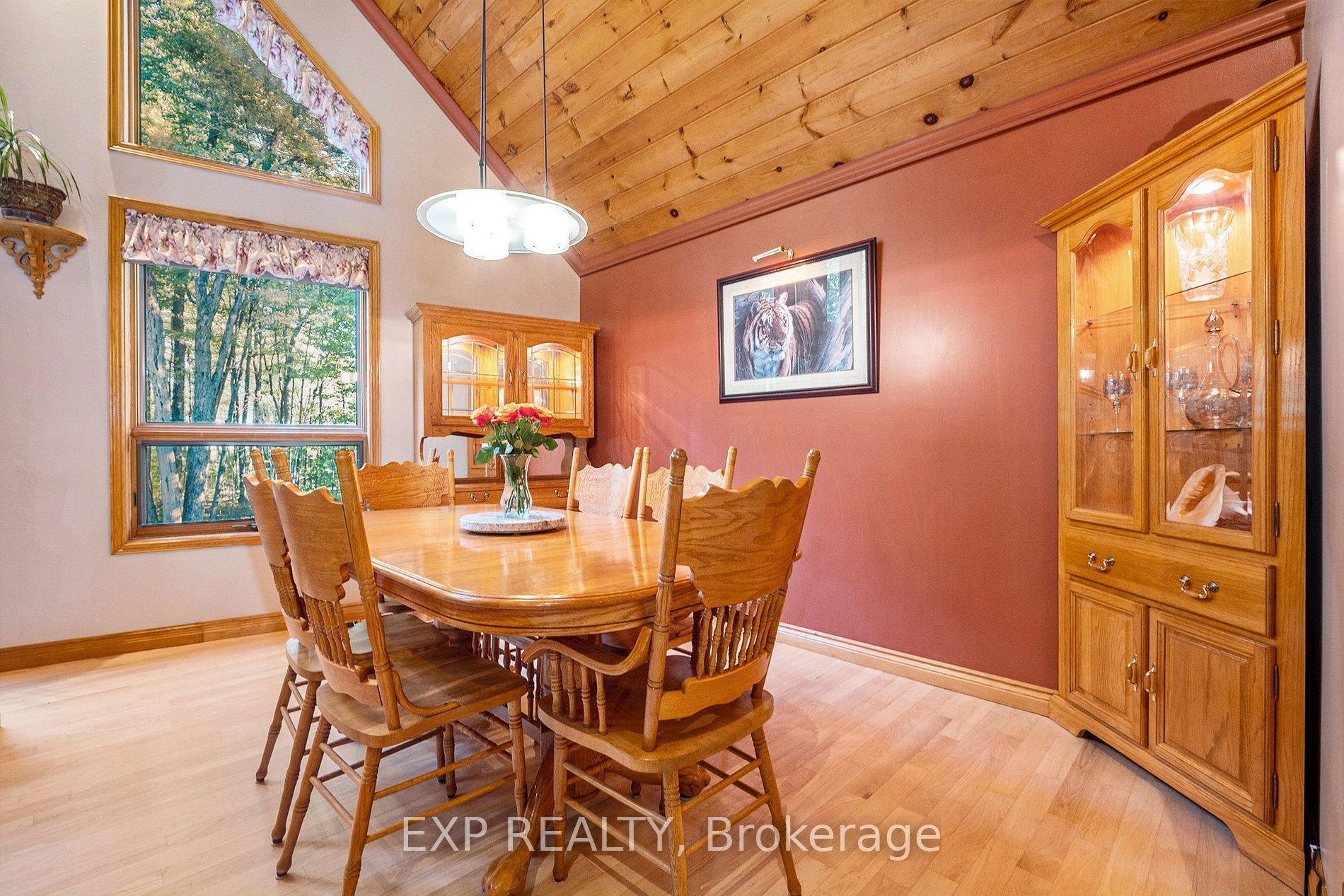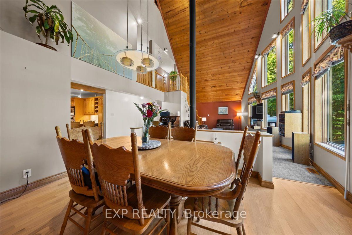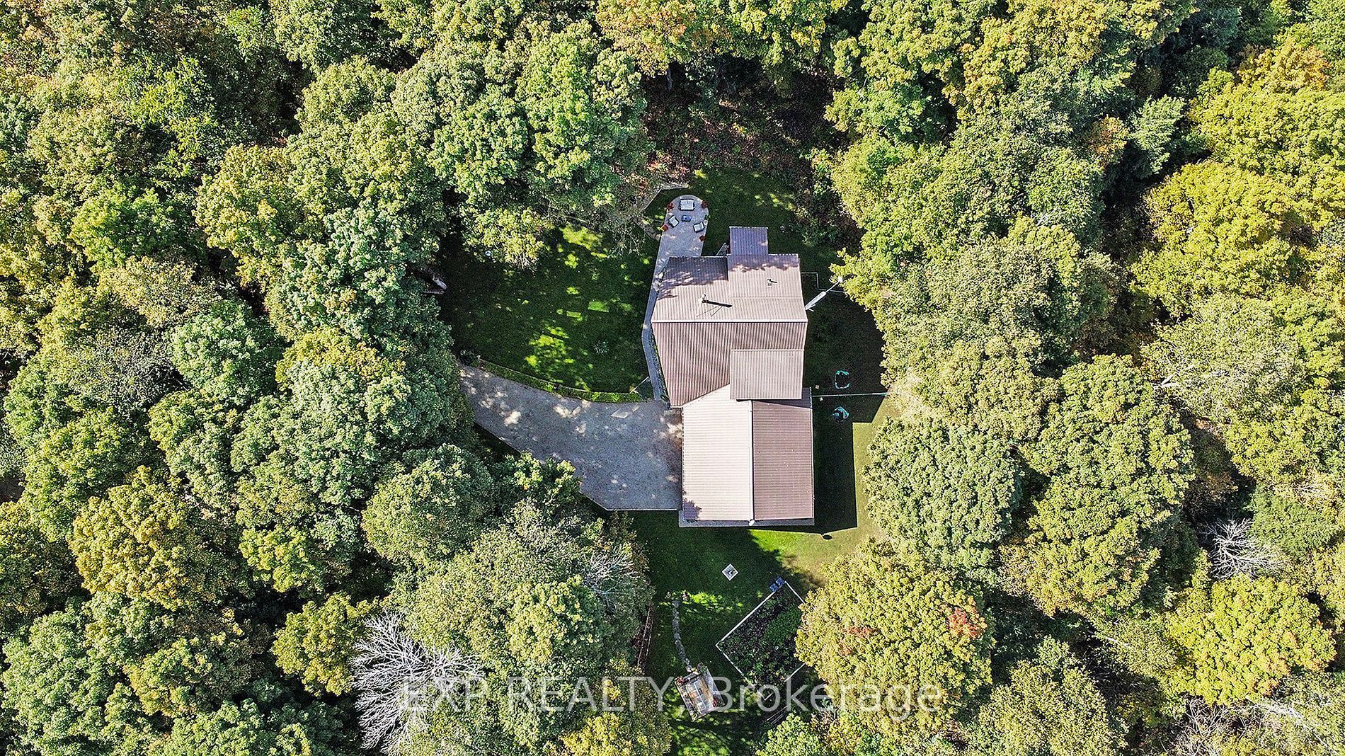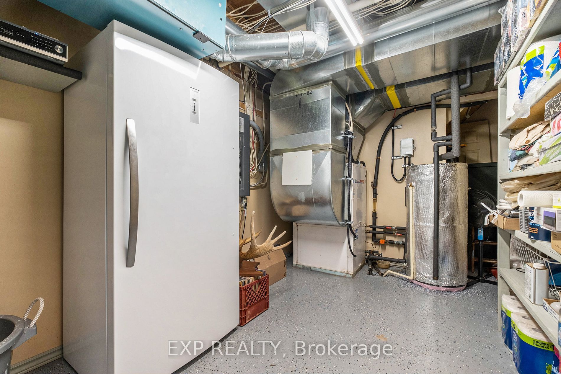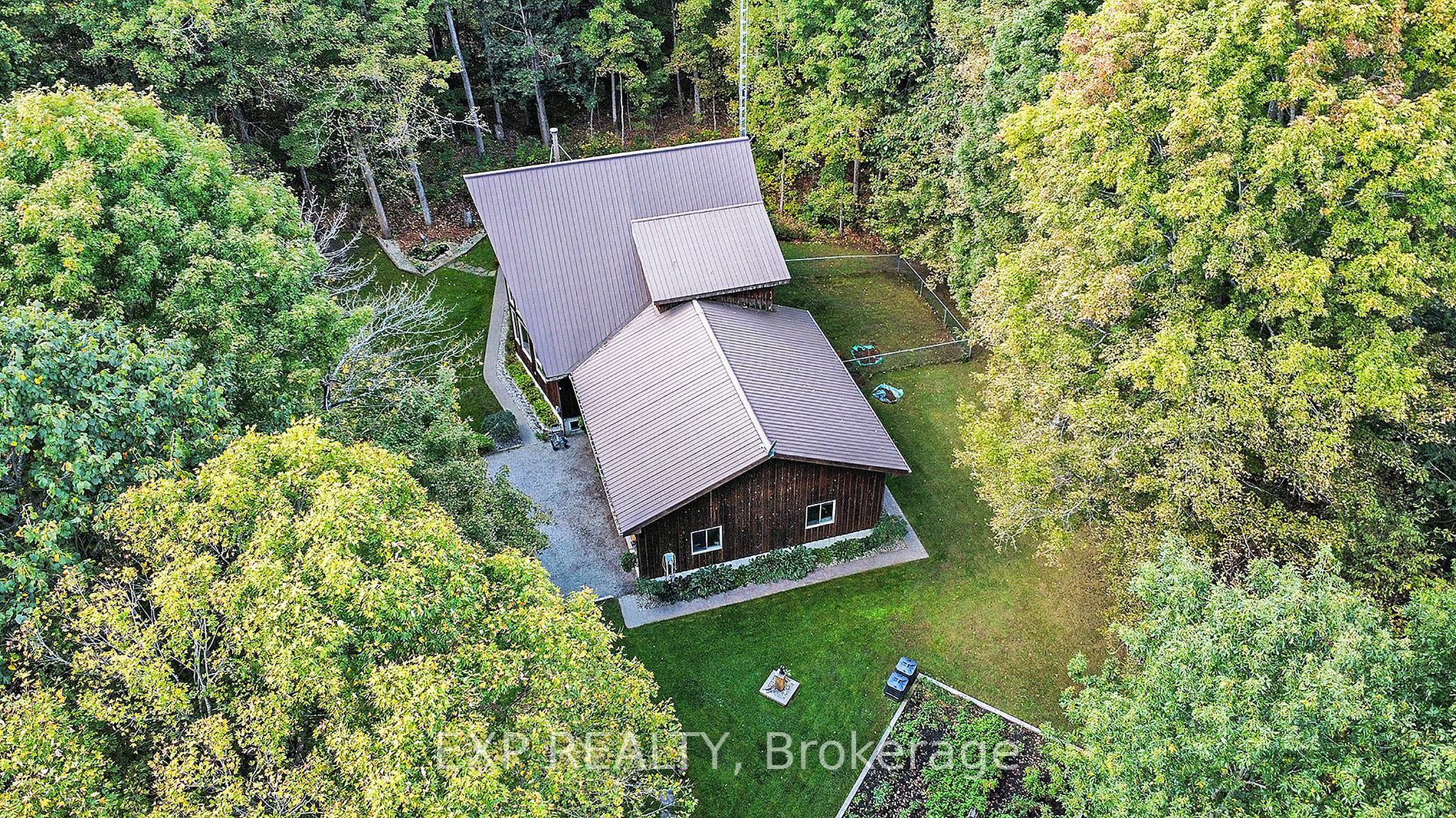 Welcome to your dream home! This stunning custom-built residence, clad in western red cedar board & batten, is set on6. 27 acres of beautifully maintained, wooded land with a private driveway offering serene seclusion and natural beauty. The home features an energy-efficient geothermal heating and cooling system, a vermont castings woodstove, and top-tier insulation throughout both the house and garage for year-round comfort. Step inside to find a freshly painted main level with brand new carpeting and a thoughtfully designed layout featuring a full 3-piece bathroom, laundry room, bedroom, and a dramatic 26'vaulted ceiling with wall-to-wall windows that flood the space with natural light. The remodeled kitchen includes stainless steel appliances, granite countertops, and a convenient breakfast bar perfect for entertaining or everyday living. Upstairs, you'll find a cozy guest bedroom, a 5-piece bathroom, a luxurious therapeutic tub included, and a spacious primary bedroom with a private balcony overlooking the peaceful, tree-lined surroundings. Both bathrooms have been updated with stylish new vanities, blending modern finishes with timeless charm. The finished basement offers a large recreation/exercise room, cold storage, and a utility/storage area. A pristine 4-car garage features an impeccably finished, climate controlled workshop ideal for hobbyists or serious diyers. Outside, enjoy a calming patio with a custom pond, a vegetable garden, a greenhouse, and ample storage buildings. Explore the scenic trails or relax beside the charming creek that runs through the property. This one-of-a-kind retreat blends comfort, functionality, and natural beauty an exceptional opportunity for those seeking privacy and connection to the outdoors. Only12 min. From kemptville and 6min. To beautiful merrickville. The basement furniture (pool table, hockey table, exercise equipment, couch, chair and tv) is included in the sale.