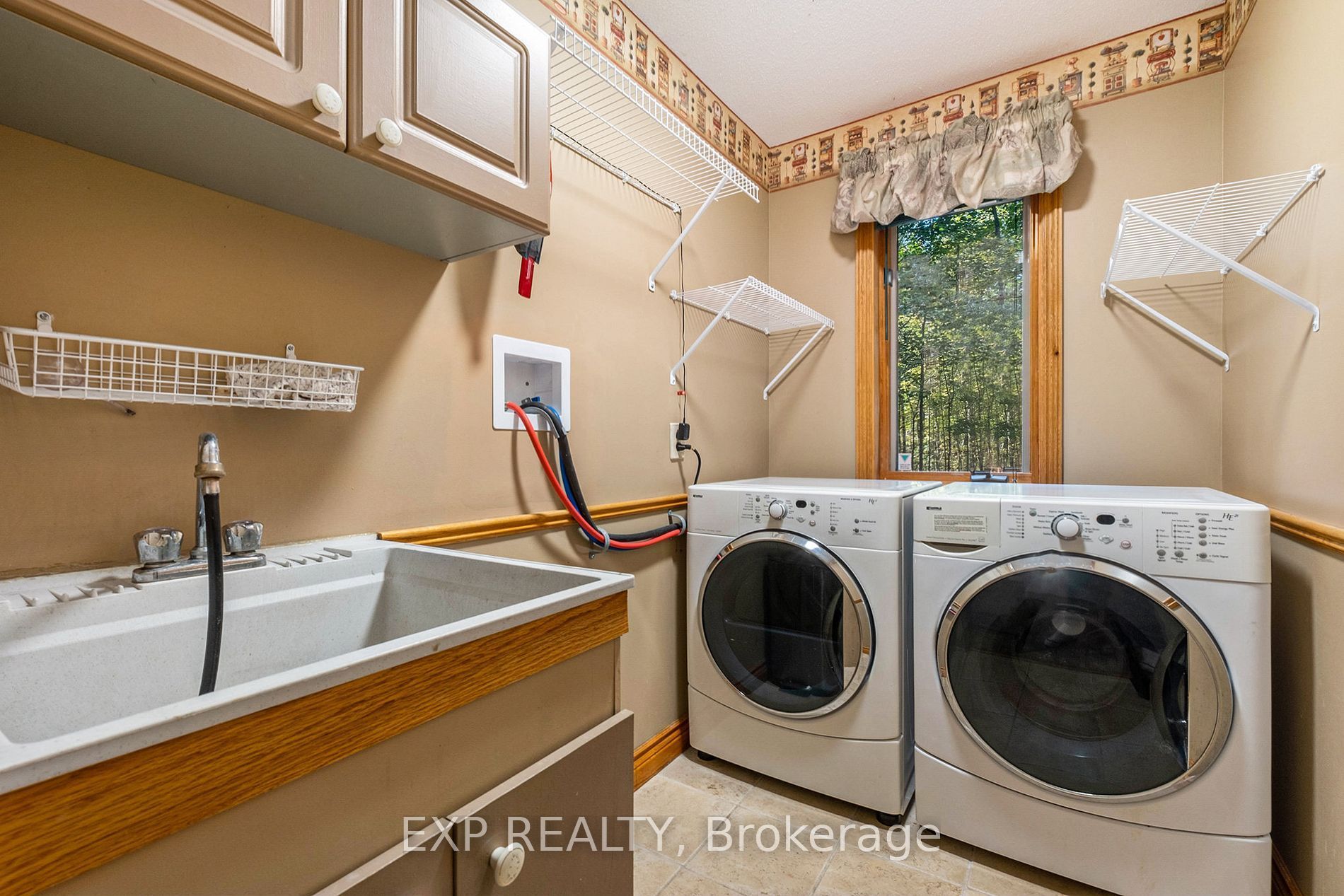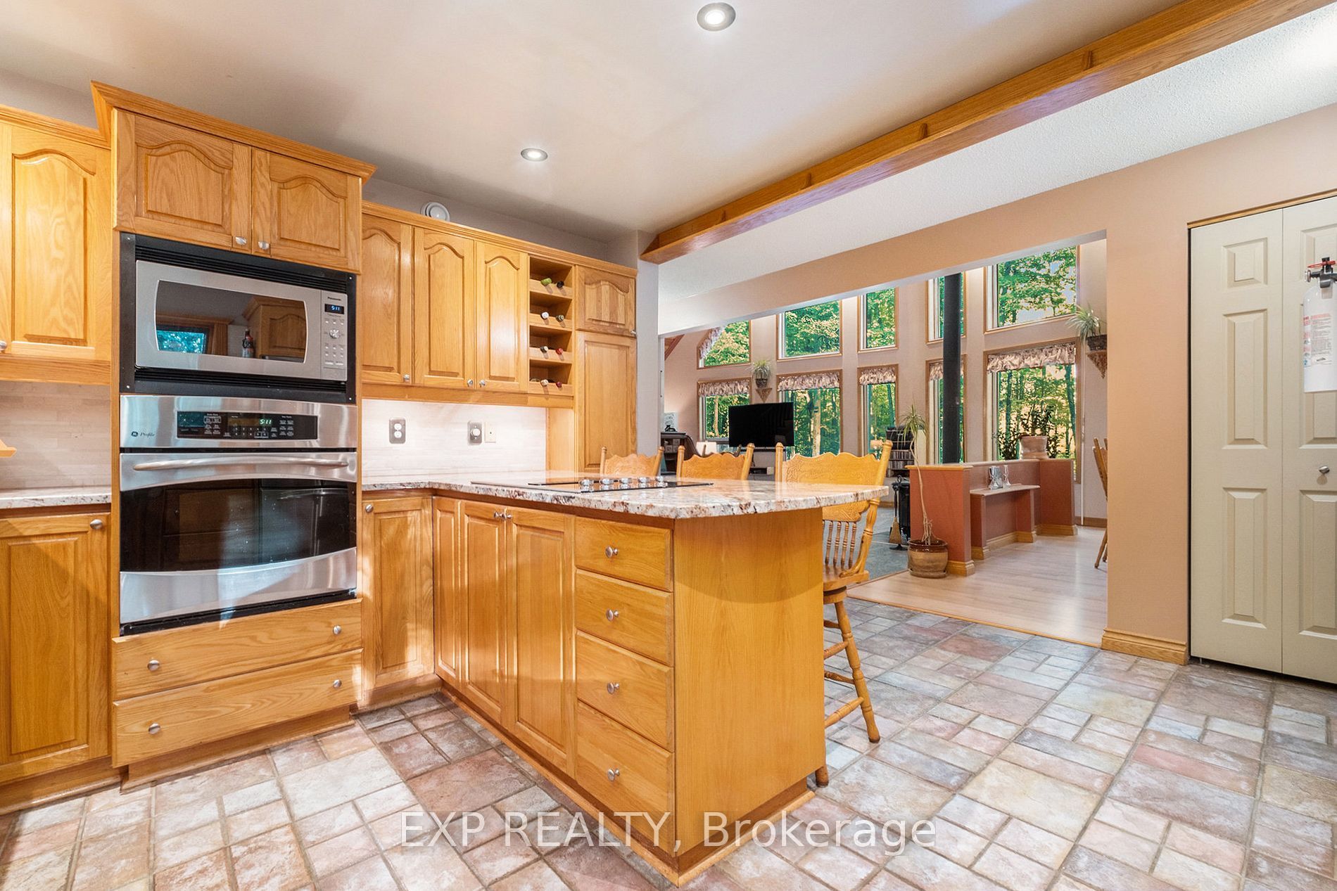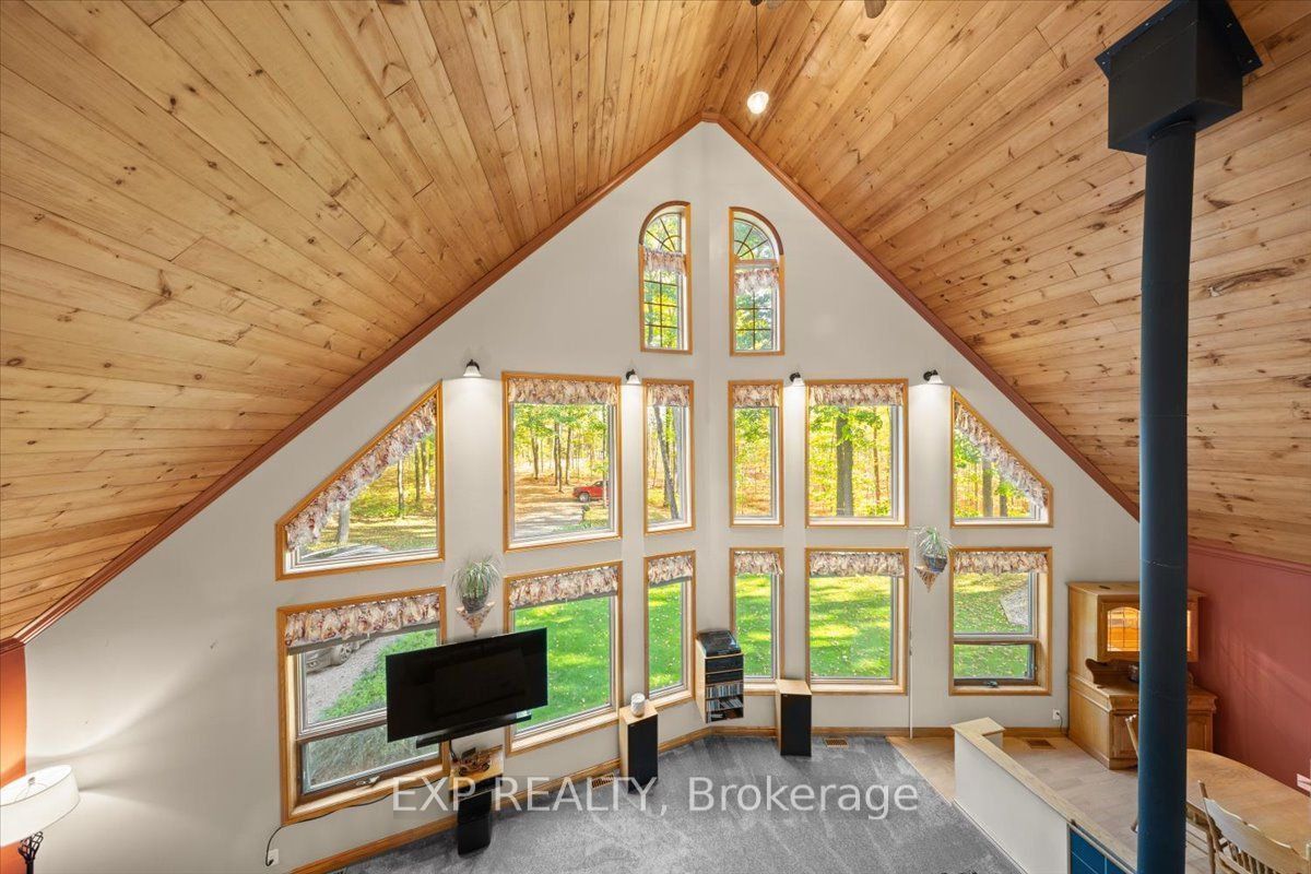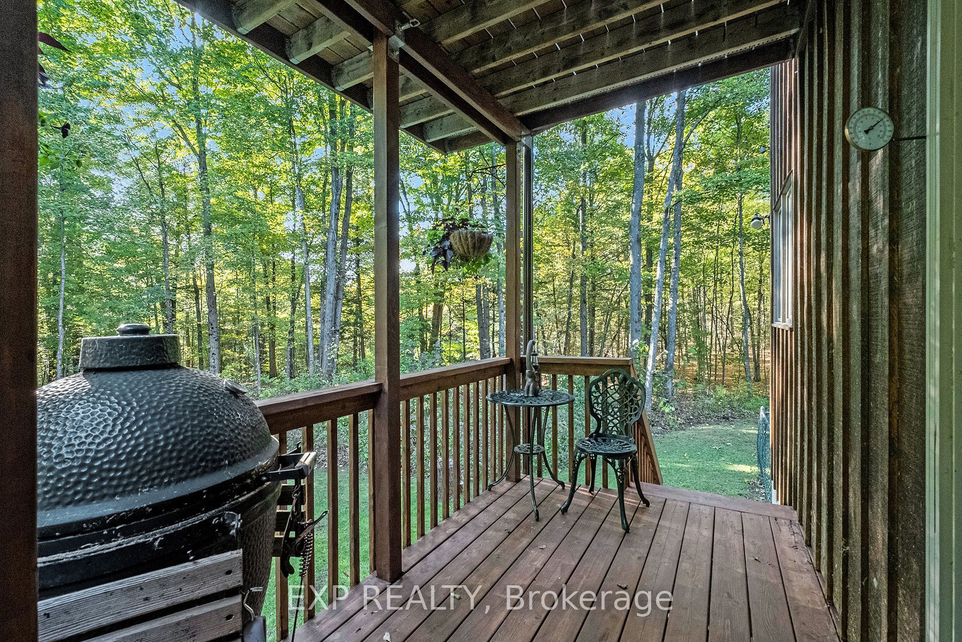 Welcome to your dream home! This stunning custom-built residence, clad in western red cedar board & batten, is set on6. 27 acres of beautifully maintained, wooded land with a private driveway offering serene seclusion and natural beauty. The home features an energy-efficient geothermal heating and cooling system, a vermont castings woodstove, and top-tier insulation throughout both the house and garage for year-round comfort. Step inside to find a freshly painted main level with brand new carpeting and a thoughtfully designed layout featuring a full 3-piece bathroom, laundry room, bedroom, and a dramatic 26'vaulted ceiling with wall-to-wall windows that flood the space with natural light. The remodeled kitchen includes stainless steel appliances, granite countertops, and a convenient breakfast bar perfect for entertaining or everyday living. Upstairs, you'll find a cozy guest bedroom, a 5-piece bathroom, a luxurious therapeutic tub included, and a spacious primary bedroom with a private balcony overlooking the peaceful, tree-lined surroundings. Both bathrooms have been updated with stylish new vanities, blending modern finishes with timeless charm. The finished basement offers a large recreation/exercise room, cold storage, and a utility/storage area. A pristine 4-car garage features an impeccably finished, climate controlled workshop ideal for hobbyists or serious diyers. Outside, enjoy a calming patio with a custom pond, a vegetable garden, a greenhouse, and ample storage buildings. Explore the scenic trails or relax beside the charming creek that runs through the property. This one-of-a-kind retreat blends comfort, functionality, and natural beauty an exceptional opportunity for those seeking privacy and connection to the outdoors. Only12 min. From kemptville and 6min. To beautiful merrickville. The basement furniture (pool table, hockey table, exercise equipment, couch, chair and tv) is included in the sale.