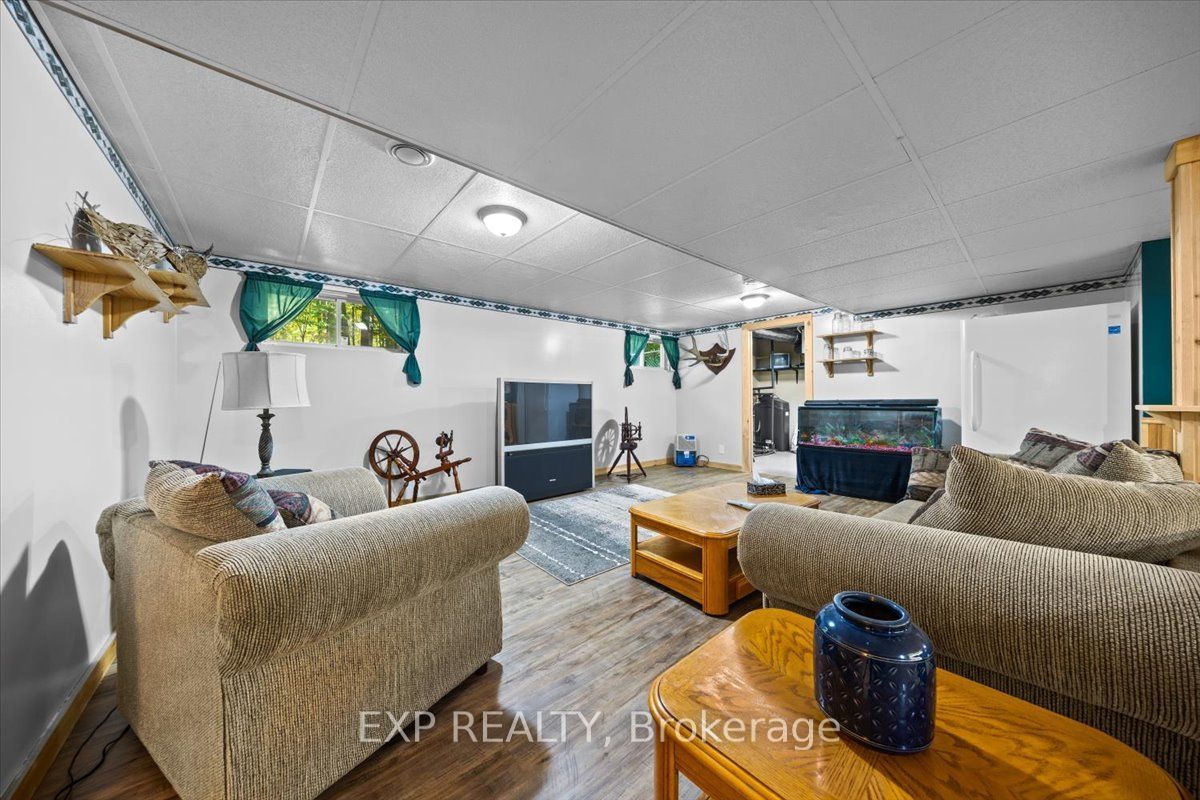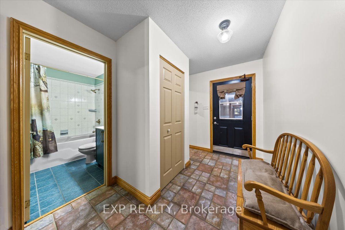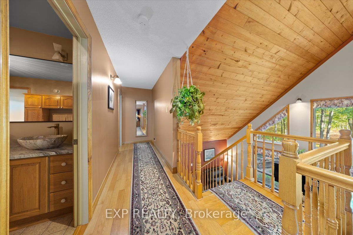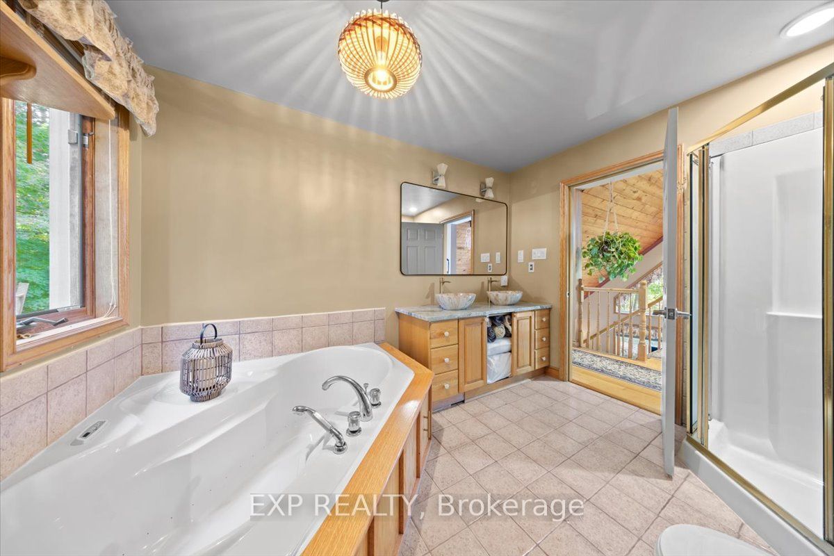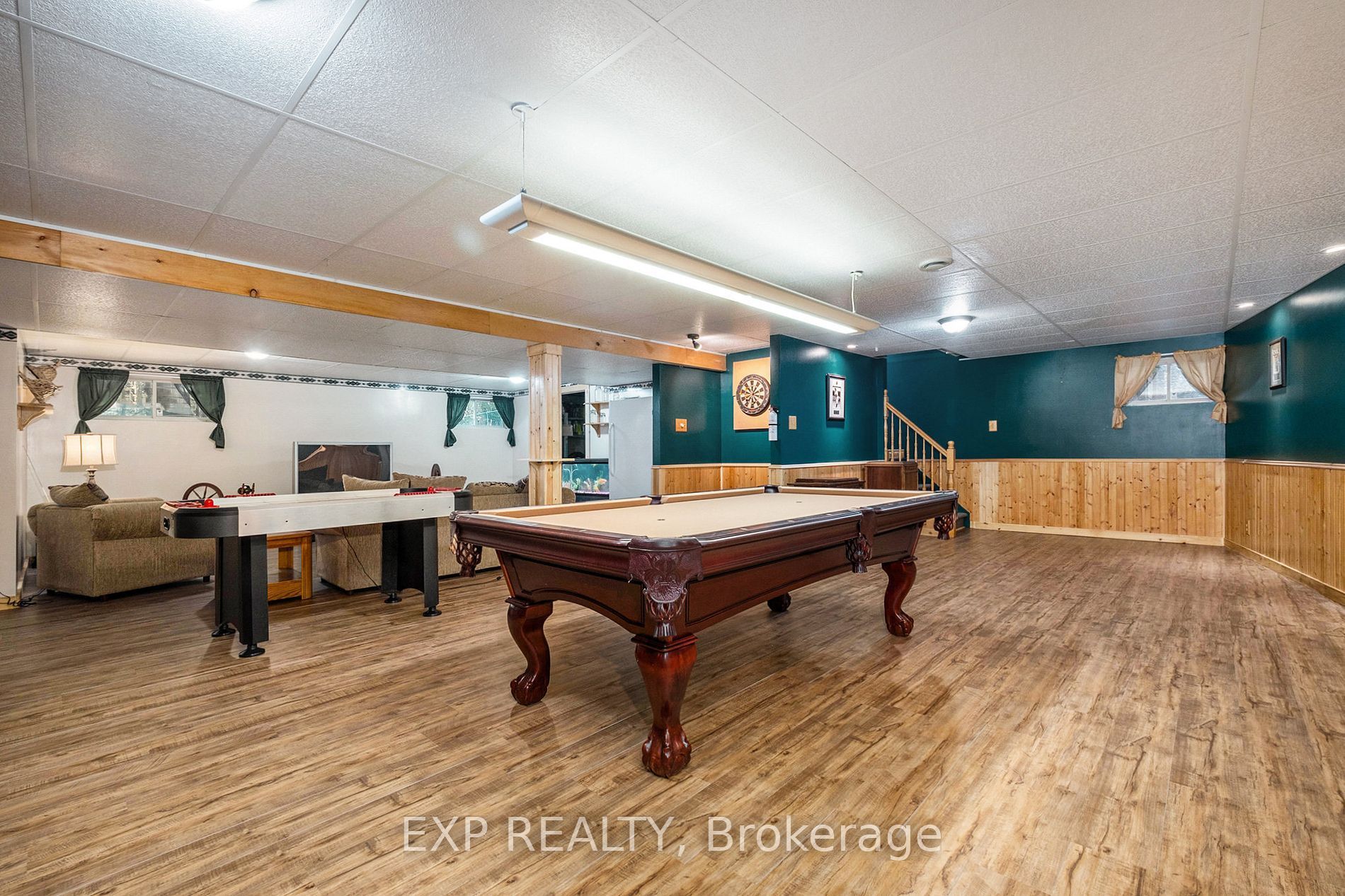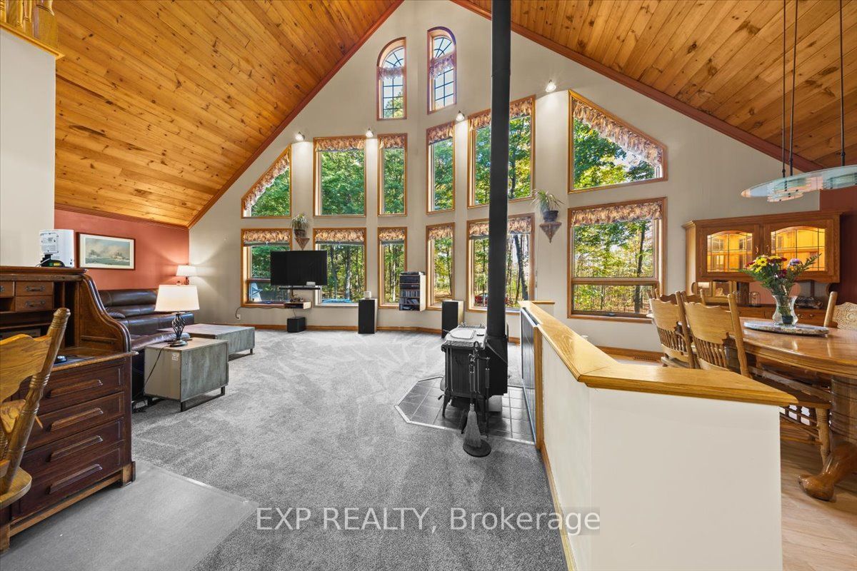 Welcome to your dream home! This stunning custom-built residence, clad in western red cedar board & batten, is set on6. 27 acres of beautifully maintained, wooded land with a private driveway offering serene seclusion and natural beauty. The home features an energy-efficient geothermal heating and cooling system, a vermont castings woodstove, and top-tier insulation throughout both the house and garage for year-round comfort. Step inside to find a freshly painted main level with brand new carpeting and a thoughtfully designed layout featuring a full 3-piece bathroom, laundry room, bedroom, and a dramatic 26'vaulted ceiling with wall-to-wall windows that flood the space with natural light. The remodeled kitchen includes stainless steel appliances, granite countertops, and a convenient breakfast bar perfect for entertaining or everyday living. Upstairs, you'll find a cozy guest bedroom, a 5-piece bathroom, a luxurious therapeutic tub included, and a spacious primary bedroom with a private balcony overlooking the peaceful, tree-lined surroundings. Both bathrooms have been updated with stylish new vanities, blending modern finishes with timeless charm. The finished basement offers a large recreation/exercise room, cold storage, and a utility/storage area. A pristine 4-car garage features an impeccably finished, climate controlled workshop ideal for hobbyists or serious diyers. Outside, enjoy a calming patio with a custom pond, a vegetable garden, a greenhouse, and ample storage buildings. Explore the scenic trails or relax beside the charming creek that runs through the property. This one-of-a-kind retreat blends comfort, functionality, and natural beauty an exceptional opportunity for those seeking privacy and connection to the outdoors. Only12 min. From kemptville and 6min. To beautiful merrickville. The basement furniture (pool table, hockey table, exercise equipment, couch, chair and tv) is included in the sale.