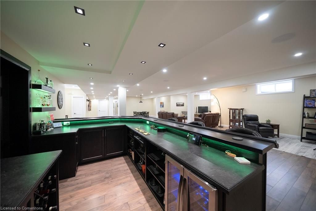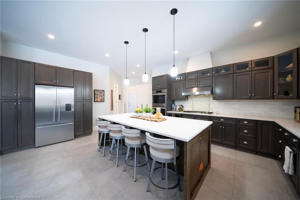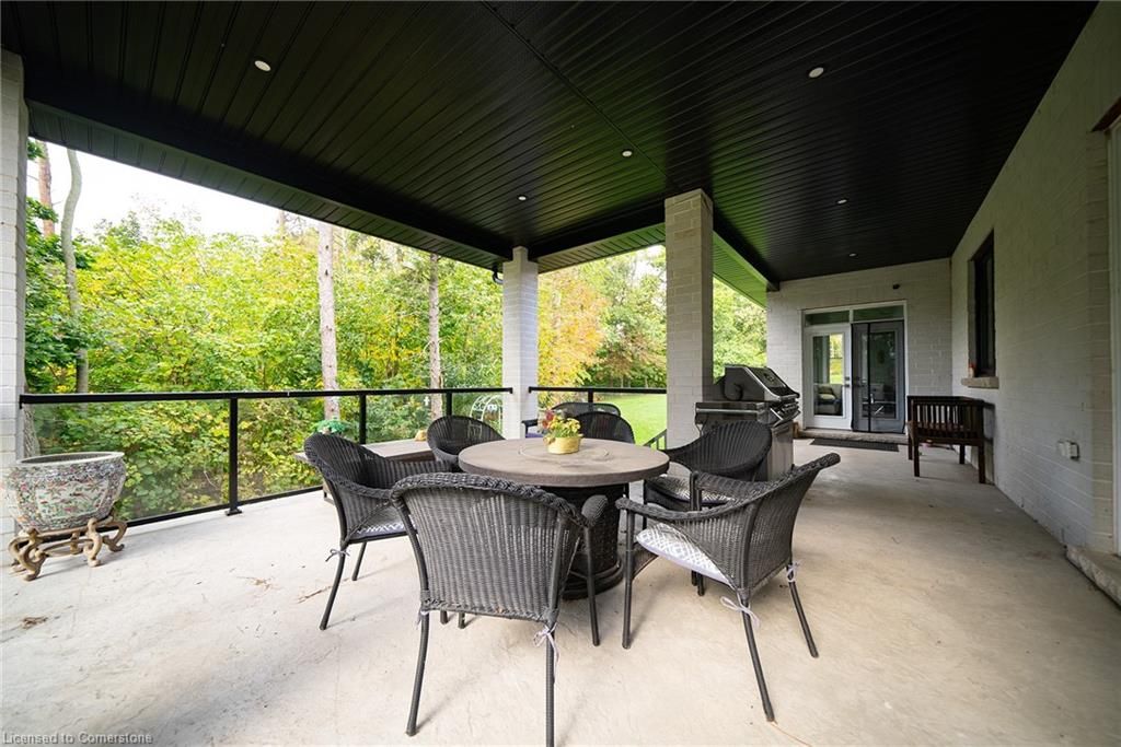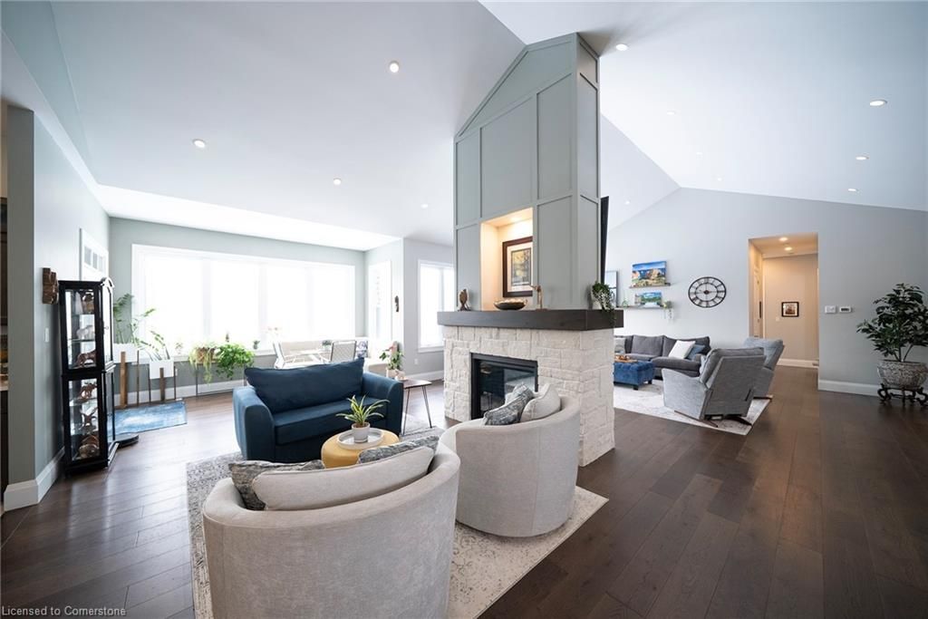 Experience refined country living in this exceptional custom built bungalow, privately set on 1 acre and embraced by 10 acres of protected green space. Offering over 7,000 sq. Ft. Of beautifully finished living space, this property blends timeless design with modern comfort in a setting that feels worlds away-yet remains conveniently close to everything. A grand custom entry opens to a dramatic foyer with soaring 16 ft cathedral ceilings, setting the tone for the elegance throughout. This spectacular great room features a striking two-sided stone fireplace and flows seamlessly into a chef-inspired kitchen complete with premium appliances, extensive cabinetry, and a spacious walk-in pantry (currently styled as a cozy coffee station). Whether hosting formal gatherings or enjoying relaxed family evenings, the layout is designed to impress without sacrificing warmth. A formal dining room, bright breakfast area, and sun-filled sitting room create multiple spaces to entertain or unwind. The main floor offers 4 generously sized bedrooms, including a serene primary retreat designed for spa-like relaxation. A thoughtfully designed laundry and mudroom adds everyday convenience with elevated style. The fully finished lower level delivers over 3,000 sq. Ft. Of additional living space, featuring a custom wet bar (with a hidden cold room tucked behind it), expansive recreation & games areas, 3 additional bedrooms. Ideal for extended family, guests, or multi-generational living. Outdoors you'll enjoy private walking trails, panoramic countryside views, and unmatched tranquility. A heated workshop, an oversized garage with space for up to nine vehicles provide incredible flexibility for car enthusiasts, hobbyists, or business owners. Located just minutes from cambridge and brantford, this is a rare opportunity to own a luxurious retreat that offers privacy, space, and convenience in perfect balance. This is more than a residence its a sanctuary, a statement, and a lifestyle!