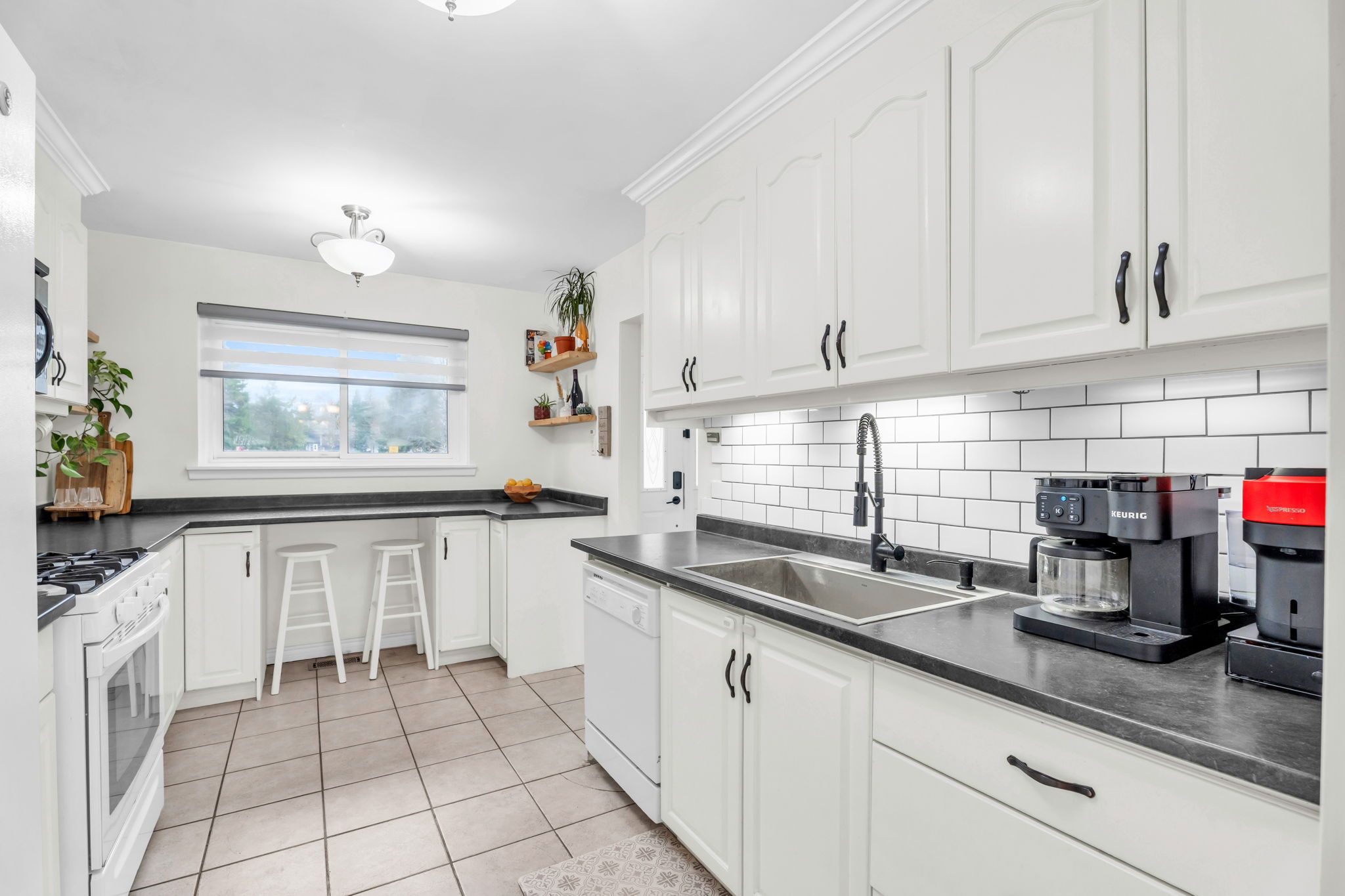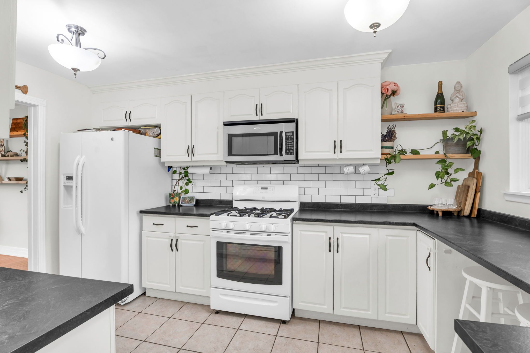 • Bright 3-bedroom home with updated eat-in kitchen and tile flooring.