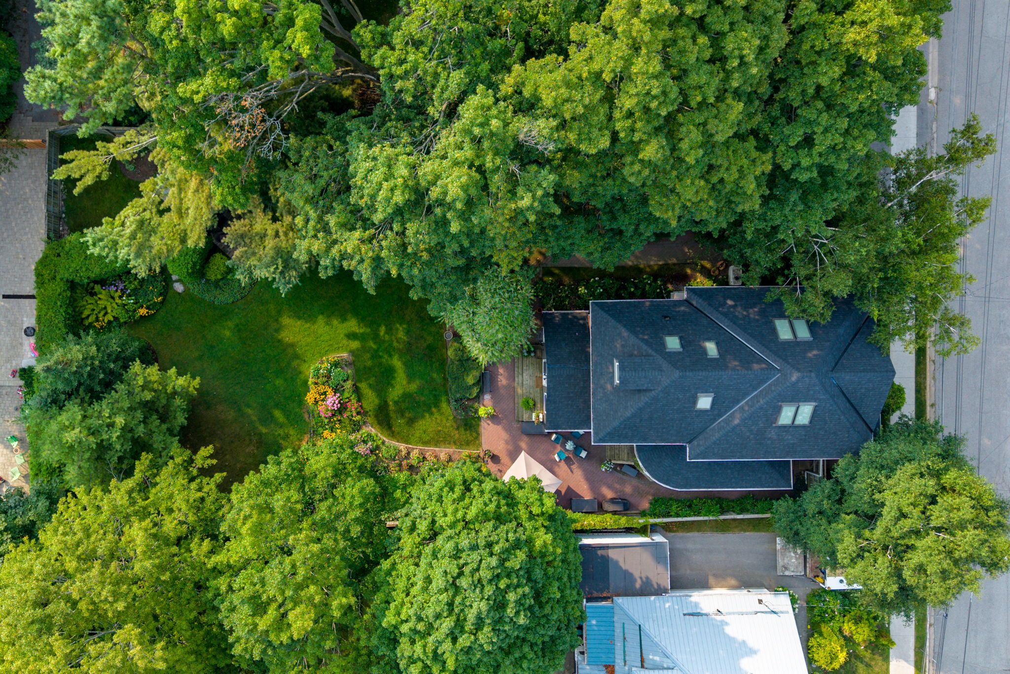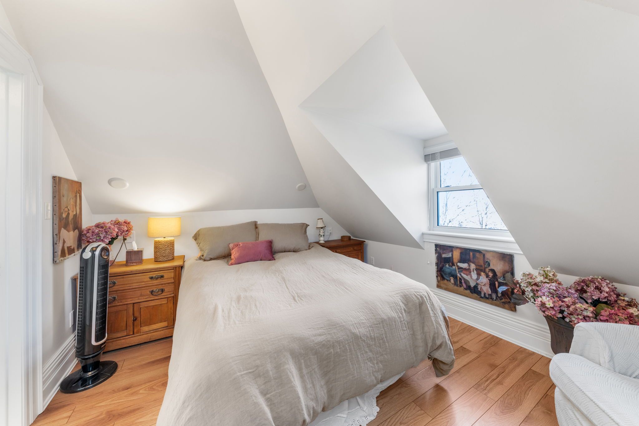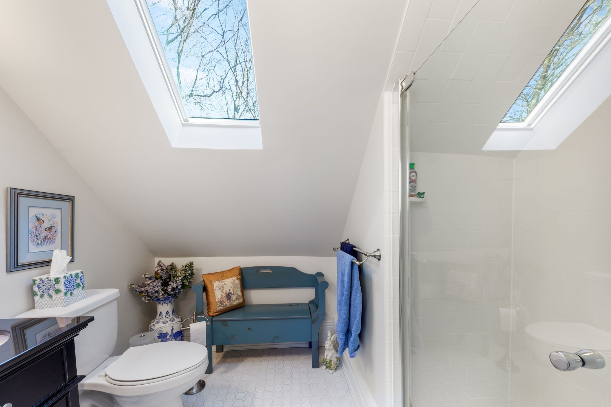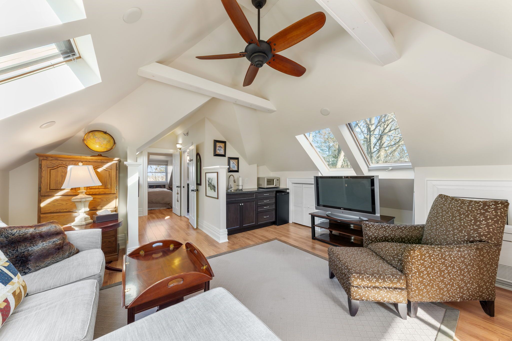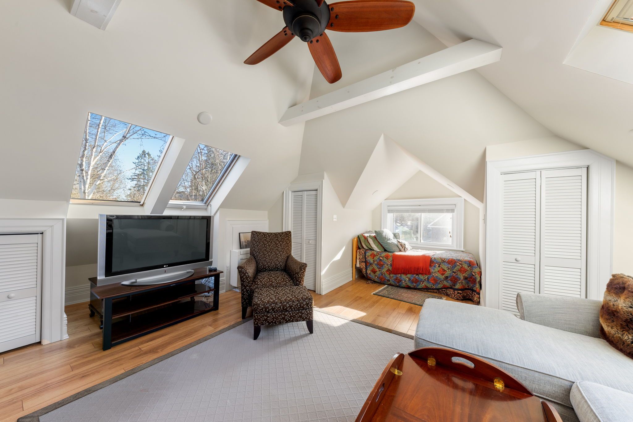 • Stunning finished attic with skylights, bedroom, bathroom, and living room.