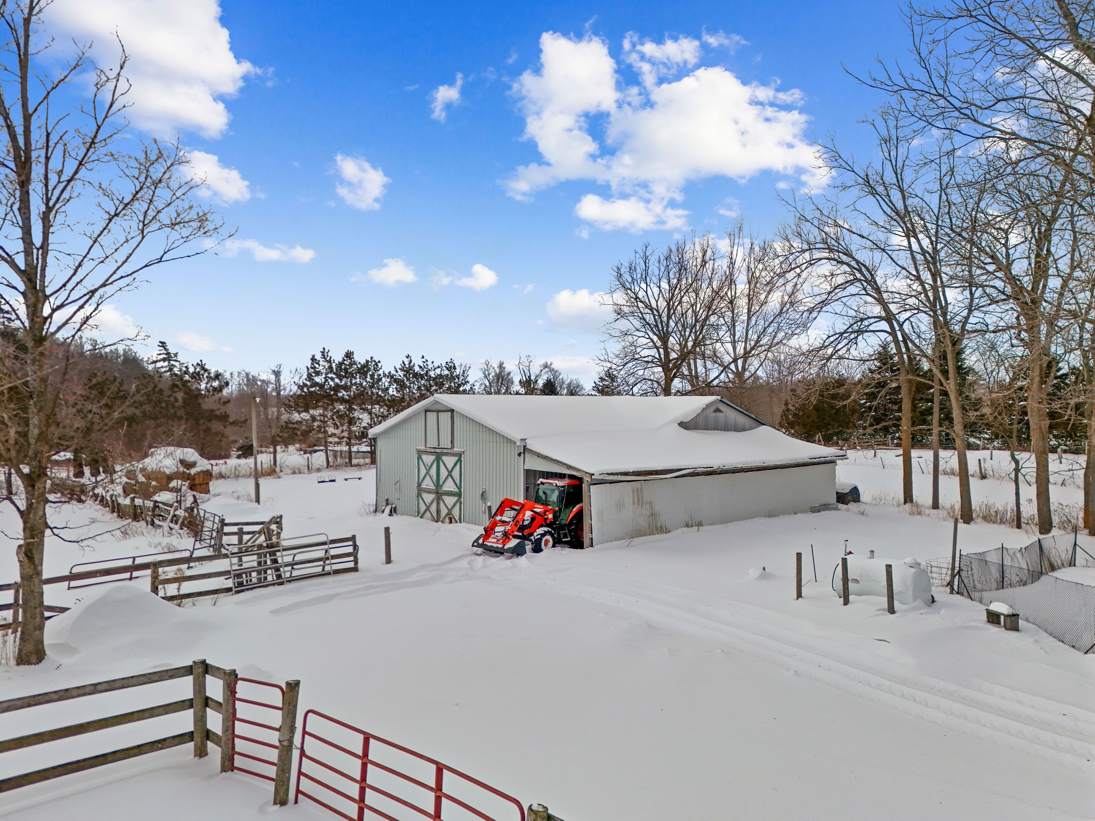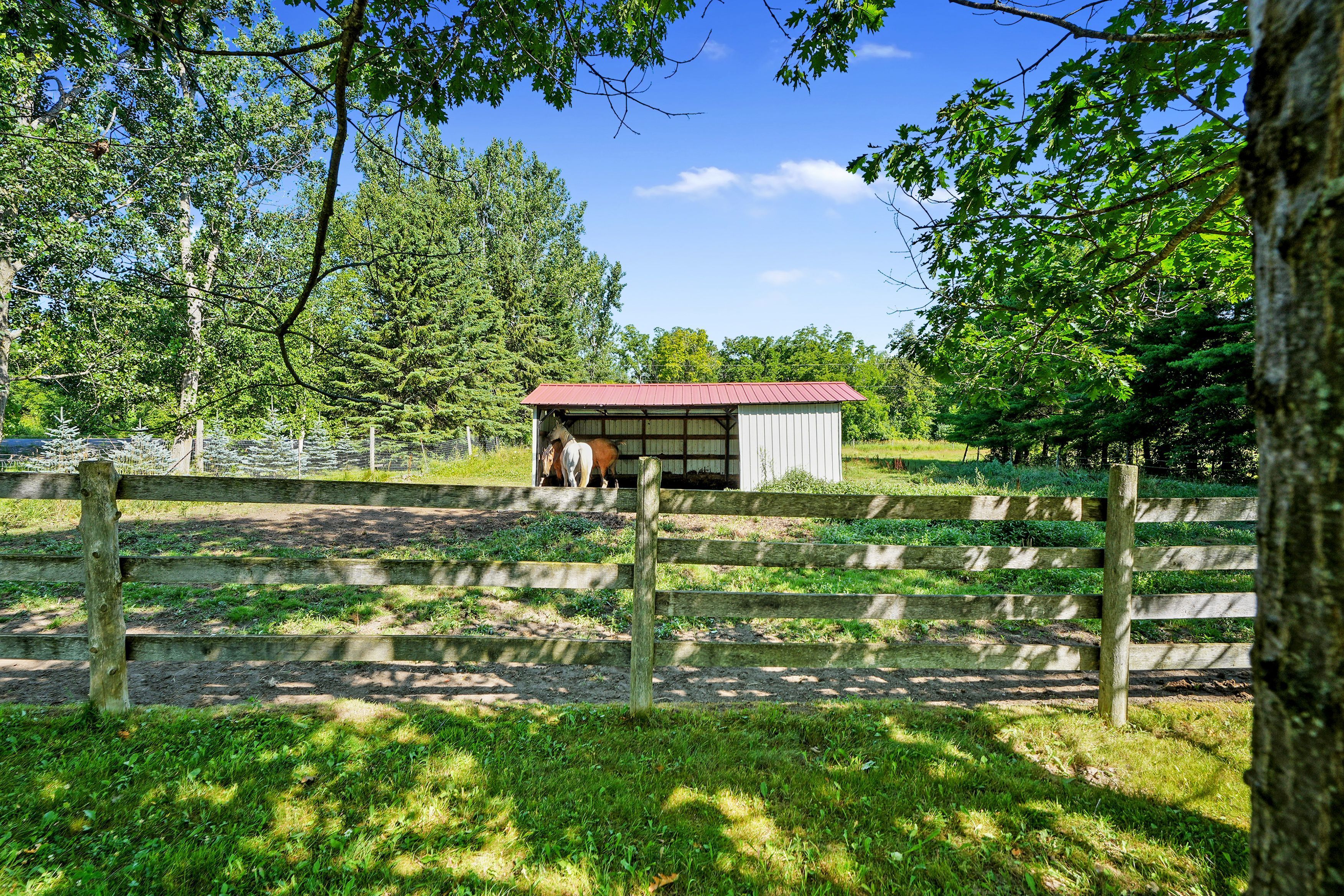 • Charming barn and fenced paddocks cater to agricultural needs and animal care.