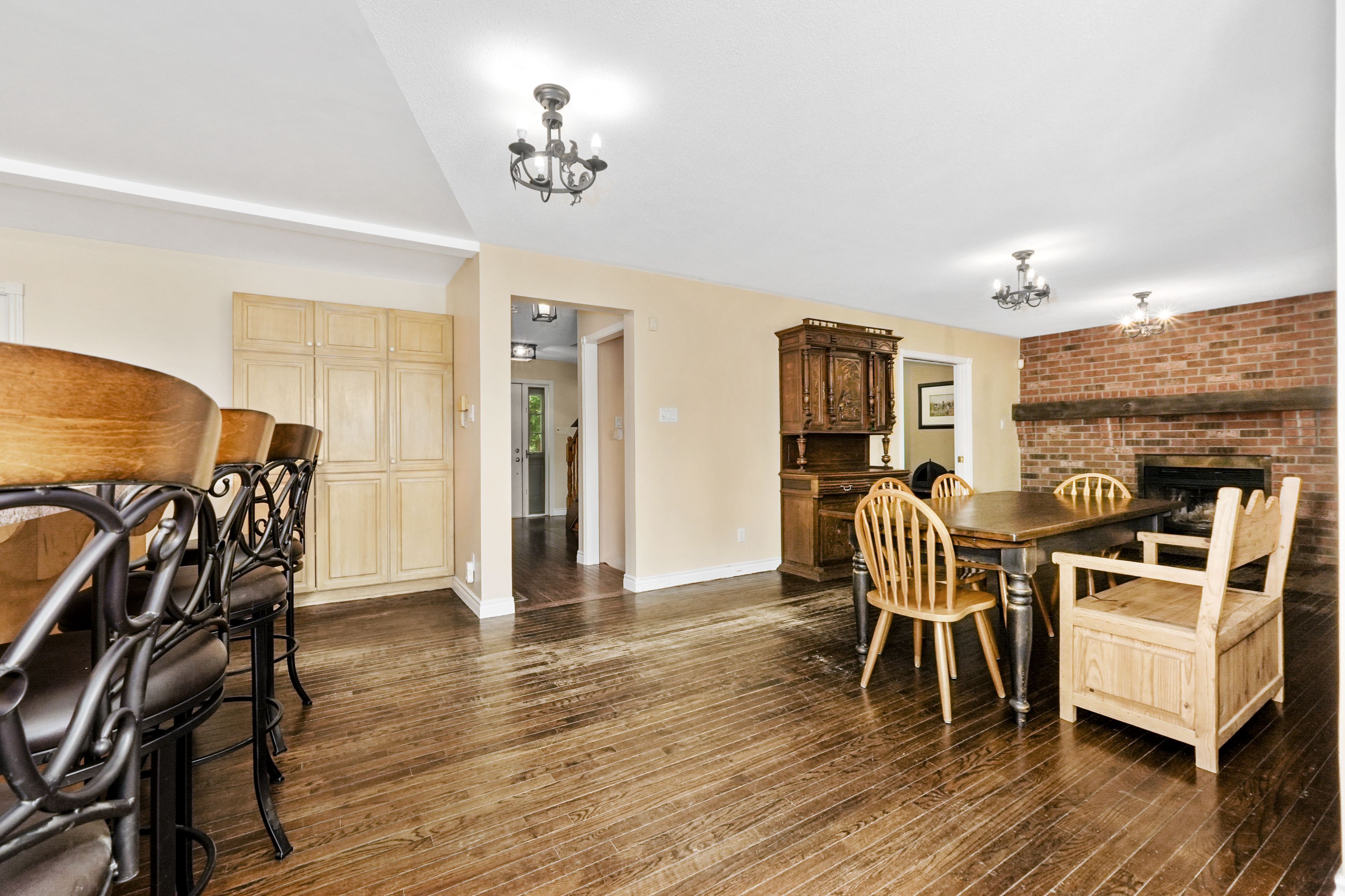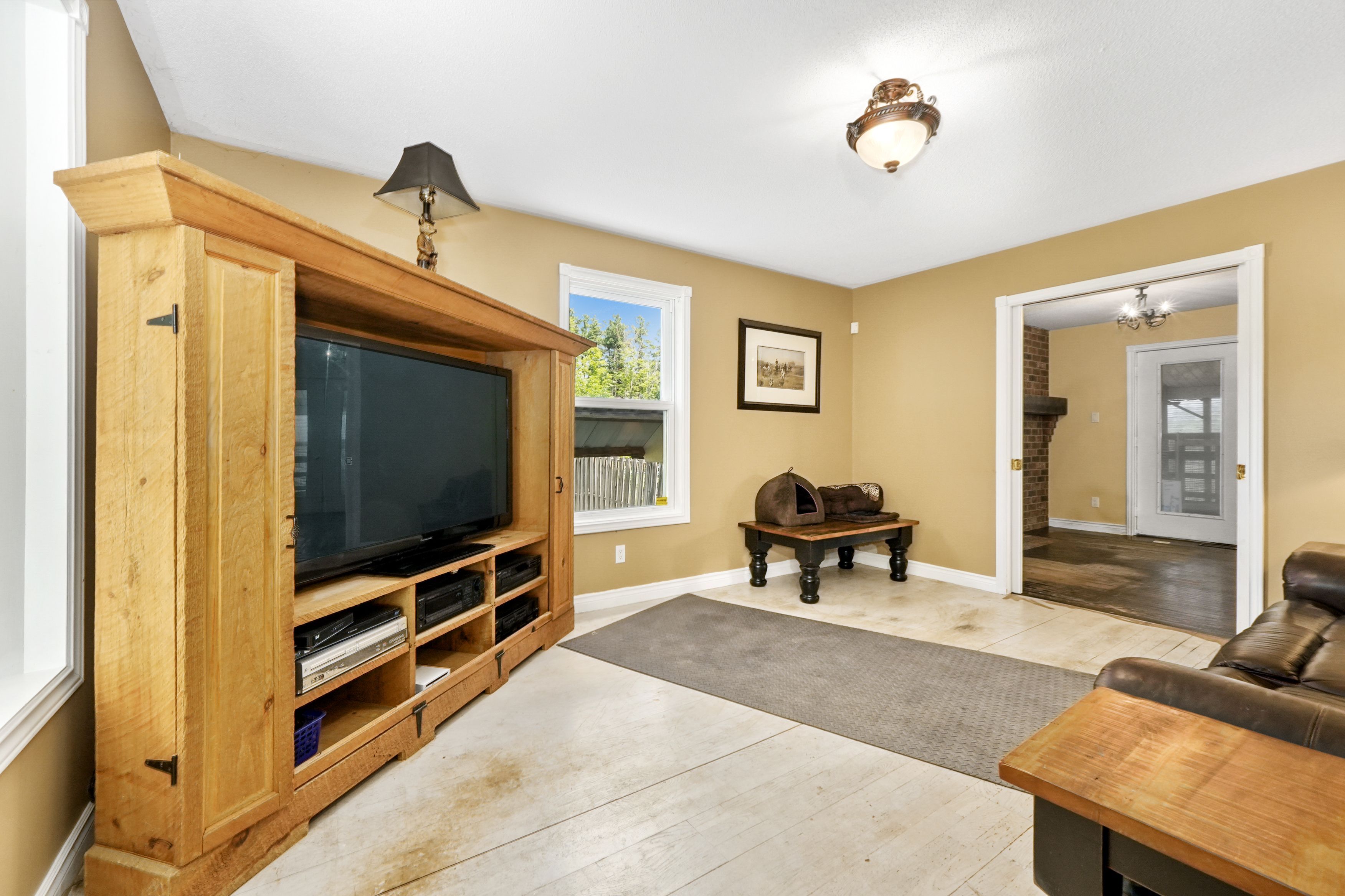 • Spacious main living area with a cozy fireplace and bright dining nook.