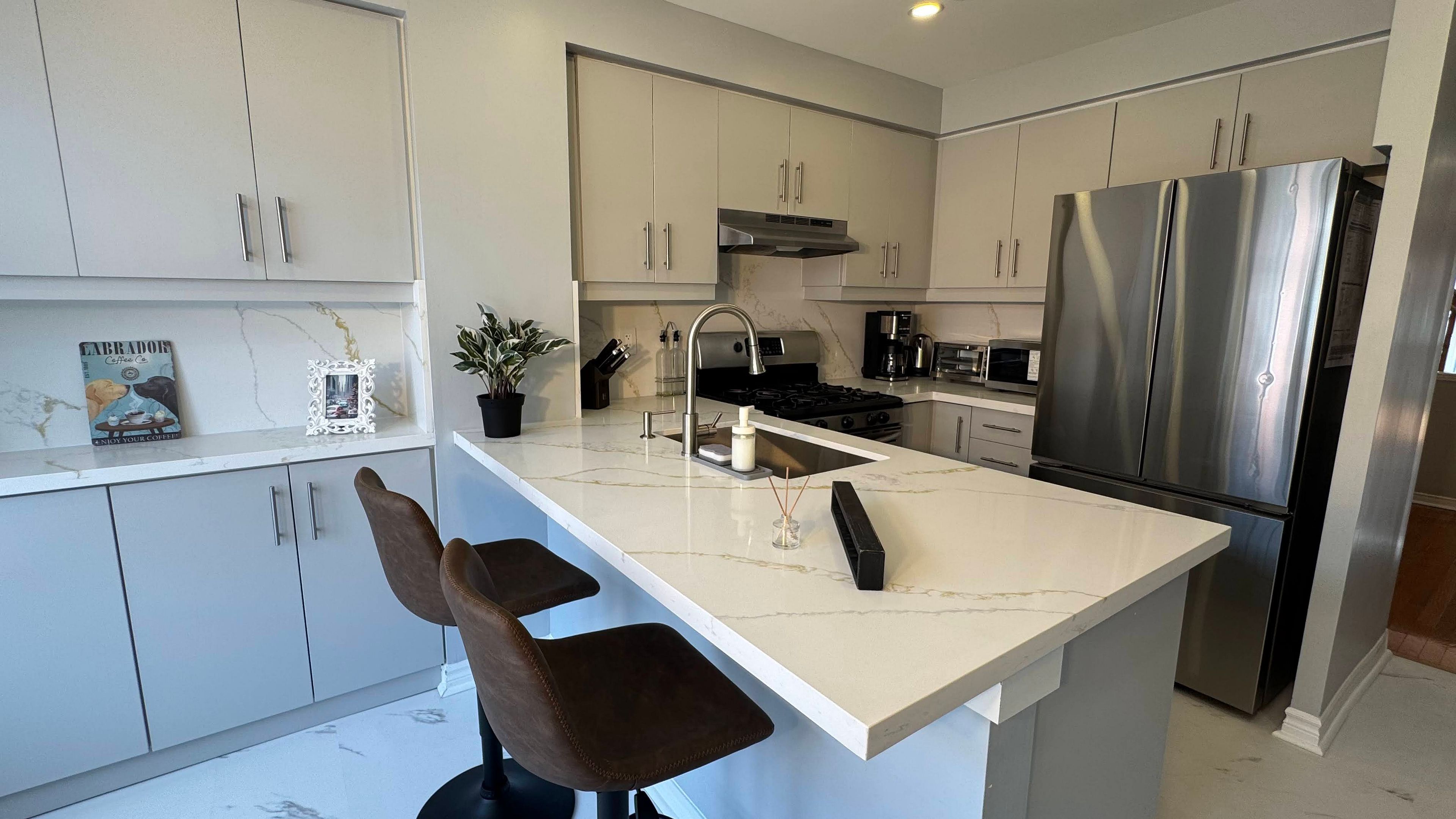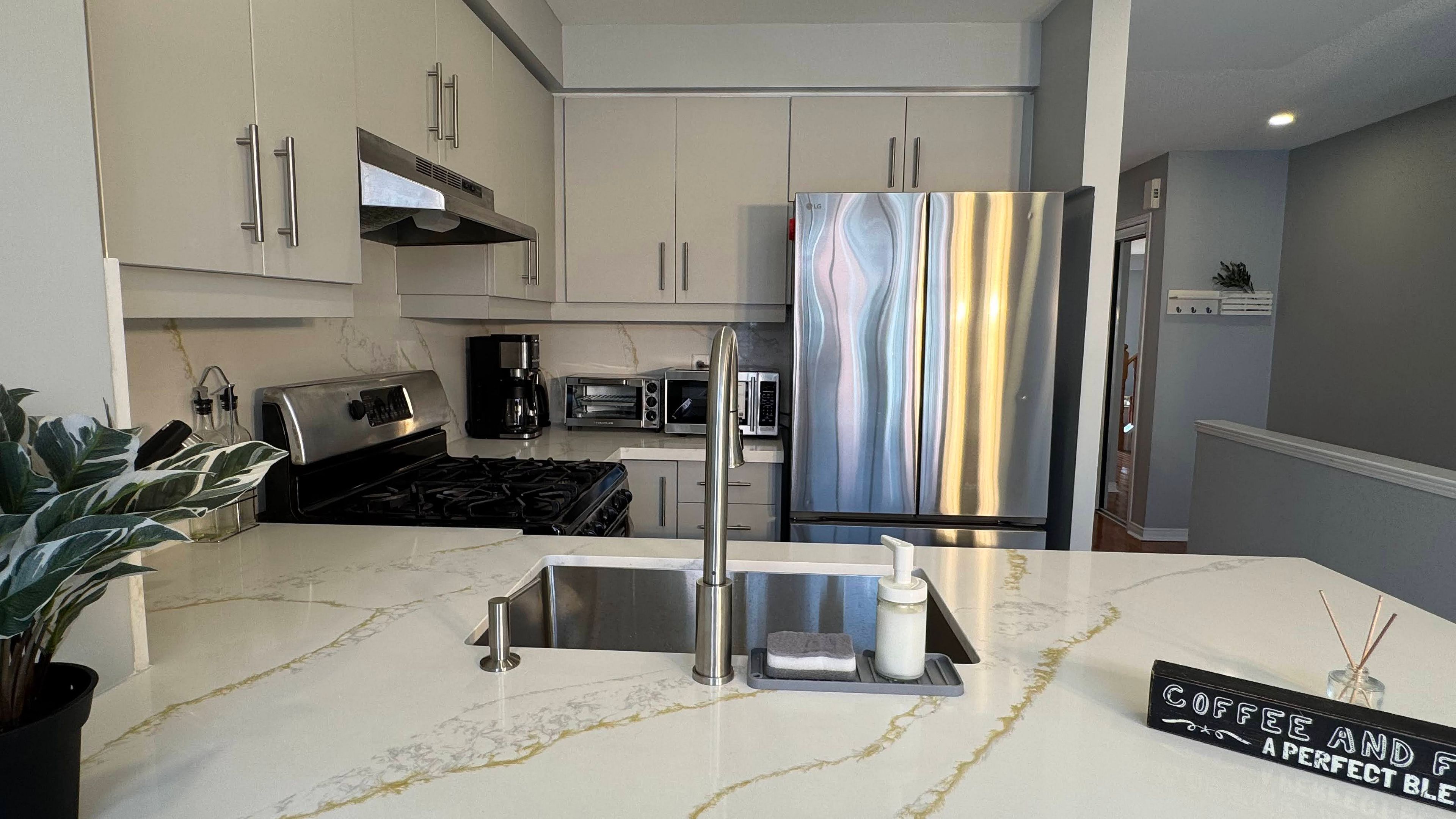 ## stylish, move-in ready 3+1 bedroom, 3-bath freehold townhouse in a family-friendly pocket of lisgar/meadowvale, offering approx. 1,500-2,000 sq. Ft. And a smart multi-level layout designed for real life featuring over $40,000 in premium upgrades. ## the main living level features a bright open-concept living/dining area with large windows, plus a brand new kitchen complete with stainless steel appliances, new quartz countertops & backsplash, and a breakfast area with space for bar stools and a brand new furnace and air conditioner. Enjoy the added convenience of a main-floor powder room and a walk-out to your private balcony/patio-perfect for morning coffee or summer evenings. ## upstairs, you'll find three generously sized bedrooms, including a spacious primary retreat with walk-in closet and private ensuite. The ground/lower level offers a finished versatile room-ideal as a 4th bedroom, family room, or home office-with a walk-out to the backyard and interior access to the built-in garage plus private driveway. ## featuring elegant hardwood flooring, brand new tile, and freshly stained oak stairs, along with modern upgrades like smart switches, upgraded light fixtures, and fresh paint throughout. ## a fantastic location close to parks, trails, schools, shopping, and restaurants, and commuter routes. Steps to lisgar middle school, meadowvale secondary school, meadowvale town centre, and lake aquitaine park. Commuter-friendly with easy access to lisgar go, hwy 401 & 407, and public transit. ## move in and enjoy-stylish upgrades in a prime mississauga neighbourhood. ## optional: brand new furniture in the home is available for purchase. Buyers may pick and choose items. Furniture pricing is negotiable and can be included in the purchase price for a seamless move-in experience. Furniture price negotiations will take place only after the purchase price of the property has been agreed upon.