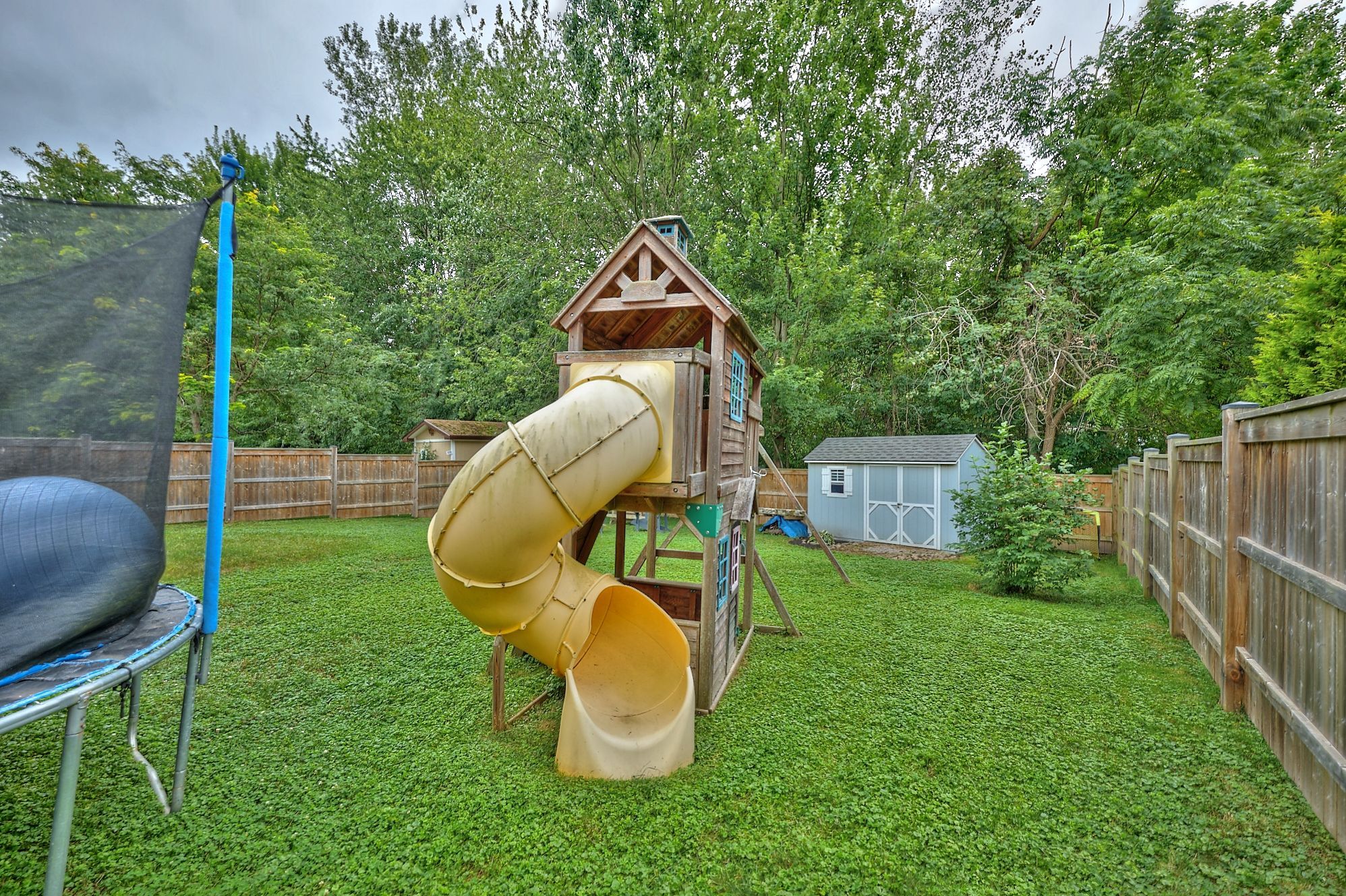 Set in one of ridgeway's most sought-after neighbourhoods, known for its quiet streets and strong sense of community, this beautifully maintained 3+1 bedroom home offers an exceptional place to call home. The open-concept main floor brings the kitchen, dining, and living areas together-perfect for both everyday family life and hosting friends. Step outside to a spacious rear deck and a private backyard backing onto the friendship trail, offering a rare blend of privacy and outdoor enjoyment. The primary bedroom features a walk-in closet and a 4-piece ensuite, while additional bedrooms provide flexible space for a growing family. The finished lower level includes a large recreation room with a cozy gas fireplace and an extra bedroom-ideal for teens, guests, or a home office. Complete with an attached double garage, private driveway parking for up to four vehicles, and just minutes from top local amenities, schools, parks, and the charm of ridgeway and fort erie, this home delivers the location, lifestyle, and comfort buyers are searching for.