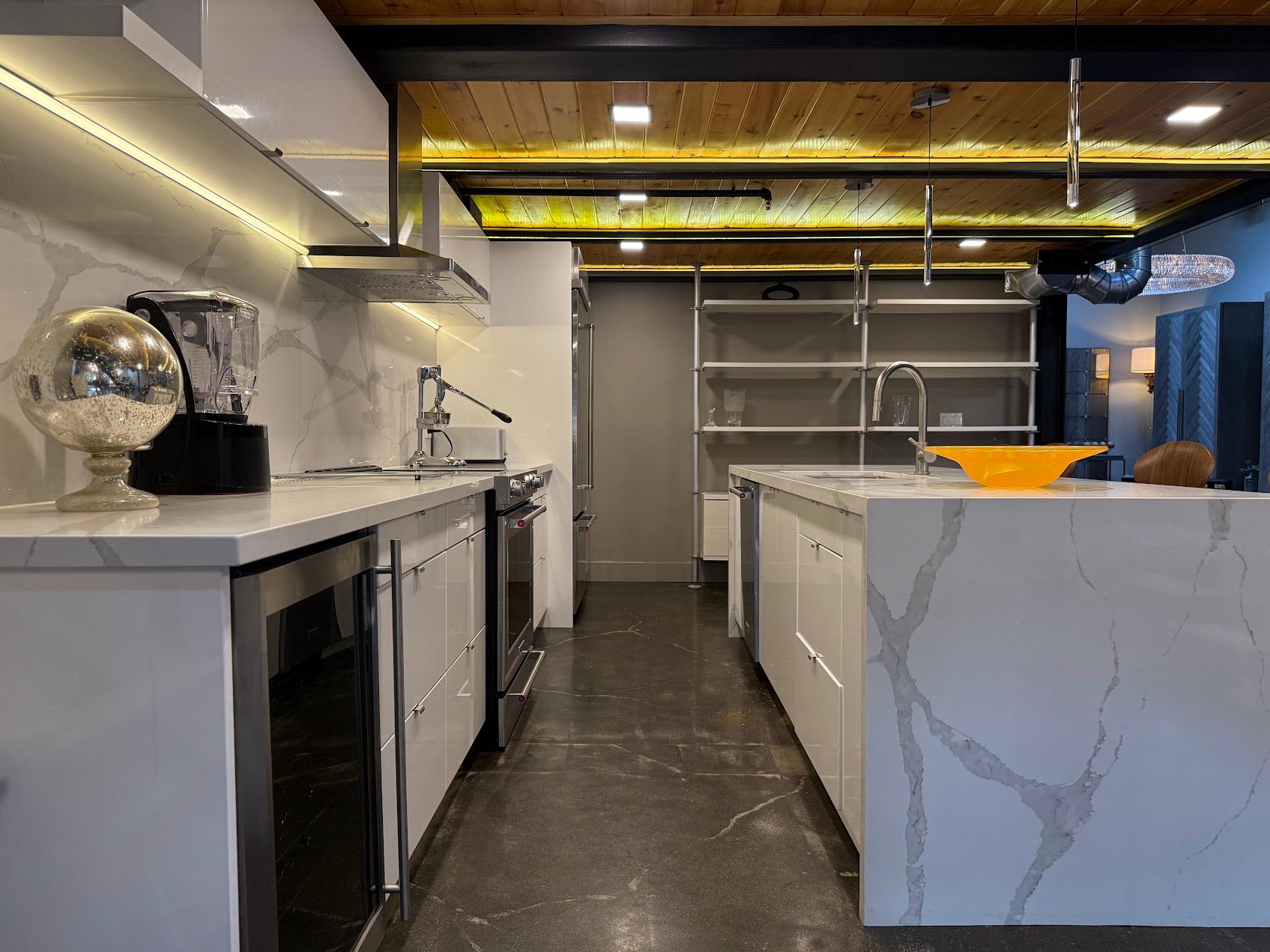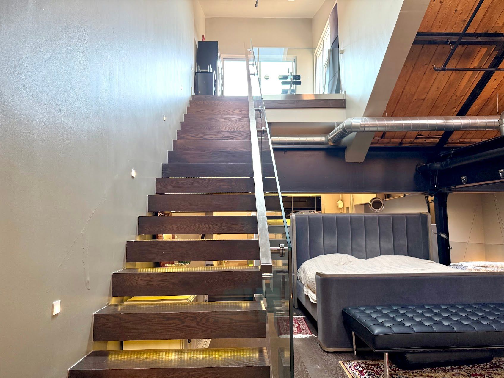 Rare opportunity to lease a fully furnished loft in leslieville's iconic i-zone. Offering 2,329 sq ft of living space with soaring timber & beam ceilings peaking at nearly 25 ft, exposed brick, polished concrete floors, and a private 375 sq ft rooftop terrace, this authentic hard loft is truly one-of-a-kind! The chef-inspired kitchen showcases quartz counters, oversized island, and a full suite of top-of-the-line kitchenaid appliances including large oven/stovetop, double-door fridge, wine fridge, and whisper-quiet dishwasher. The open layout flows seamlessly between dining and living spaces while skylights flood the loft with natural light. Every furnishing and finish has been thoughtfully selected: restoration hardware dining set, bed, storage units and mirrors, elte armchairs and coffee tables, hand-knotted persian rugs, solid rosewood entry chest, and crystal decanters. Essentials are all included, linens, bedding, cutlery, plates, cookware, breville automatic toaster, blendtec industrial blender, and coway airmega air purifier sized for the entire loft. Simply turn the key and enjoy immediate high-end living. The main level includes a spacious second bedroom, three-piece bath with glass shower, and expansive living areas. The upper-level primary suite offers custom closets and a spa-like six-piece ensuite. This loft comes with a dedicated private underground parking spot. Located in a vibrant, creative hub steps to queen st easts trendy restaurants, cafes, galleries, parks, fitness studios, and transit, with quick access to the dvp, gardiner, and lakeshore. A rare offering, this is loft living at its absolute best!