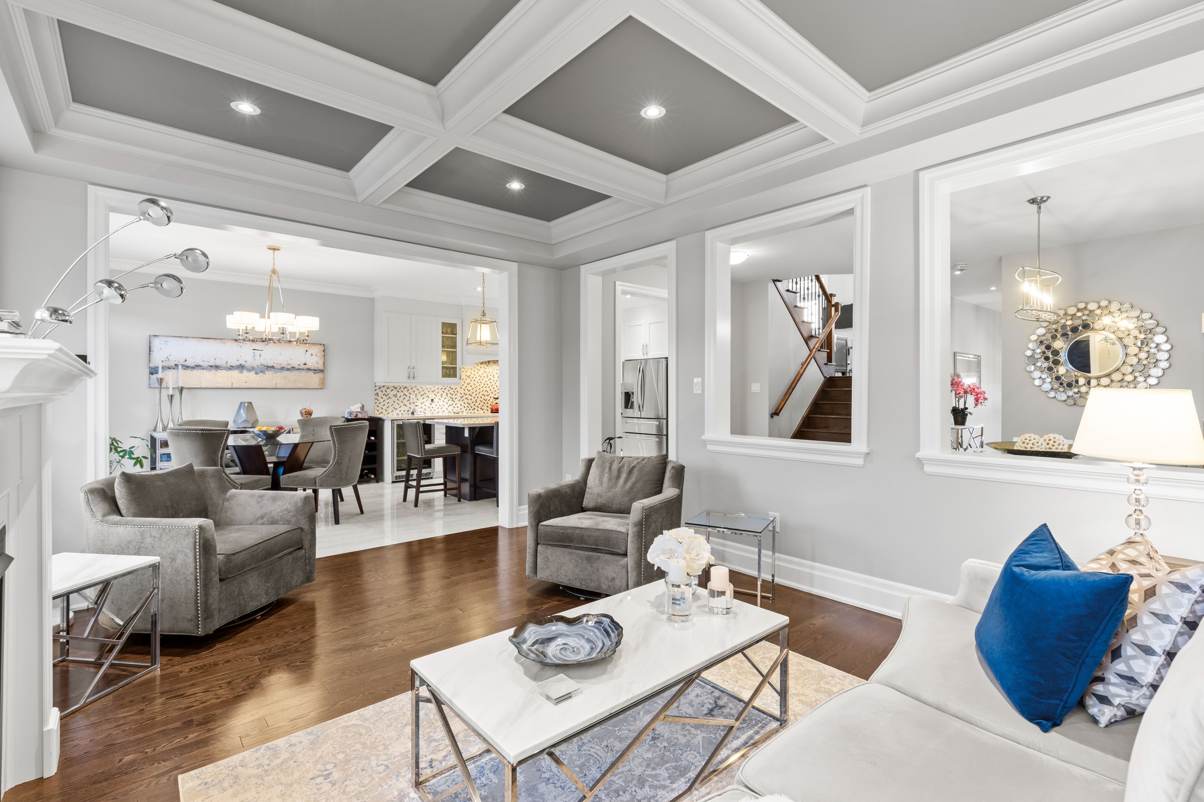 • Spacious layout with high-end finishes like vintage oak hardwood.