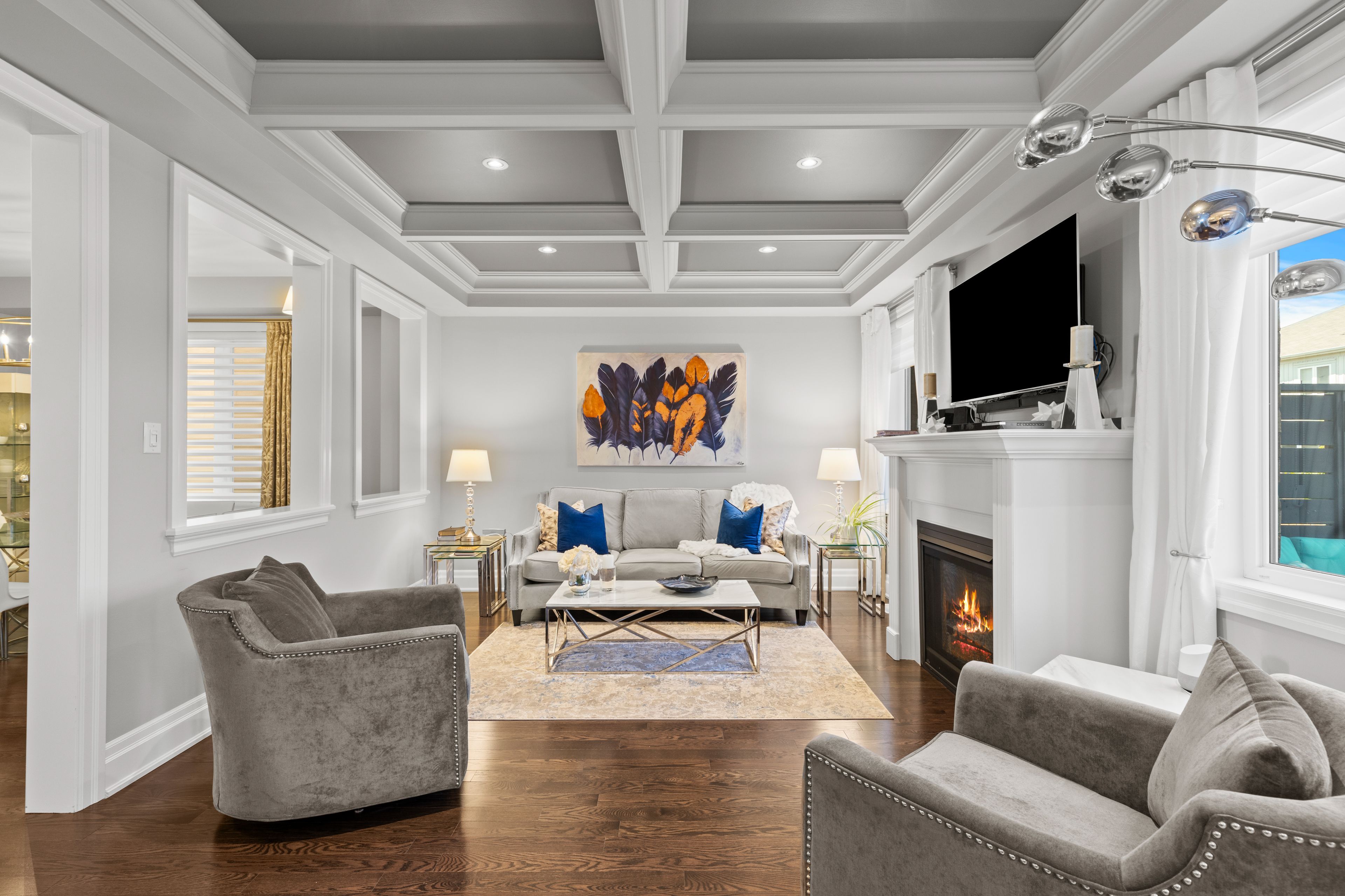 This one-of-a-kind home offers breathtaking views and a rare opportunity to live in the heart of niagara-on-the-lake, known for its wineries, dining, and scenic trails. With over 2,500 sq ft above grade, it's ideal for those wanting close proximity to golf courses and recreation while enjoying a high-quality lifestyle. The main floor features a bright, open layout from the moment you enter through double front doors. High-end finishes like vintage oak hardwood and porcelain tile run throughout. The living room offers a gas fireplace and coffered ceilings, while the dining area provides ample space for hosting. The kitchen is the centerpiece, featuring quartz countertops, a large island with breakfast bar, ample cabinetry, stainless steel appliances, and direct access to a private backyard. A standout feature is the second-floor family room with double patio doors leading to a covered balcony with glass railings, perfect for taking in vineyard and escarpment views. The primary suite includes a sitting area, two closets, and a 5-piece ensuite with soaking tub and glass shower. Two additional bedrooms share a full bath, plus an open flex space ideal for a home office. All bedrooms feature cozy berber carpet. The basement offers excellent potential, nearly finished with drywall, insulation, wiring, and lighting, plus a second gas fireplace. With a separate entrance through the garage, it's well-suited for an in-law suite or guest space with finishing touches. Additional features include a double-car garage, two-car driveway, main floor laundry, and updated window coverings. A fantastic opportunity in a sought-after vineyard community.