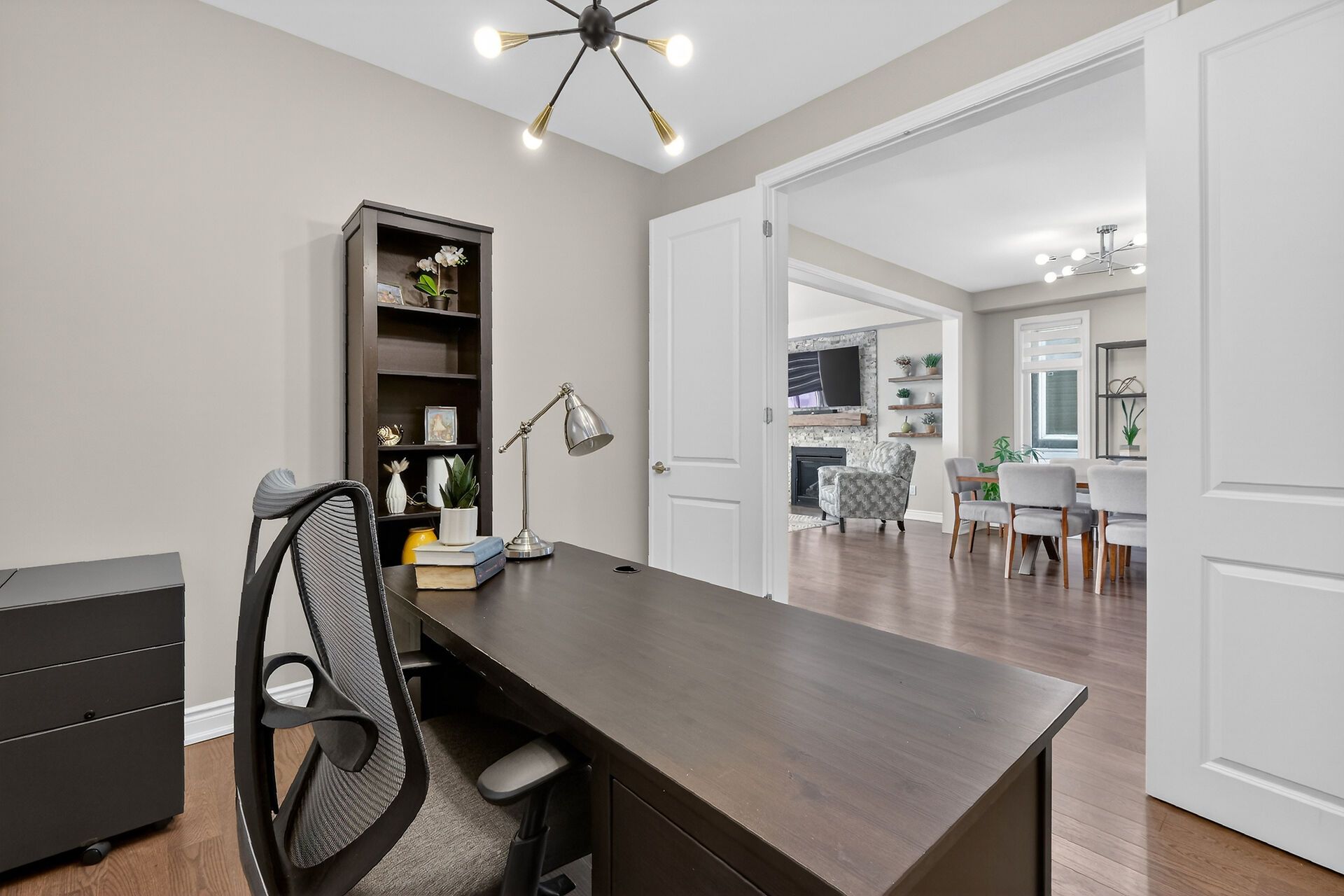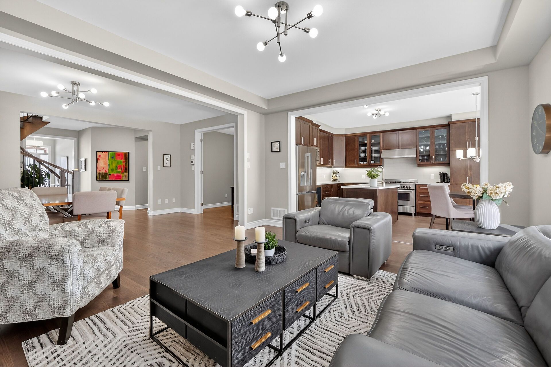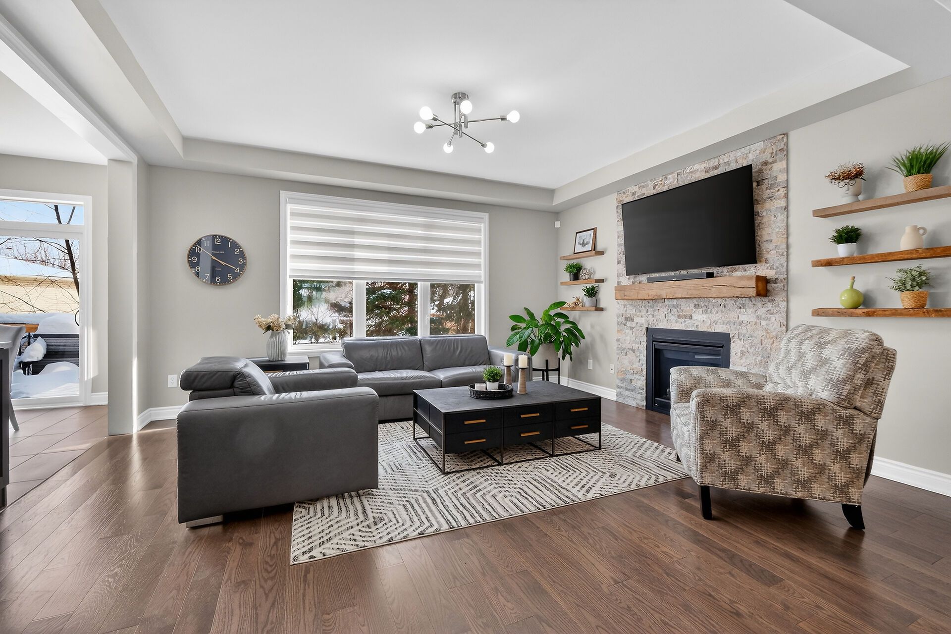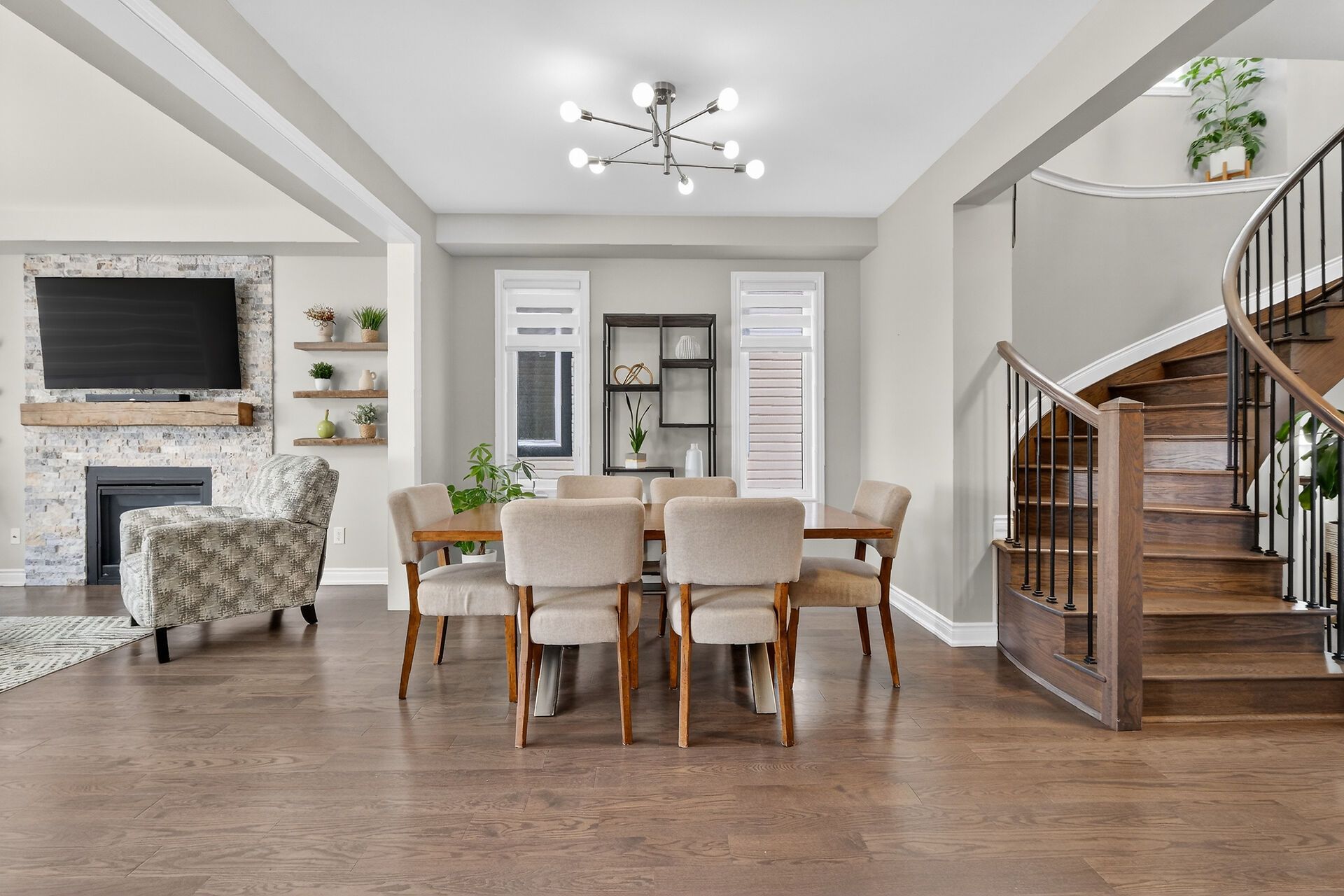 Welcome to 326 eucalyptus circle where you will find this rarely offered and highly desired "parkside" model by mattamy homes waiting for you. This home is the perfect choice for the growing family and an absolute must see as it offers 4 large bedrms all w/walk in closets (2 w/ensuite bathrms and 2 w/ jack n' jill bathrm) stunning primary bedrm complete with 5 pc ensuite, glass shower, quartz top vanity w/double faucets and luxurious soaker tub. Huge walk in laundry on 2nd level. Features of the main level include a chef inspired, gourmet kitchen complete w/upgraded maple cabinets, quartz counters, and high end stainless appliances including a 36" bertazzoni dual fuel oven and stove, sunfilled greatrm hi-lited by cozy gas fireplace and beautiful reclaimed wooden mantle, formal diningrm area, main floor office/den plus 2 walk in coat closets! Additional upgrades incl 9' ceilings on main/upper levels, hardwood floors on main level + upper level hallway, primary bedrm and staircase, flat ceilings throughout home. The walk-out lower level is unspoiled and offers direct access to the fully fenced & super private backyard oasis that backs onto existing/mature neighbourhood and features large interlock patio and soothing hot tub. Premium location on quiet low traffic circle just minutes to playgrounds, bus routes,schools,tanger mall, canadian tire center and so much more. Don't miss it!! 24 hr irrevocable for offers