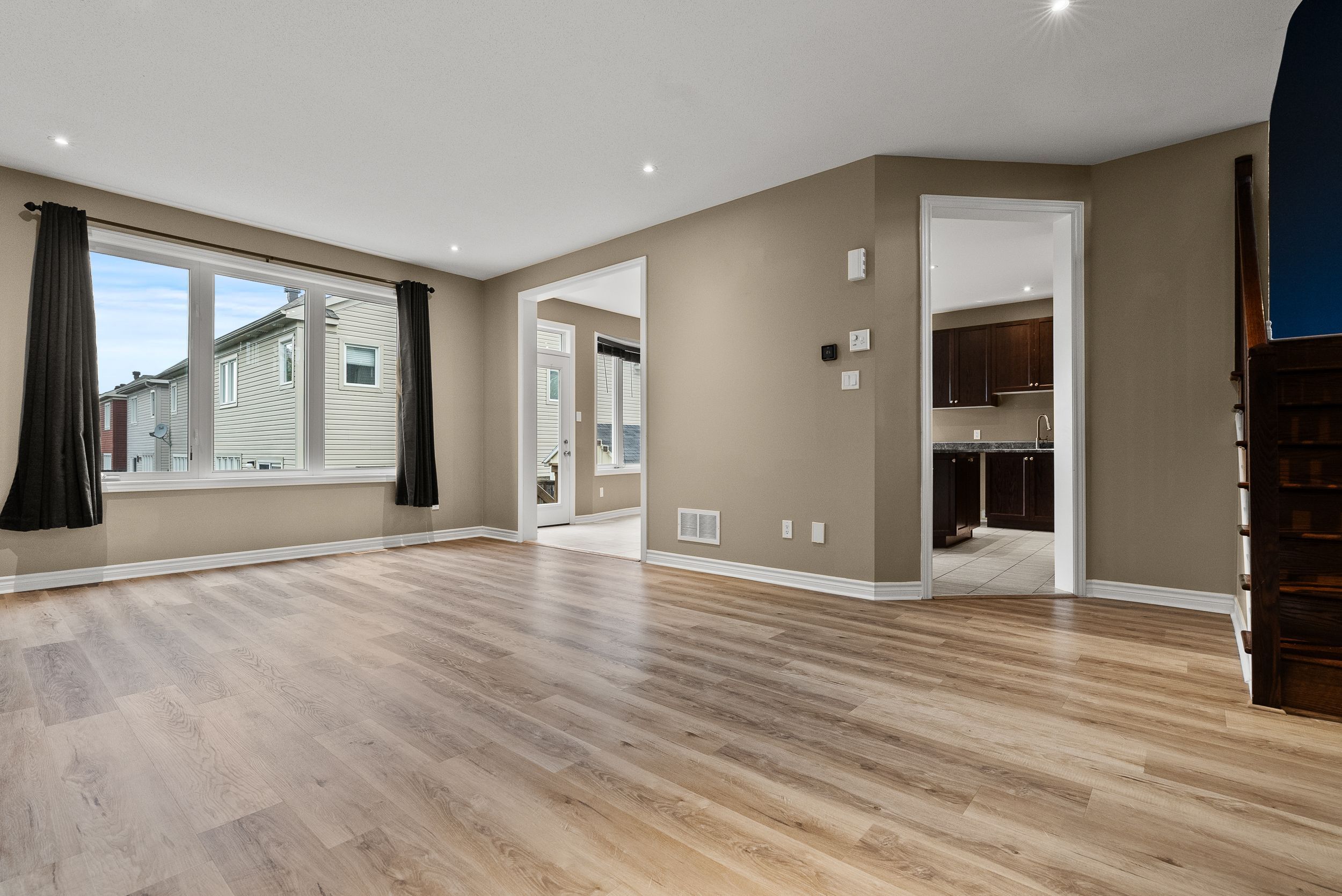 Experience refined living in this stunning mattamy queenbank model, offering a beautifully designed space with exceptional natural light in the heart of stittsville. This 3-bedroom home blends modern elegance with everyday comfort, showcasing sun-filled interiors and sophisticated finishes throughout. The main floor boasts an open-concept layout with expansive windows, durable yet stylish flooring, and elegant hardwood staircases. Take a few steps up to the inviting great room, anchored by a cozy gas fireplace, creates the perfect setting for both intimate evenings and lively gatherings. Upstairs, the primary suite impresses with a spacious walk-in closet and a ensuite, while two additional bedrooms provide comfort and versatility for family or guests. The high-ceiling basement awaits your personal touch, offering endless possibilities for recreation or relaxation. Step out from the kitchen to a deck with space for a barbecue, overlooking a partially fenced backyard, ideal for entertaining or enjoying peaceful moments outdoors. Perfectly situated near top-rated schools, parks, shopping, and all the conveniences of stittsville and kanata, this home combines location, lifestyle, and luxury in one exceptional package.
