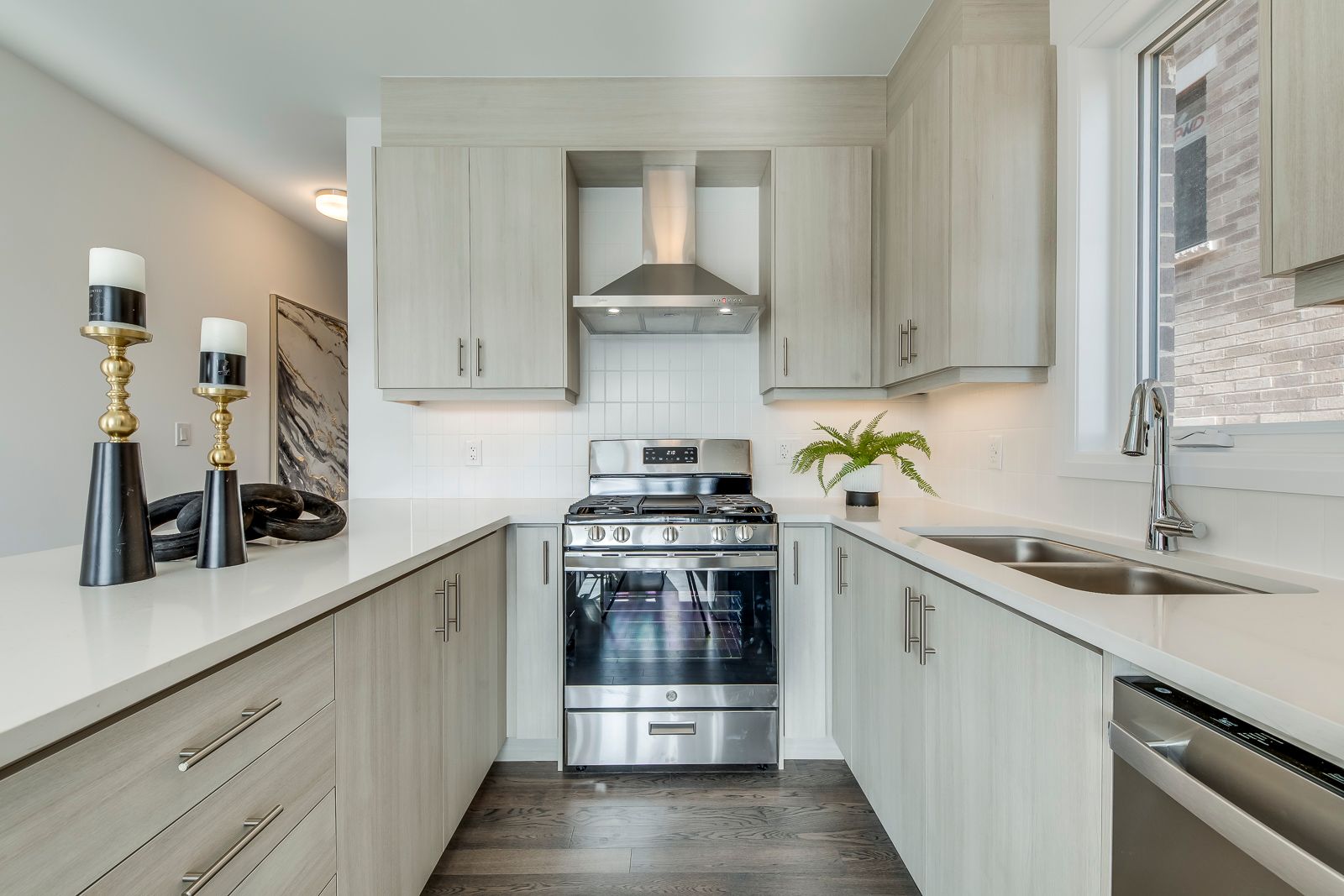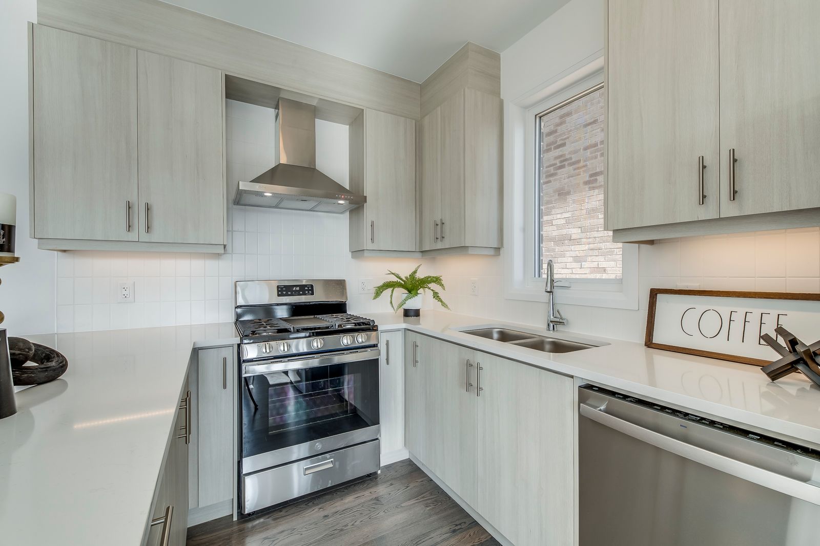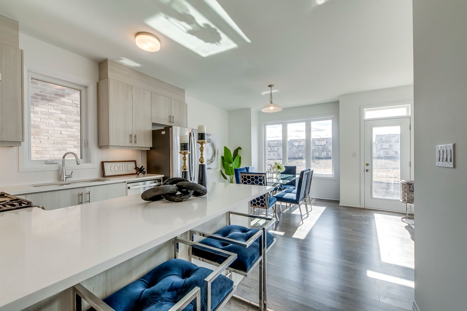 • Modern kitchen with open-concept design and walkout to private backyard.