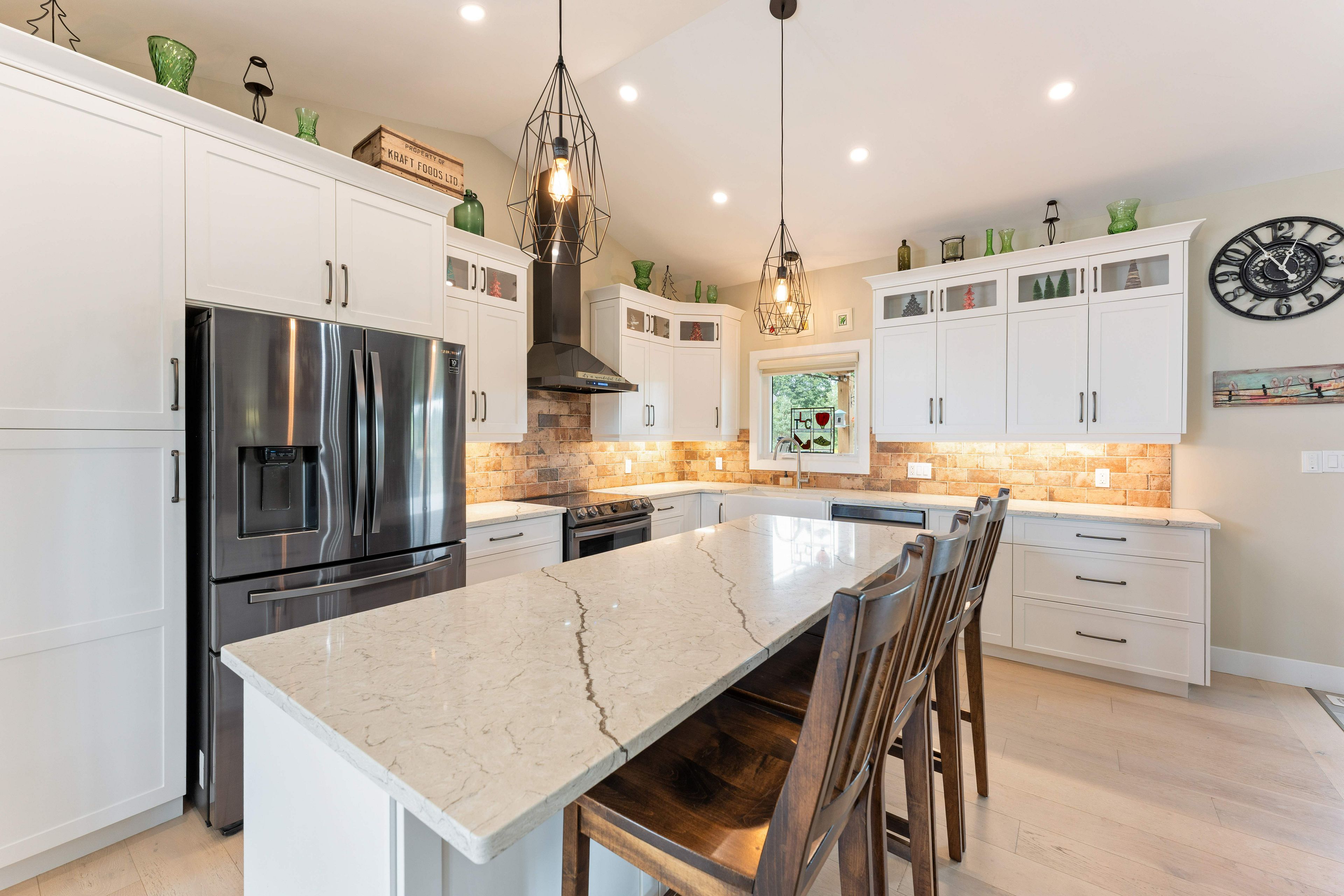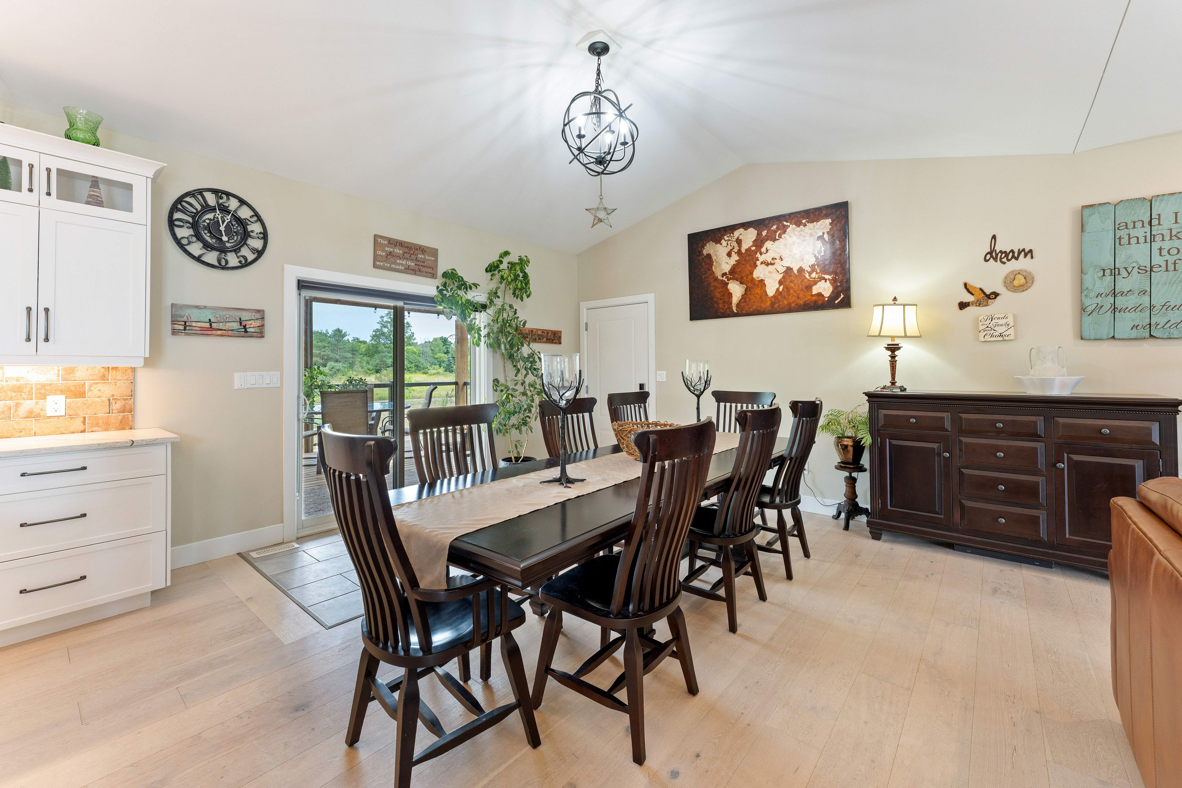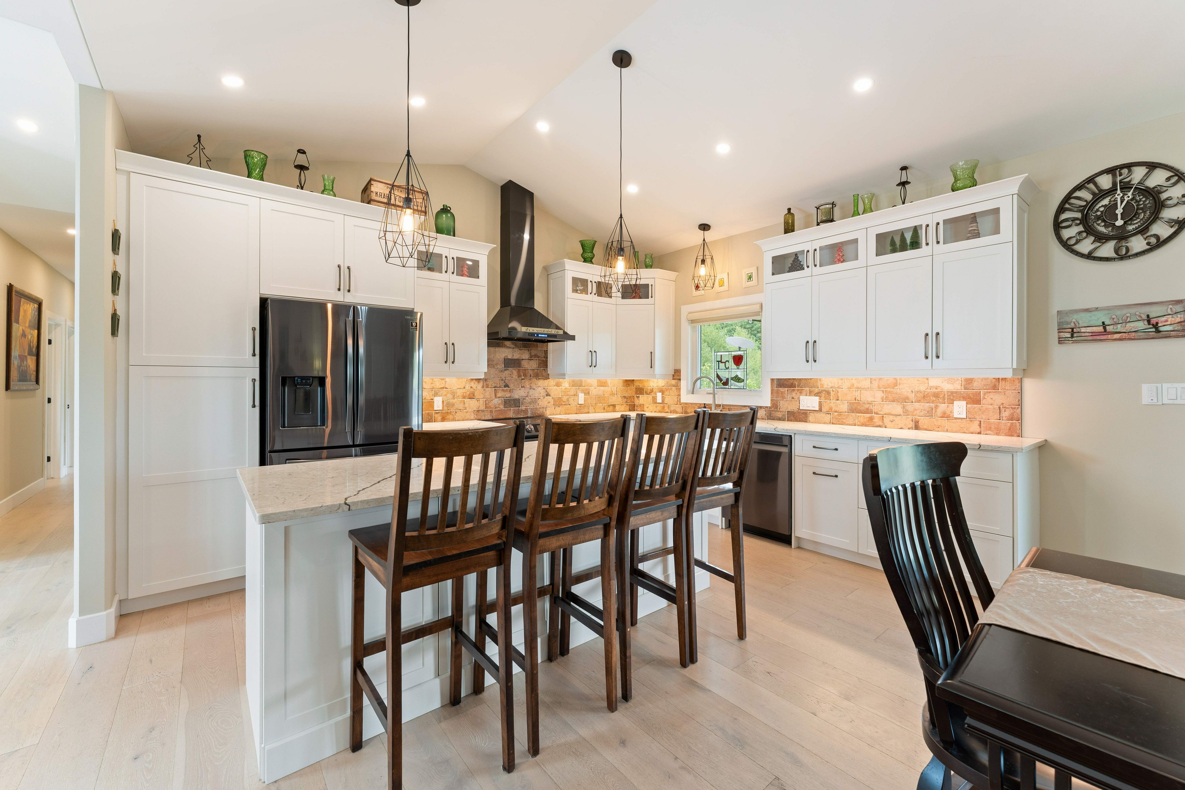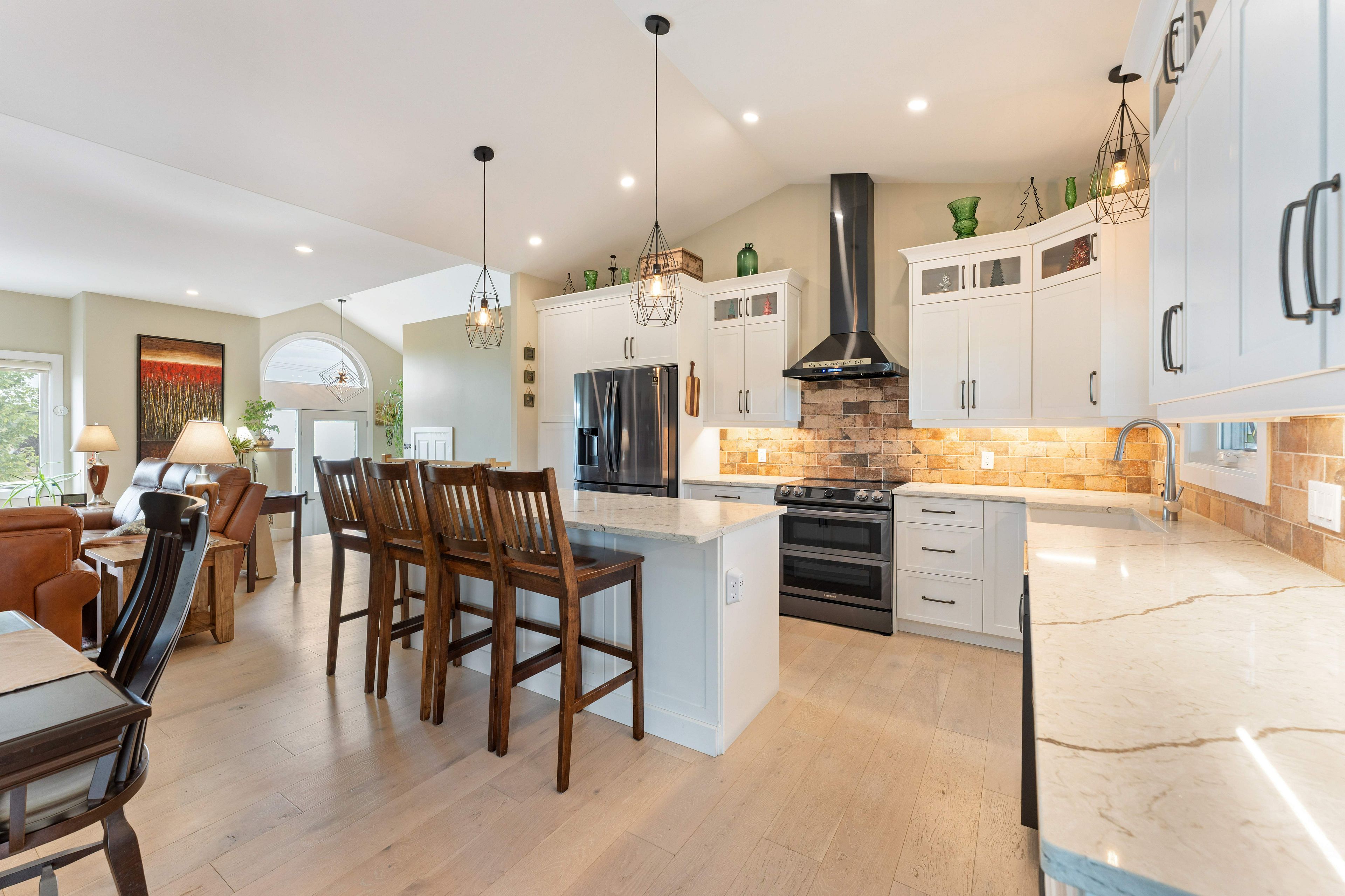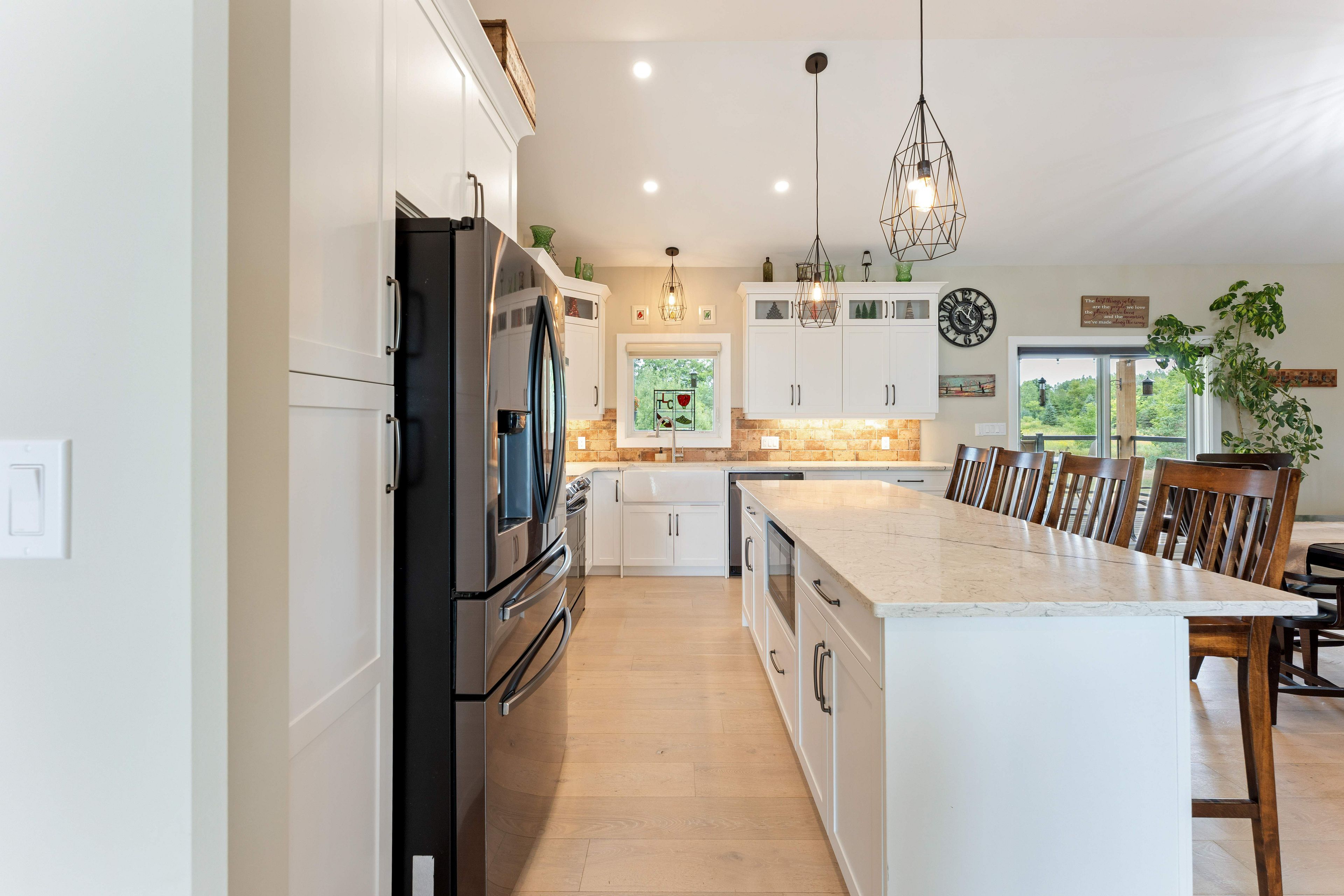 Thoughtfully designed, beautifully maintained, and upgraded throughout, this 5-year-oldbungalow offers a lifestyle as remarkable as its features. From the moment you arrive, the property's presence captivates with 3 acres of professionally landscaped grounds with trees, vibrant gardens, natural stone accents, and a 3-wide paved driveway that gracefully wraps around to the rear garage and patio. Inside, light-filled spaces blend comfort with sophistication. The open-concept main level is anchored by a stunning stone fireplace with a propane insert, creating a warm focal point in the living area. The kitchen showcases stone countertops, stainless steel appliances, and picturesque views of the private backyard. The primary suite is a retreat of its own, featuring a 4-piece ensuite with built-in vanity, walk-in closet, additional closet, and patio doors leading to a stamped-concrete balcony and an expansive 15x64' deck. A 30' section of this outdoor haven is fully covered, featuring a ceiling fan, pot lights, electrical outlets, and bbq hookup - the perfect setting for morning coffee or evening gatherings. Two additional bedrooms and a 4-piece bath complete the main level. The lower level expands the possibilities with a large rec room, spacious bedroom, a separate den/home office, a 3piece bathroom, generous storage, a walk-out to the yard, and direct access to the lower garage. This two-level heated garage with six bays finished in epoxy provides endless options for a home workshop, car collection, or recreational toys. A dedicated backyard bar room, with a wet bar, epoxy flooring and a roll-up glass garage door opens to the patio below the deck, offering a distinctive venue for year-round entertaining. A 20kw generac generator ensures peace of mind in all seasons. Positioned between harrowsmith and sydenham, this home combines the tranquility of rural living with access to local amenities and only 20 minutes to kingston.