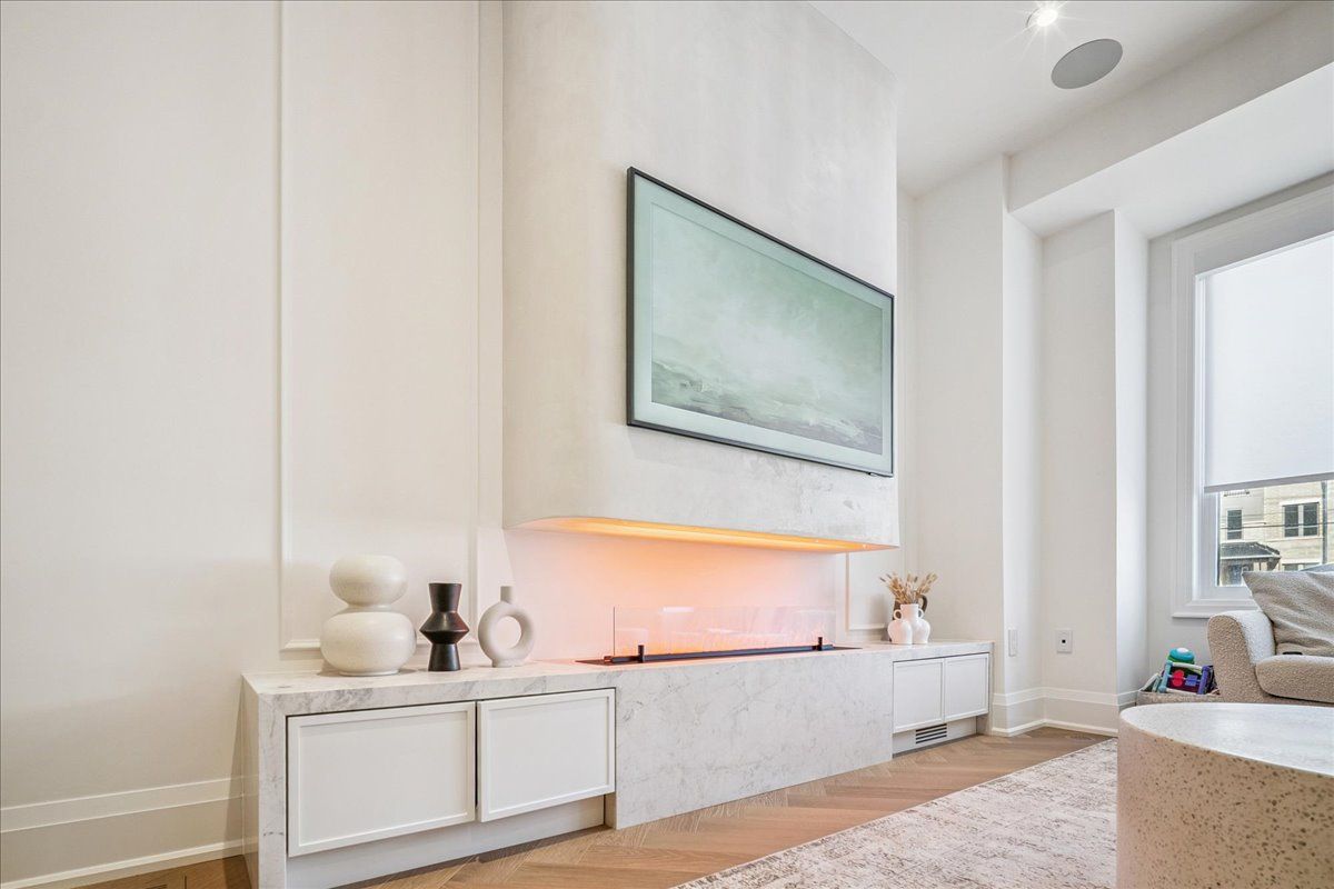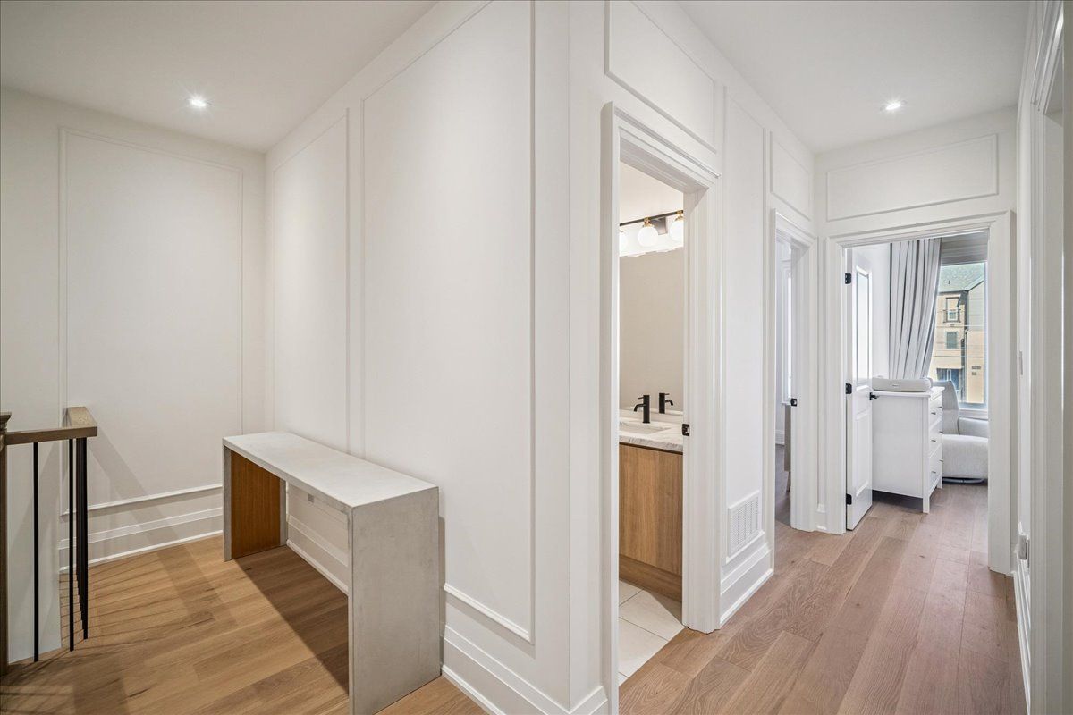 Magazine-worthy showstopper! Freehold townhome offering designer finishes and exceptional craftsmanship throughout. Beautifully customized home with a bright open-concept floor plan. Wide plank herringbone "wheat berry" hardwood flooring, 7-inch baseboards, built-in speakers, and a sleek micro-cement feature fireplace & range hood anchor the living space. Powder room features a "calacutta viola" vanity, adding a refined boutique-hotel feel throughout. The chef-inspired kitchen is a centrepiece, complete with luxurious "taj mahal" counters, oversized island w/ breakfast bar, dacor refrigerator, upgraded appliances, custom cabinetry, & designer hardware - perfect for both style and function. Upstairs, retreat to a spa-inspired custom ensuite finished with elegant "matarrazzo" stone, double vanity, freestanding soaker tub, and an oversized glass shower with dual rain heads. Convenient 2nd floor laundry - all bedrooms are generously sized for family living. The den makes a perfect office to work from home. Additional highlights include a multi-zone built-in speaker system (living room, kitchen, and primary ensuite), a security system with cameras, & thoughtfully curated lighting and finishes throughout. Finished basement w/ 2 pc washroom & 4 car parking (double garage and driveway) complete this stunning home. Minutes to top-rated oakville schools, oakville trafalgar memorial hospital, shopping plazas, restaurants, and everyday conveniences - with easy access to the 407 etr, qew, and go transit for commuters. One-of-a-kind. A rare opportunity to own a fully upgraded turnkey townhome where no detail has been overlooked.
