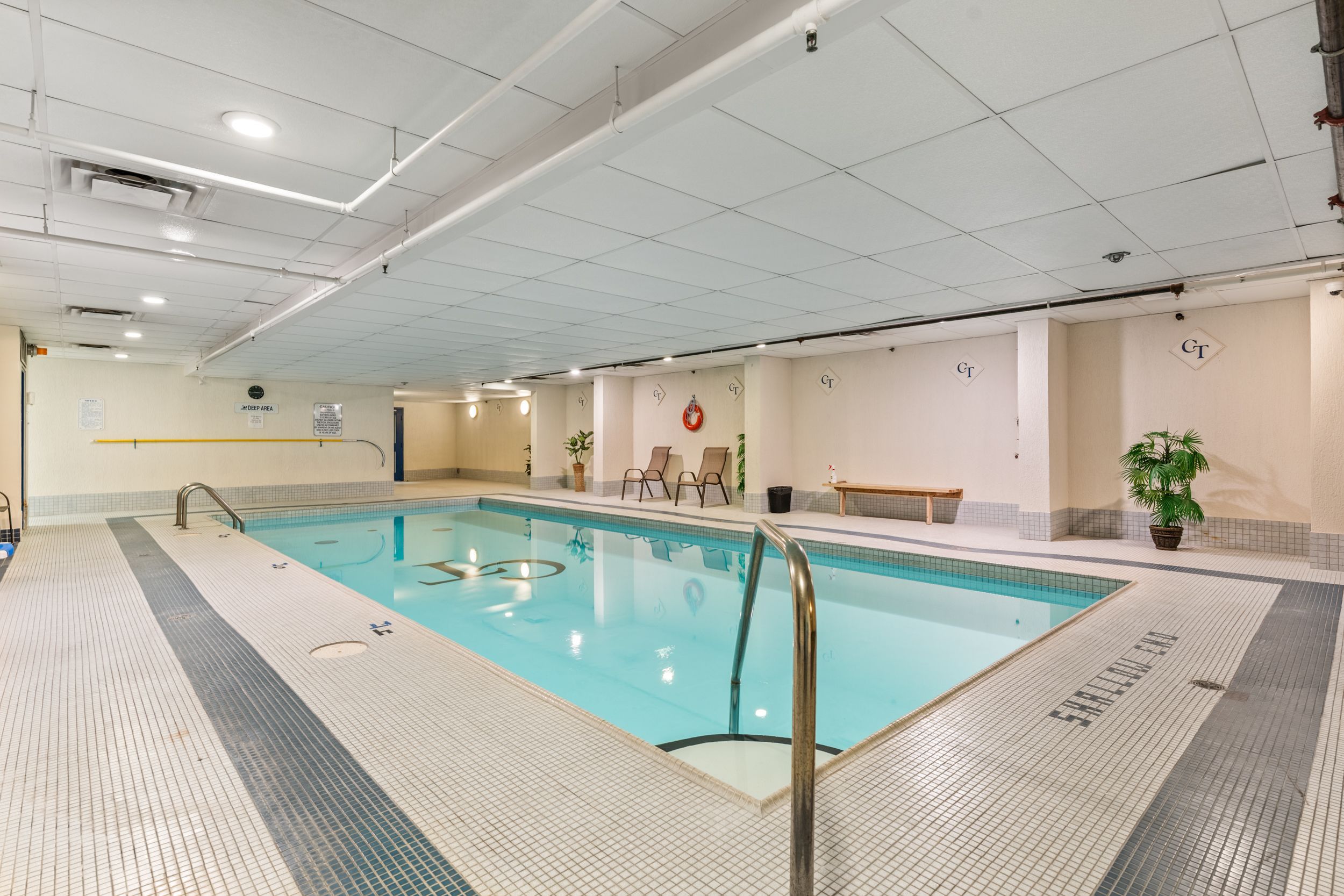• Building amenities include indoor pool, gym, and party room for entertainment.