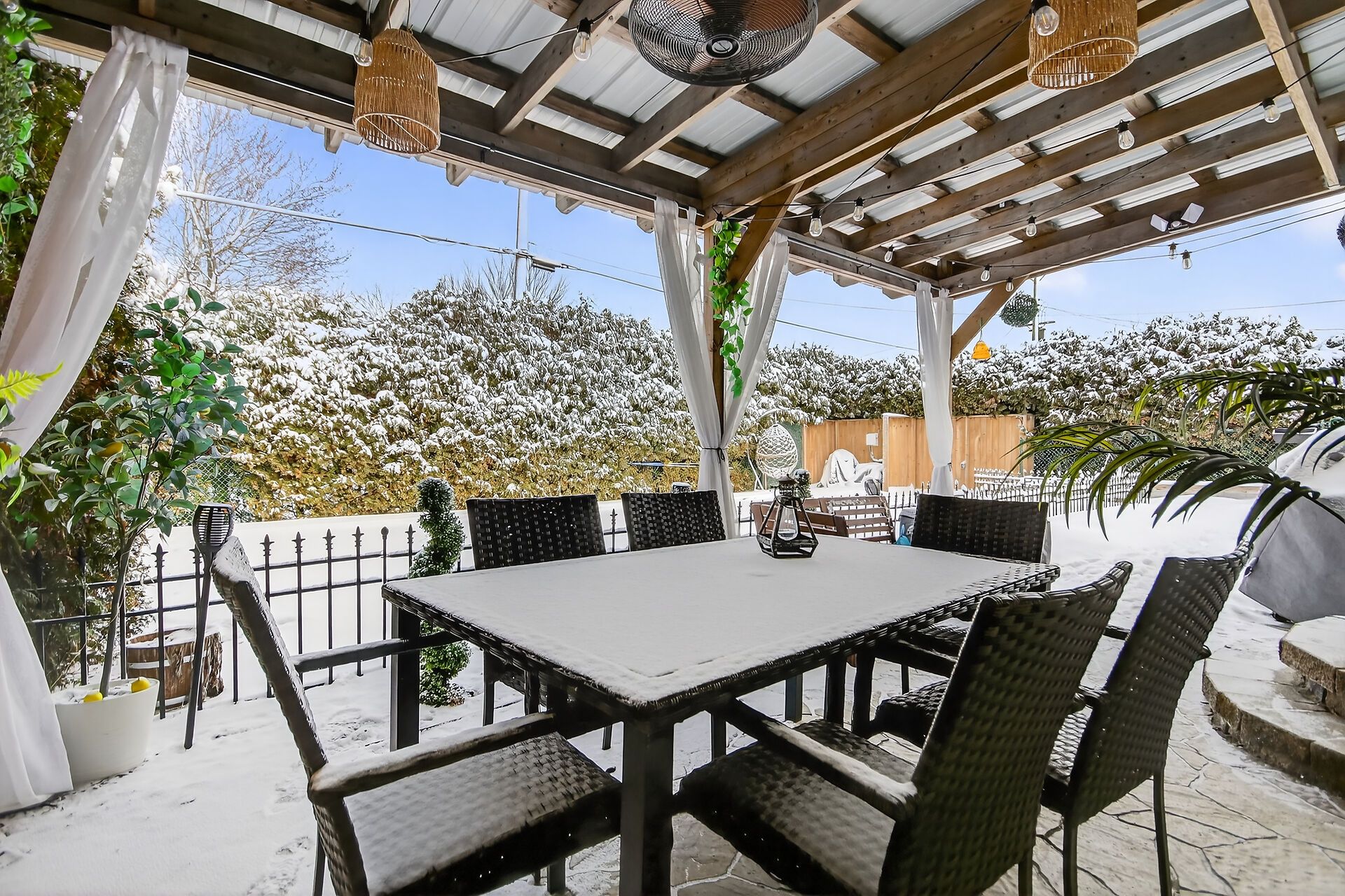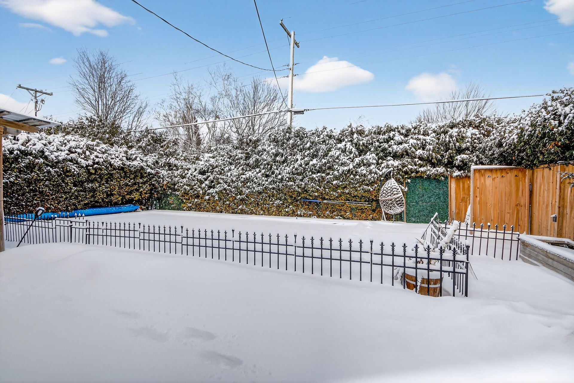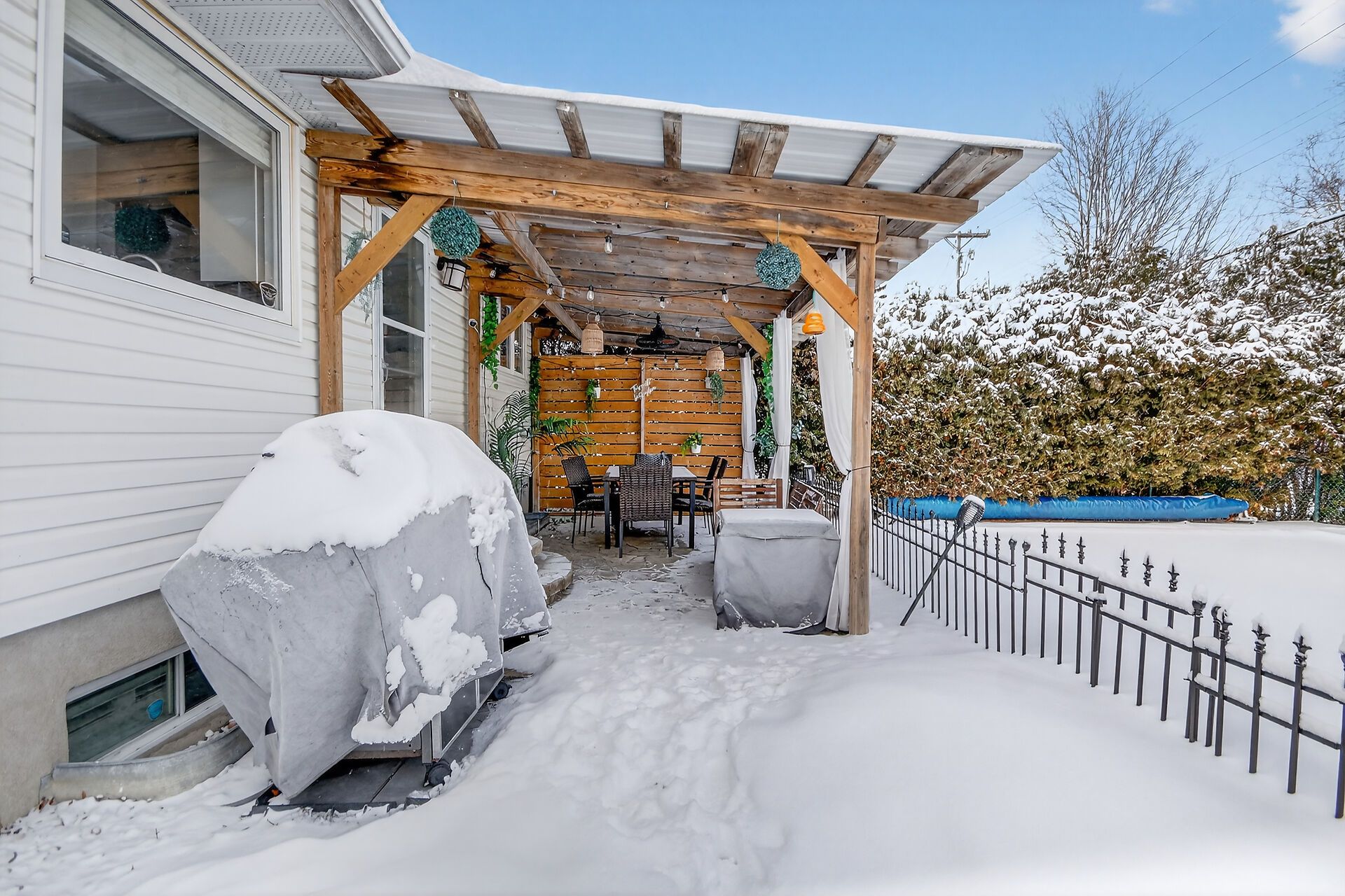• Private backyard oasis with a saltwater pool and gazebo for summer relaxation.