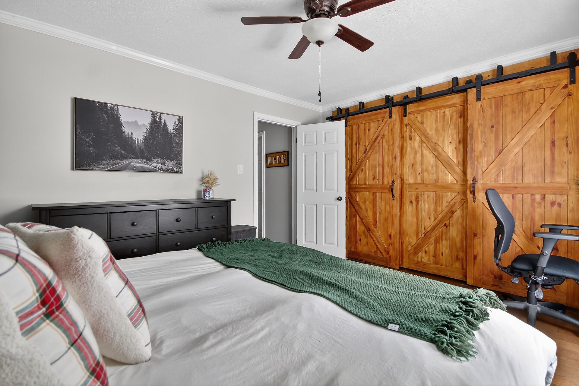 • Modern kitchen with quartz countertops and stainless steel appliances for easy entertaining.