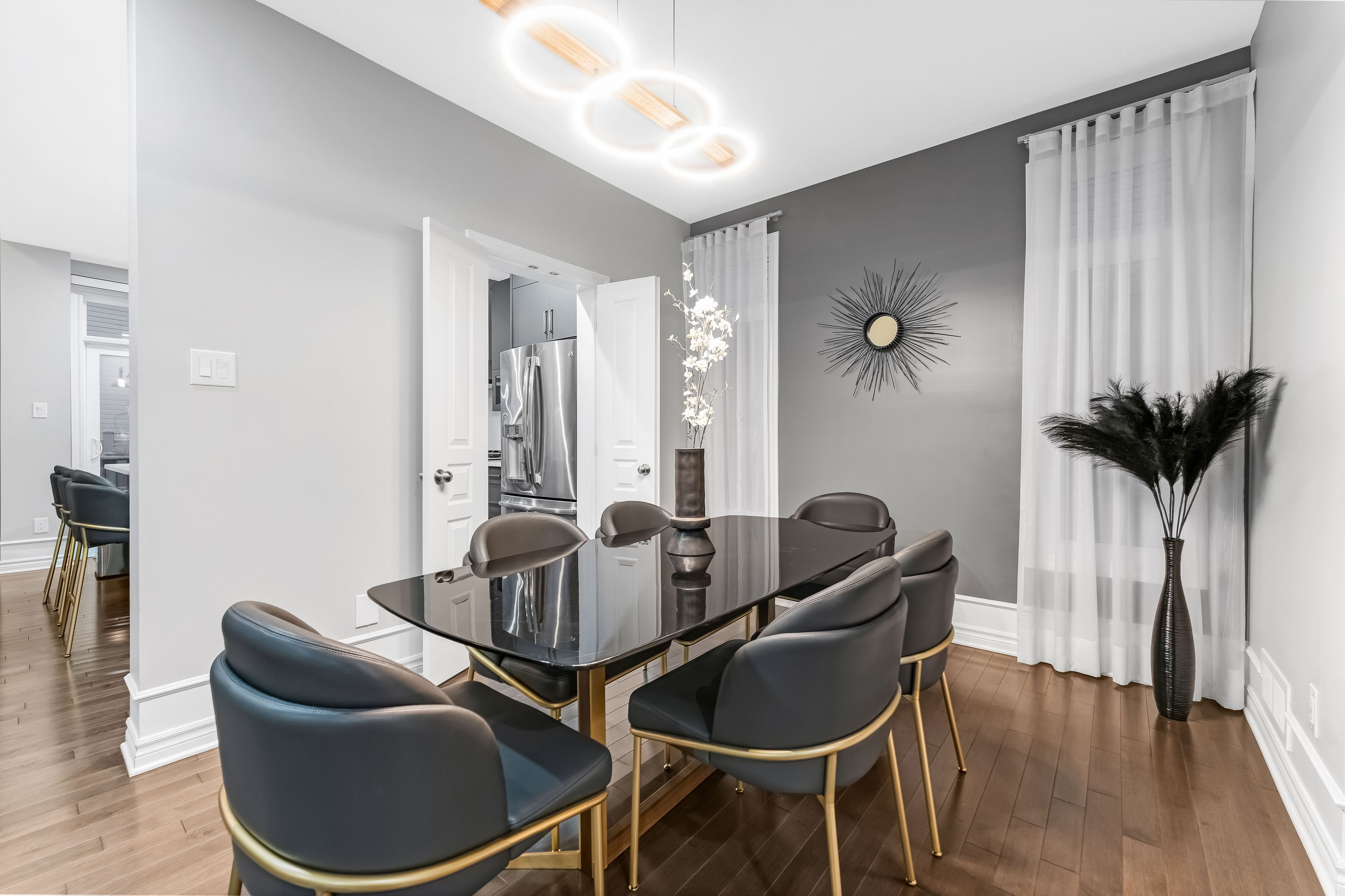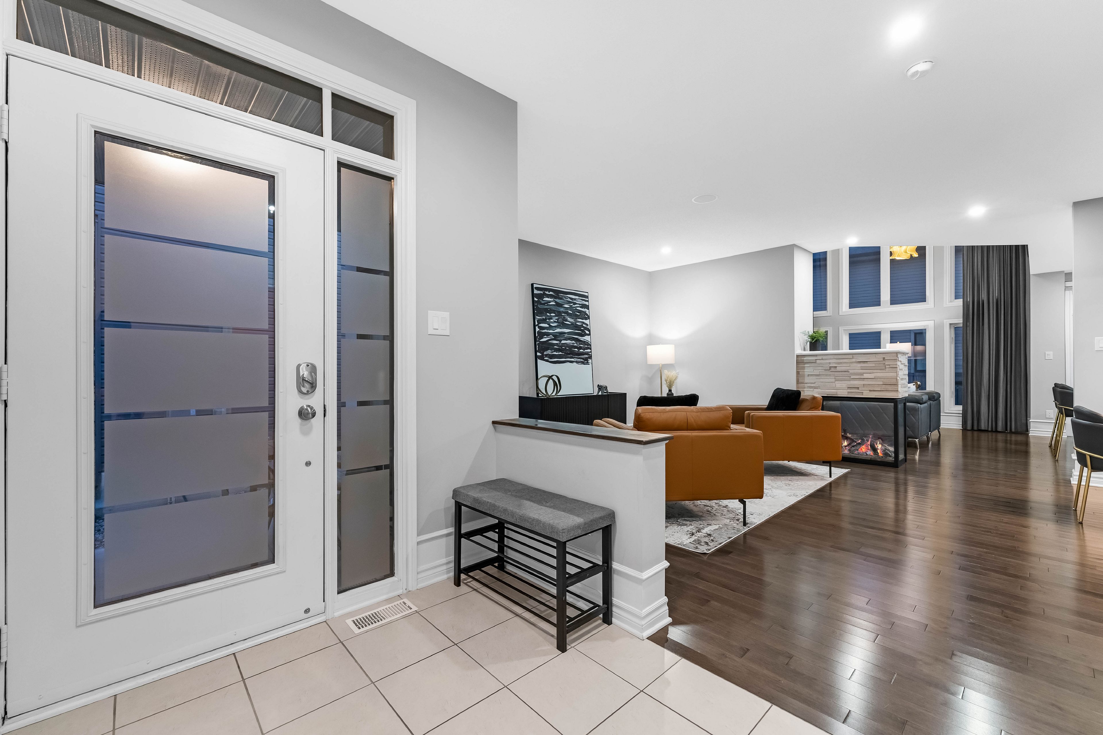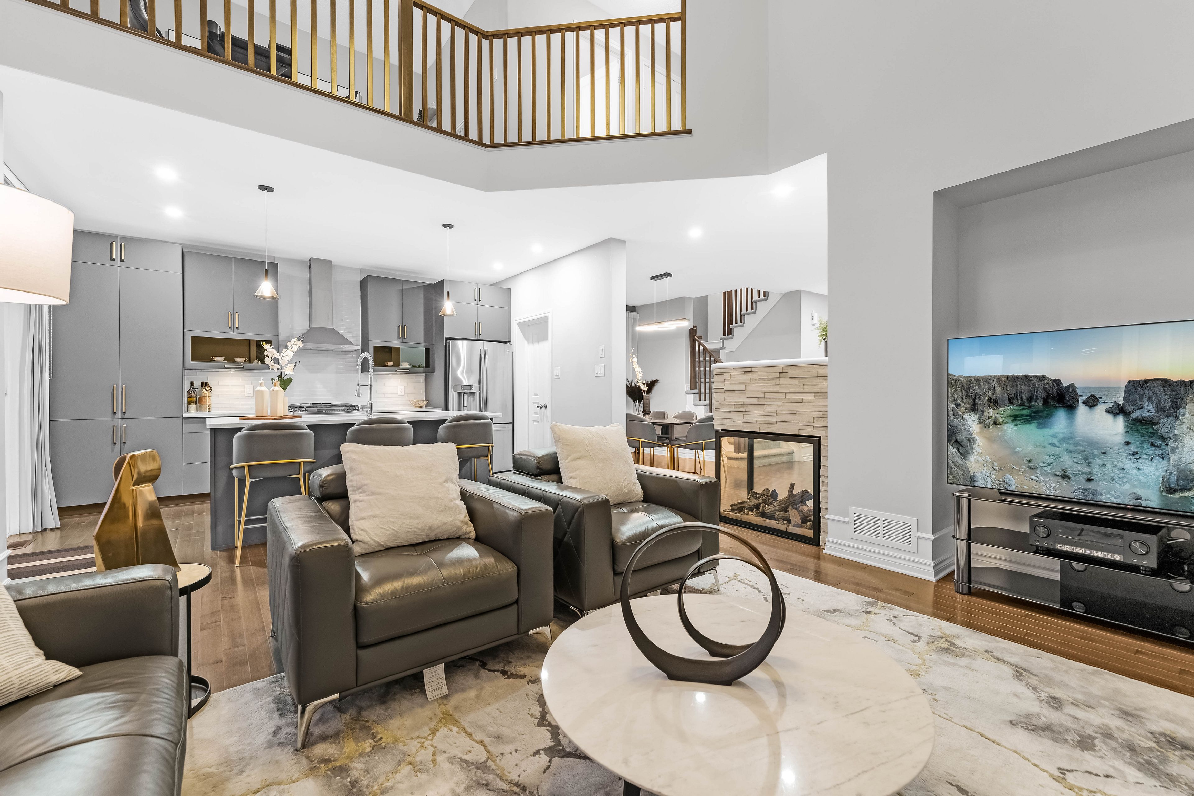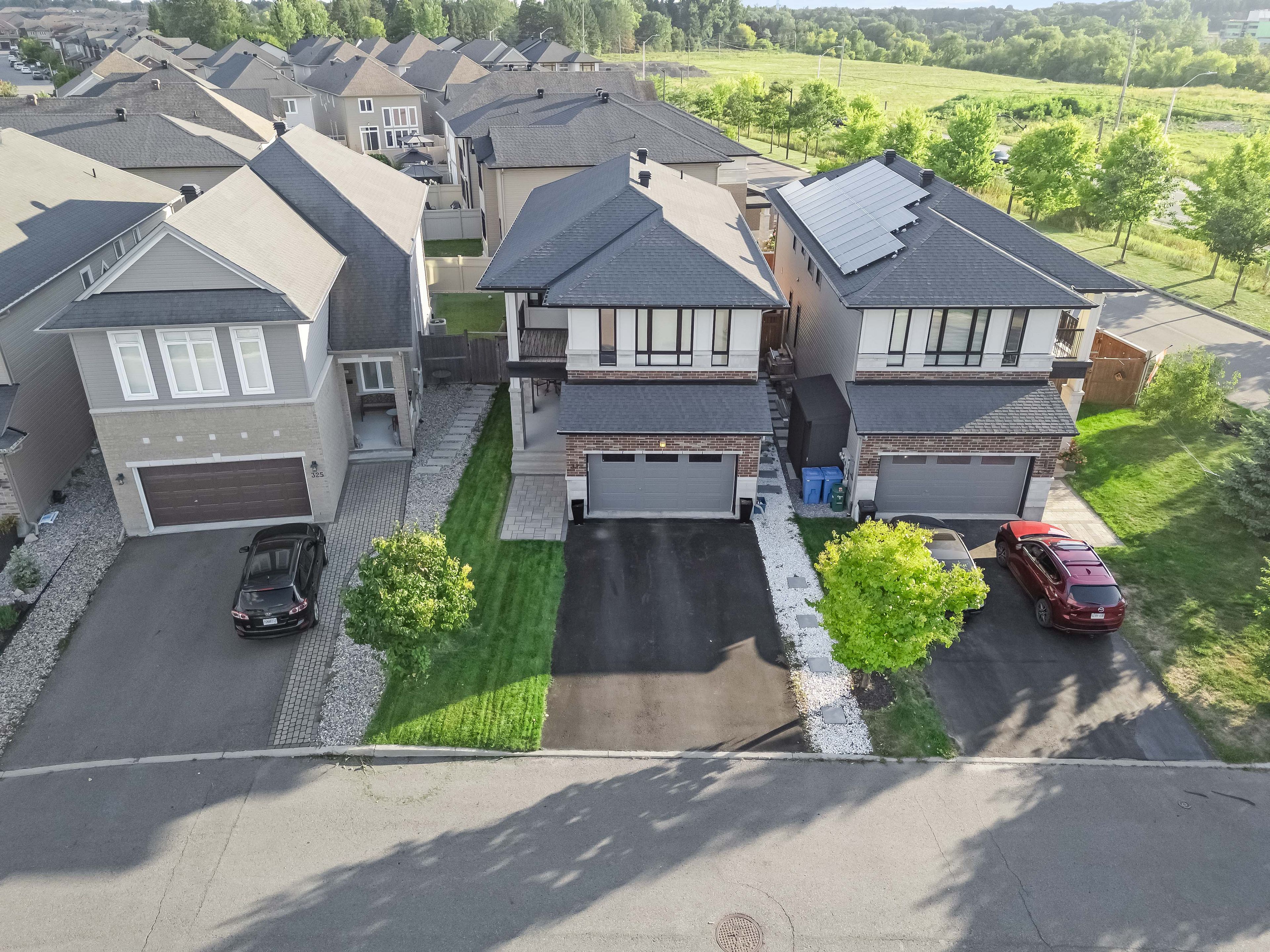 Exquisite sapphire ii by urbandale corporation, a luxury upgraded home that blends modern design, comfort, and functionality. This executive 3 bed + loft (convertible to 4th) + 4 bath residence has been extensively upgraded and is presented in true turnkey condition. The main floor impresses immediately with cathedral ceilings and soaring multi level windows that flood the space with natural light. A sleek three sided gas fireplace anchors the open concept layout, while gorgeous maple hardwood floors extend throughout. The custom chef's kitchen is a showpiece with premium cabinetry, quartz counters, designer fixtures, stainless steel appliances, and a gas range, perfect for cooking and entertaining. The second level features an oversized primary retreat complete with a private balcony wired with outdoor speakers, a large walk in closet, and a spa inspired ensuite. This luxury bathroom offers a freestanding tub, glass enclosed shower, dual vanities, and elegant modern finishes. Two additional bedrooms, a bright loft perched over the great room, and a convenient upper level laundry room complete this floor. The fully finished lower level is an entertainer's retreat with a custom wet bar, wine fridge, and upscale full bathroom with a glass shower and contemporary tile. Ideal for gatherings or family movie nights, this versatile basement adds valuable living space. Exterior highlights include professional landscaping, a fully fenced backyard, and a custom deck perfect for outdoor dining and relaxation. The front elevation delivers striking curb appeal, showcasing urbandale's signature architecture. Located in prestigious riverside south, one of ottawa's fastest growing communities. Steps to top rated schools, parks, trails, shopping, and transit. The exciting new riverside south square development is underway, bringing additional retail, dining, and lifestyle amenities to your doorstep. A rare opportunity to own one of urbandale's most sought after models.