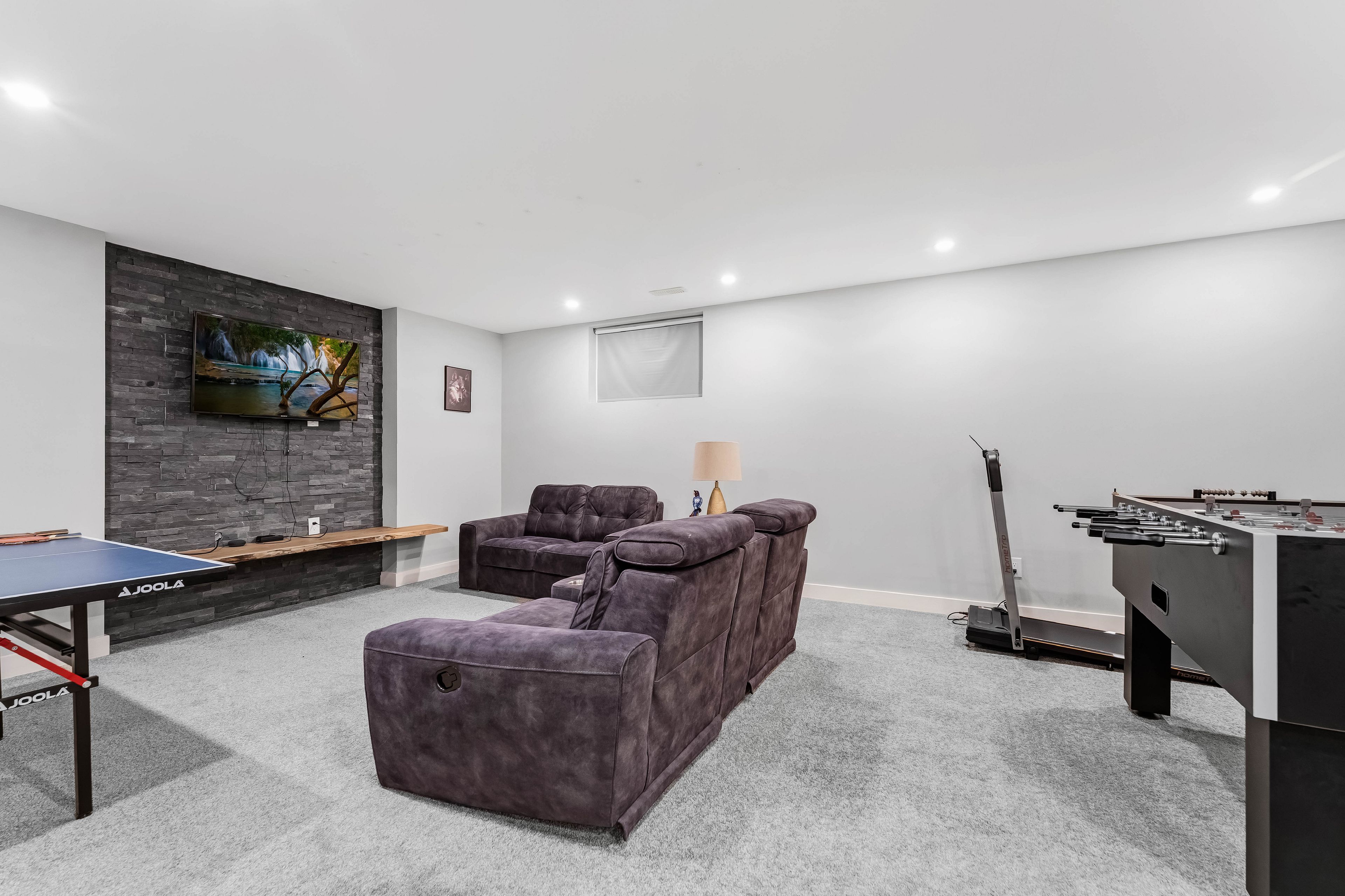 • Fully finished lower level with wet bar, wine fridge, and upscale bathroom.