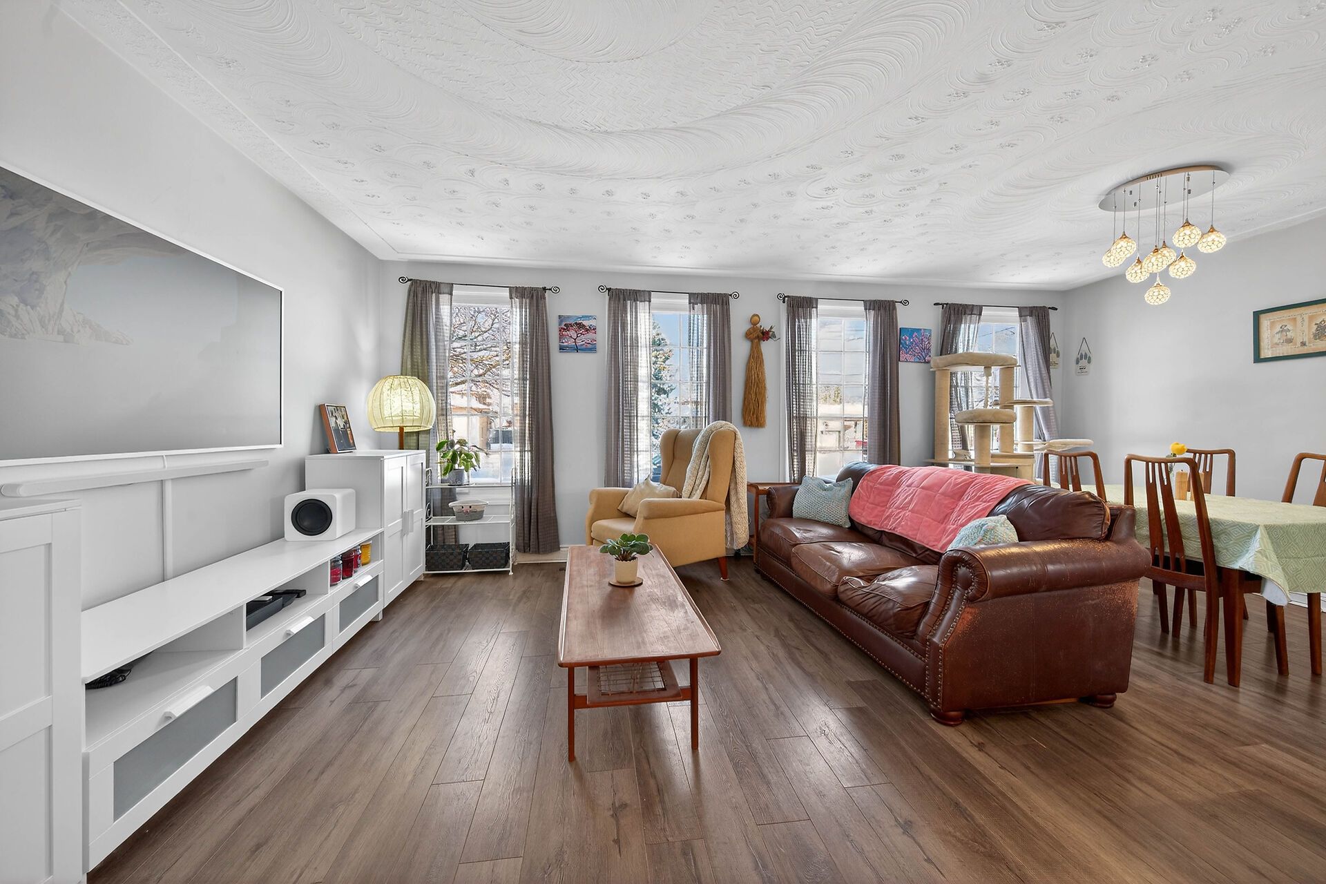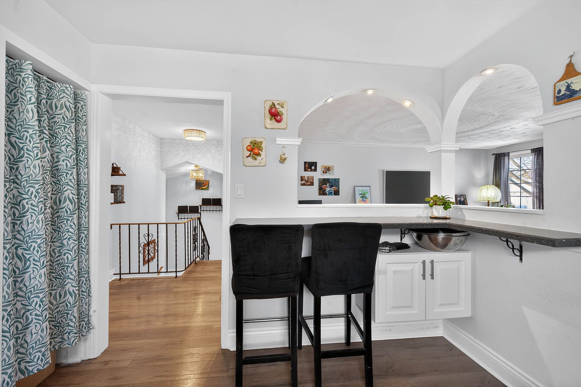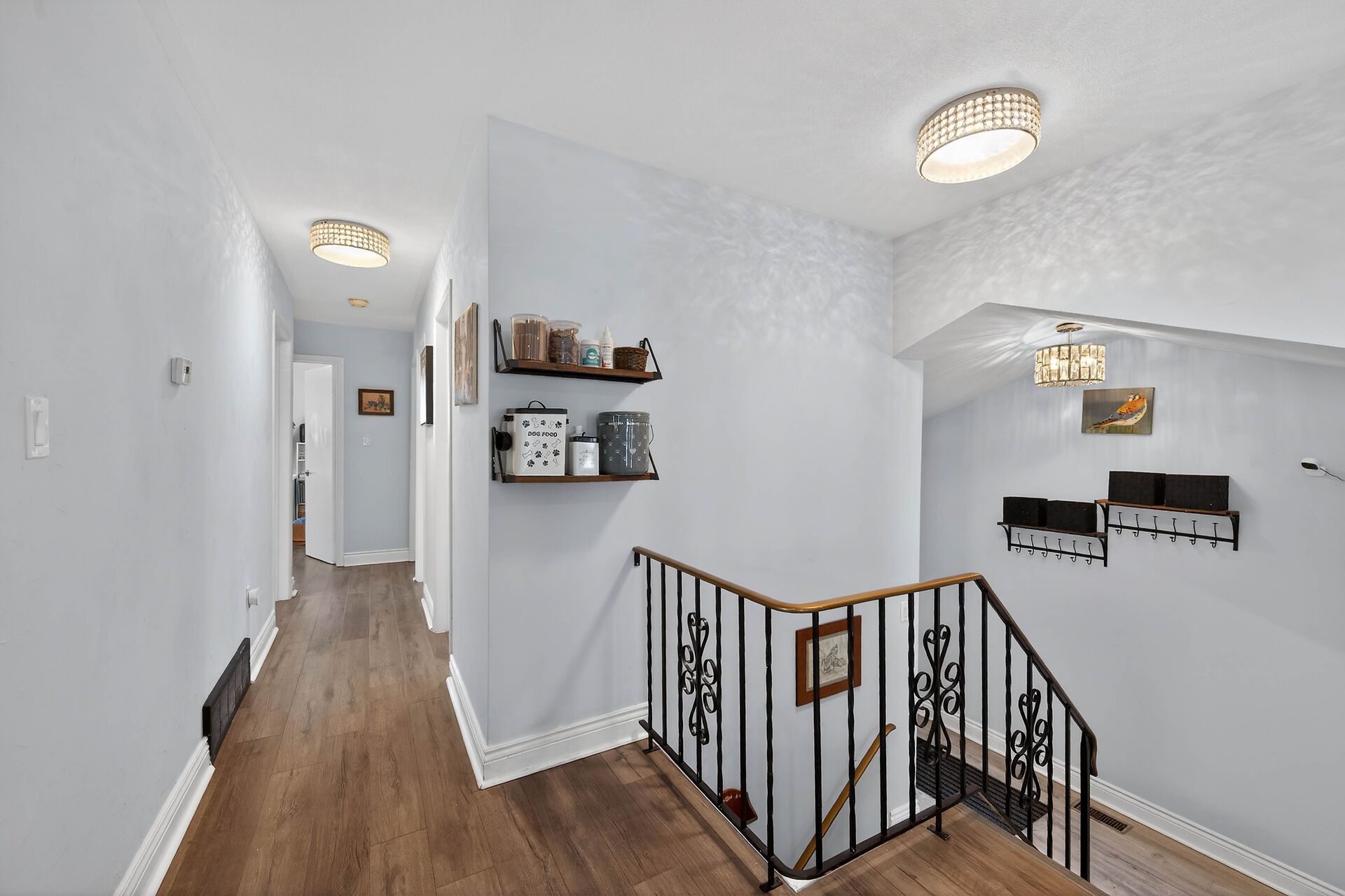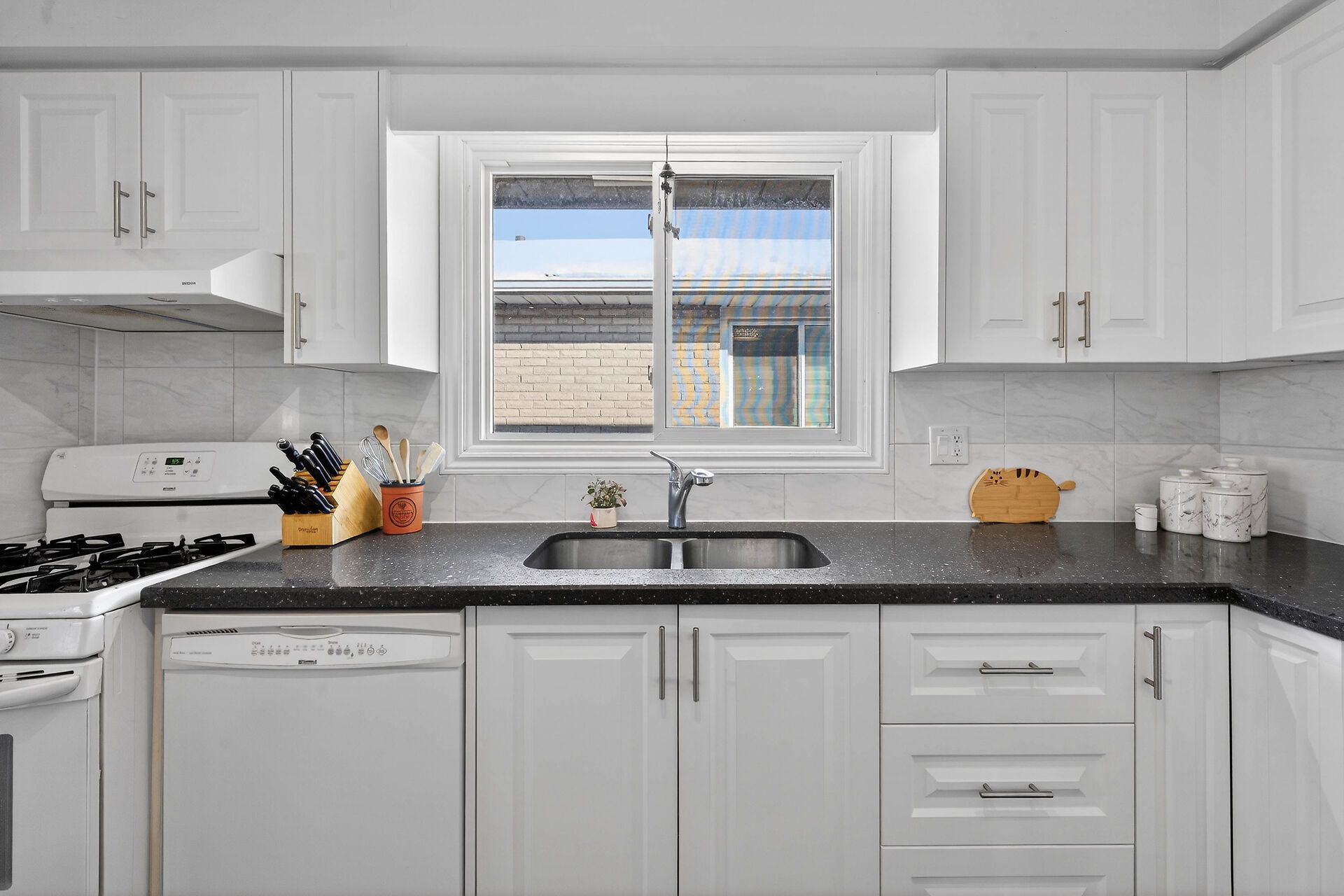 Spacious raised bungalow attached at the entrance foyer only! Bright and cheery. 3+1 bedrooms, 2 full baths. Jacuzzi tub on the upper level and a walk-in bathtub in the basement. Laminate flooring throughout the main floor, backsplash and quartz countertop in kitchen; c/air(2023); on demand tankless hot water heater (2023) is a rental. The basement could be in-law or teenager's quarters, with a separate entrance from the garage. Garage is currently being used as a separate mud room and can easily be converted back to a single car garage. Home located in a friendly neighborhood,close to all schools, parks, shopping, and public transit, with easy access to the highway.