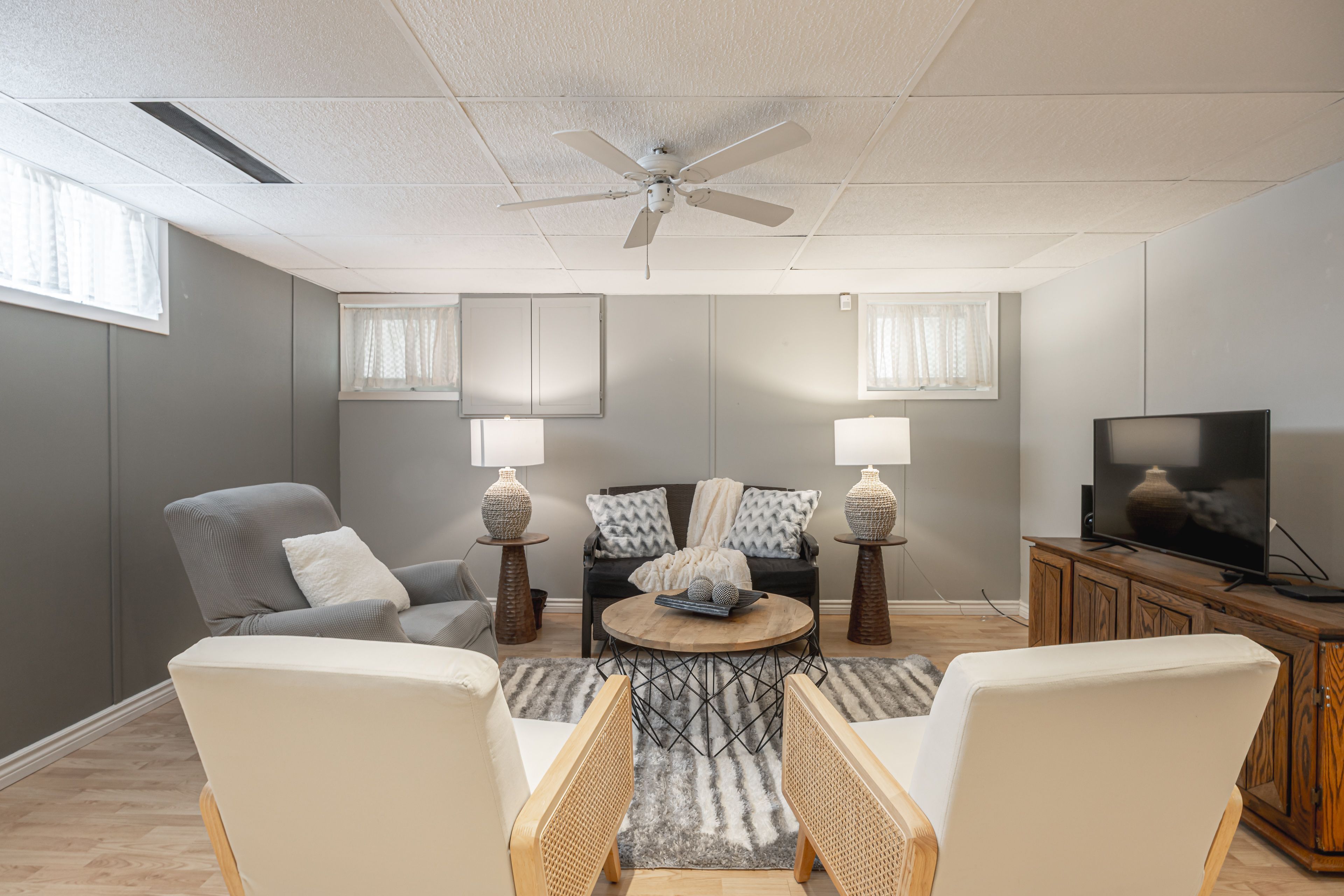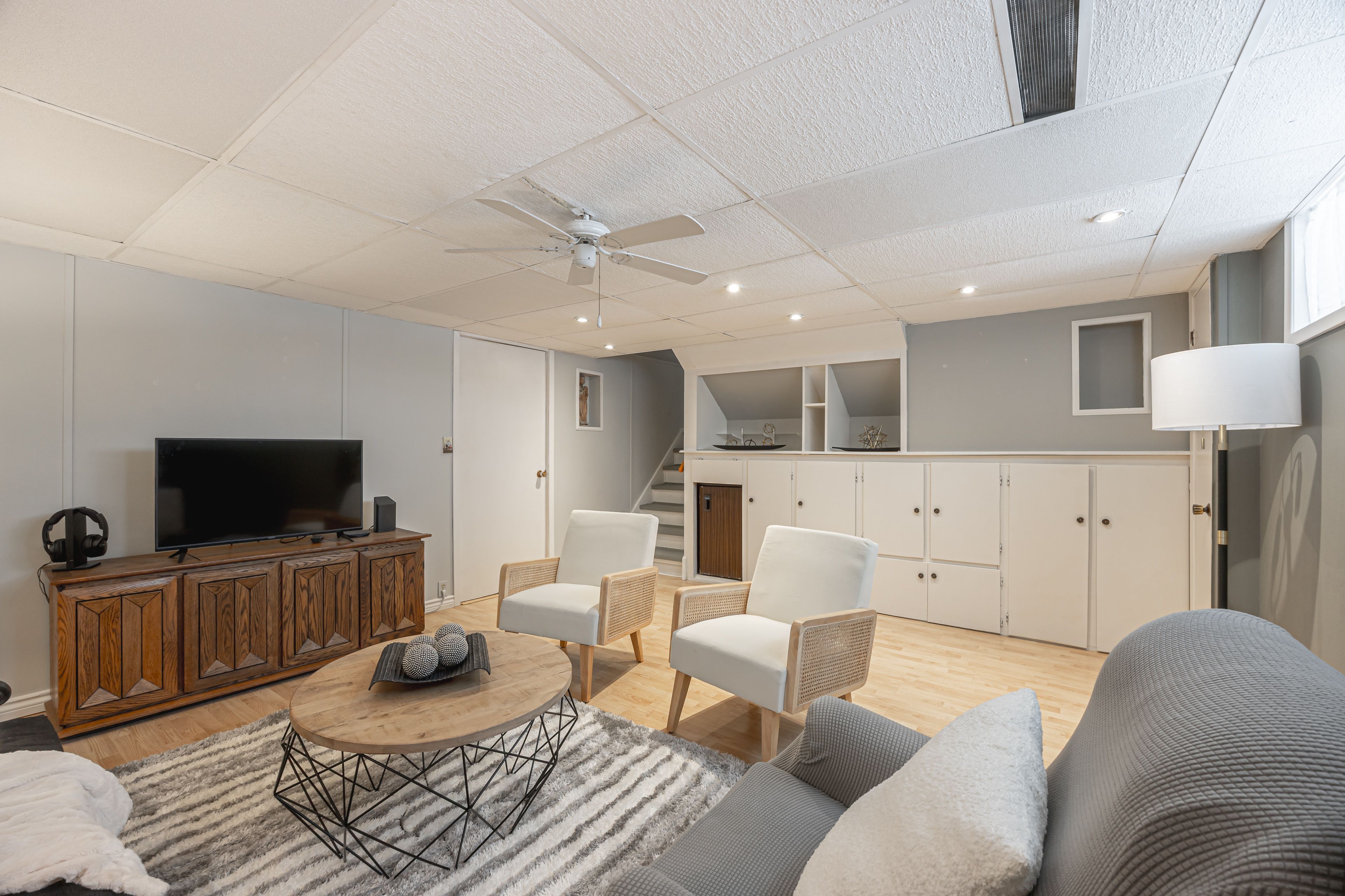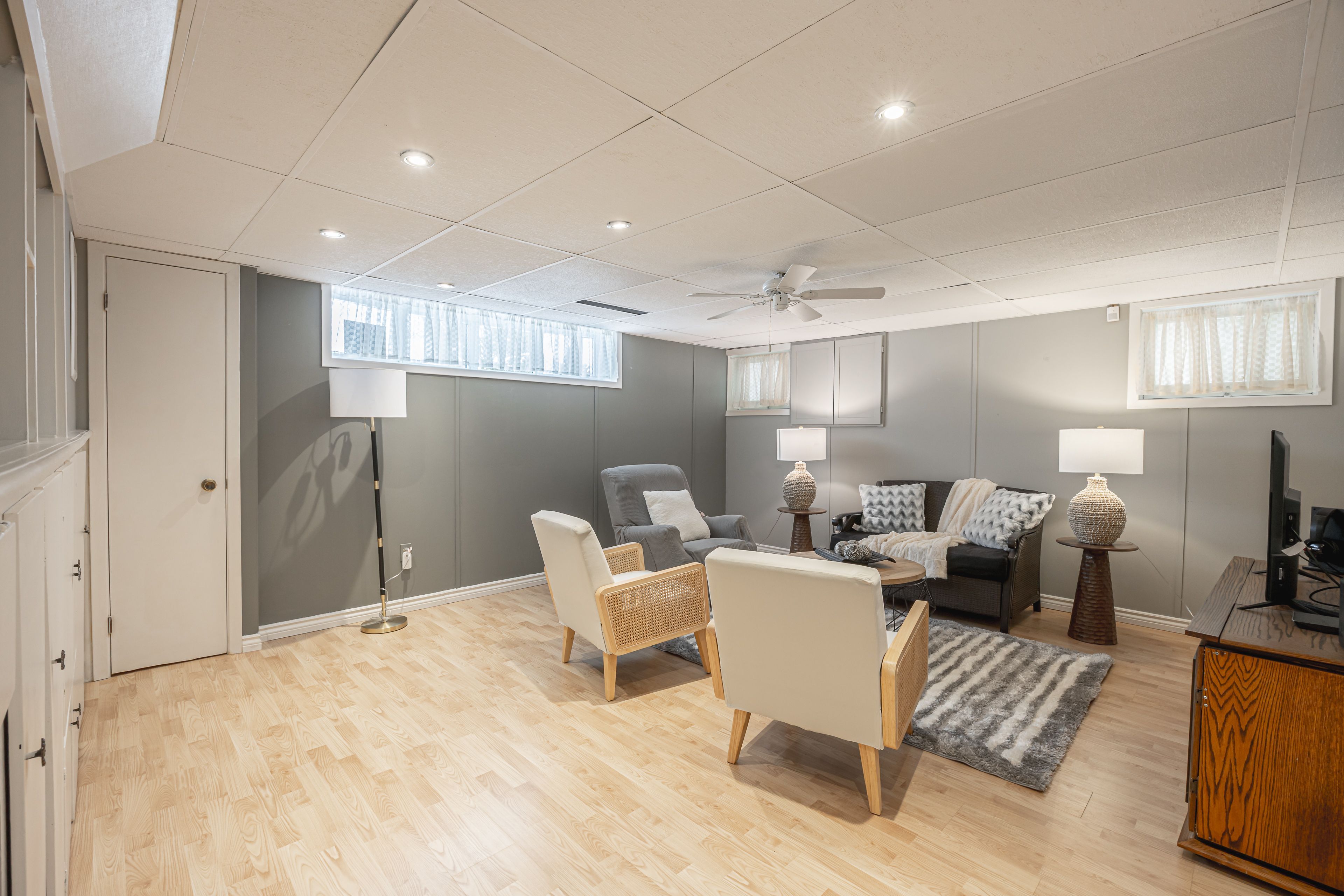 • Finished lower level rec room perfect for family game nights.