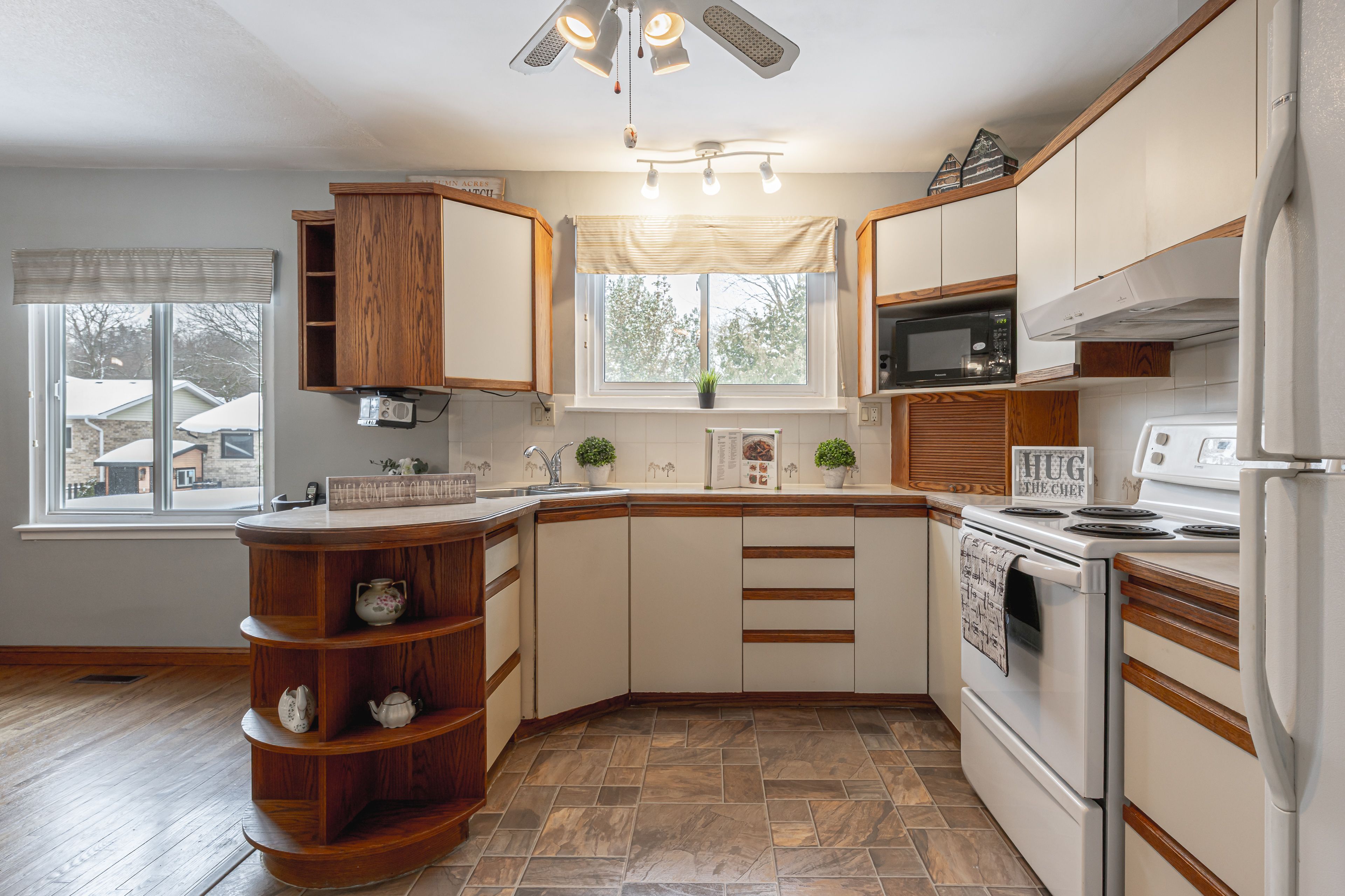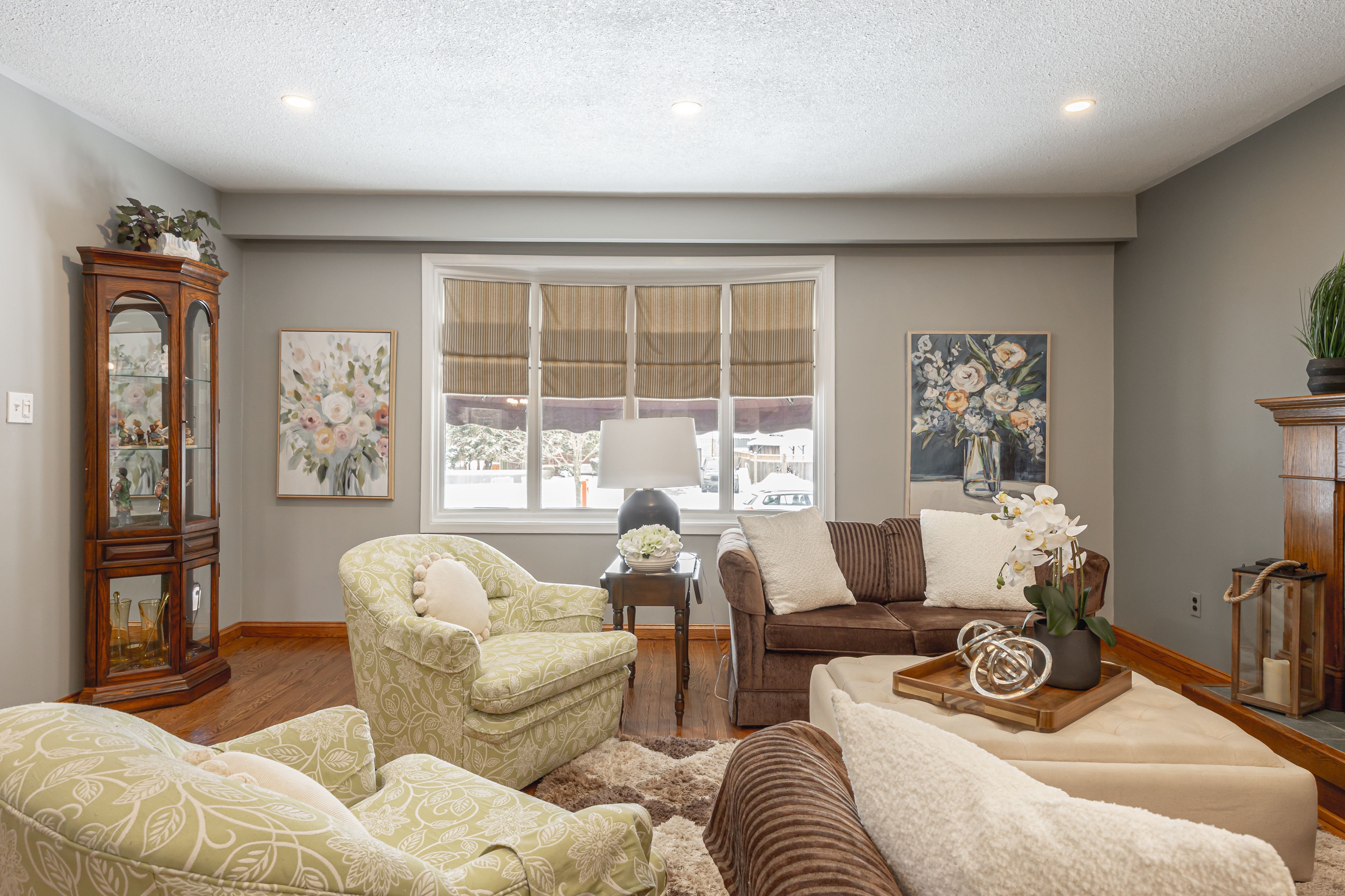 • Open main floor with hardwood floors and cozy gas fireplace.