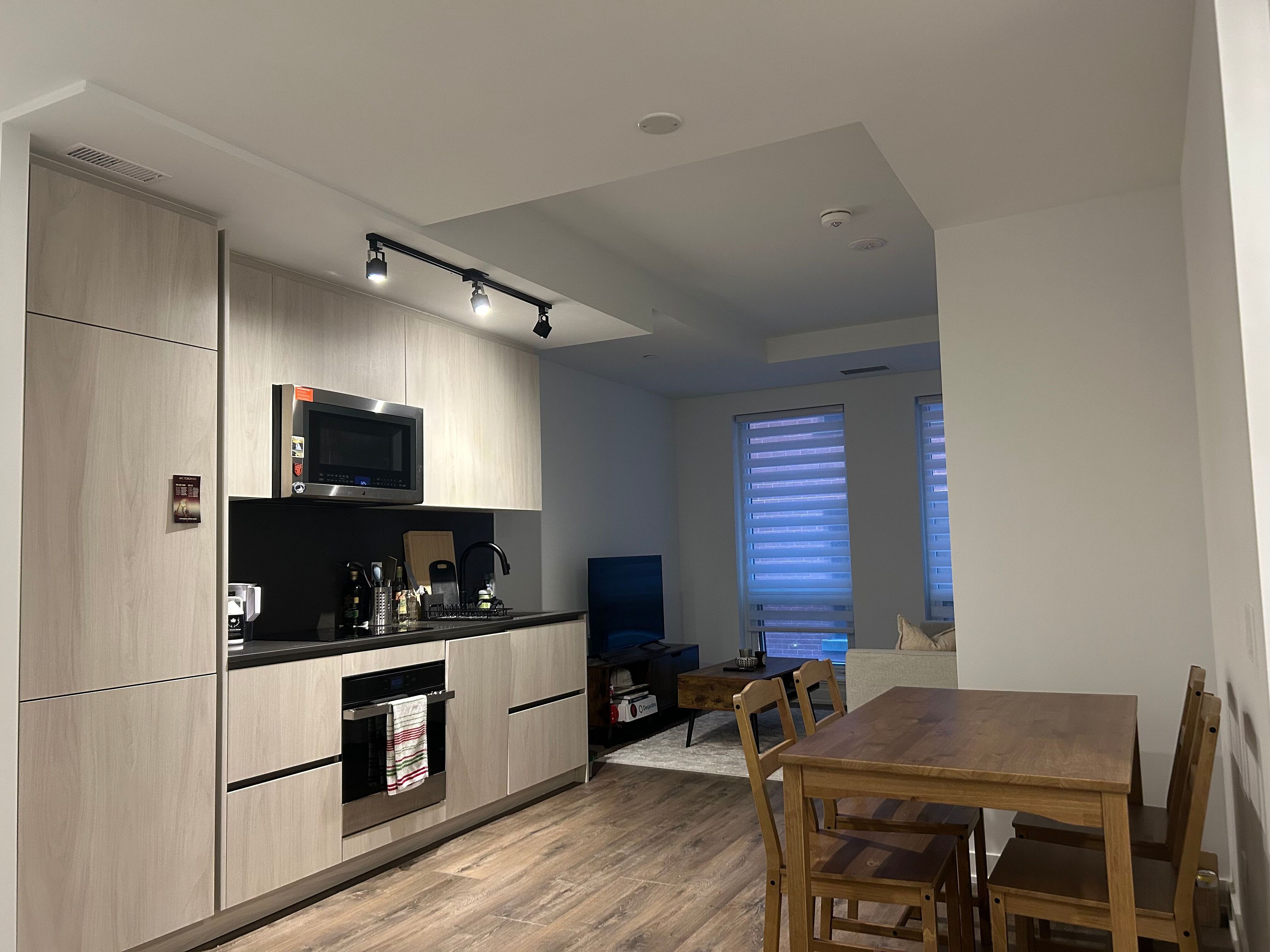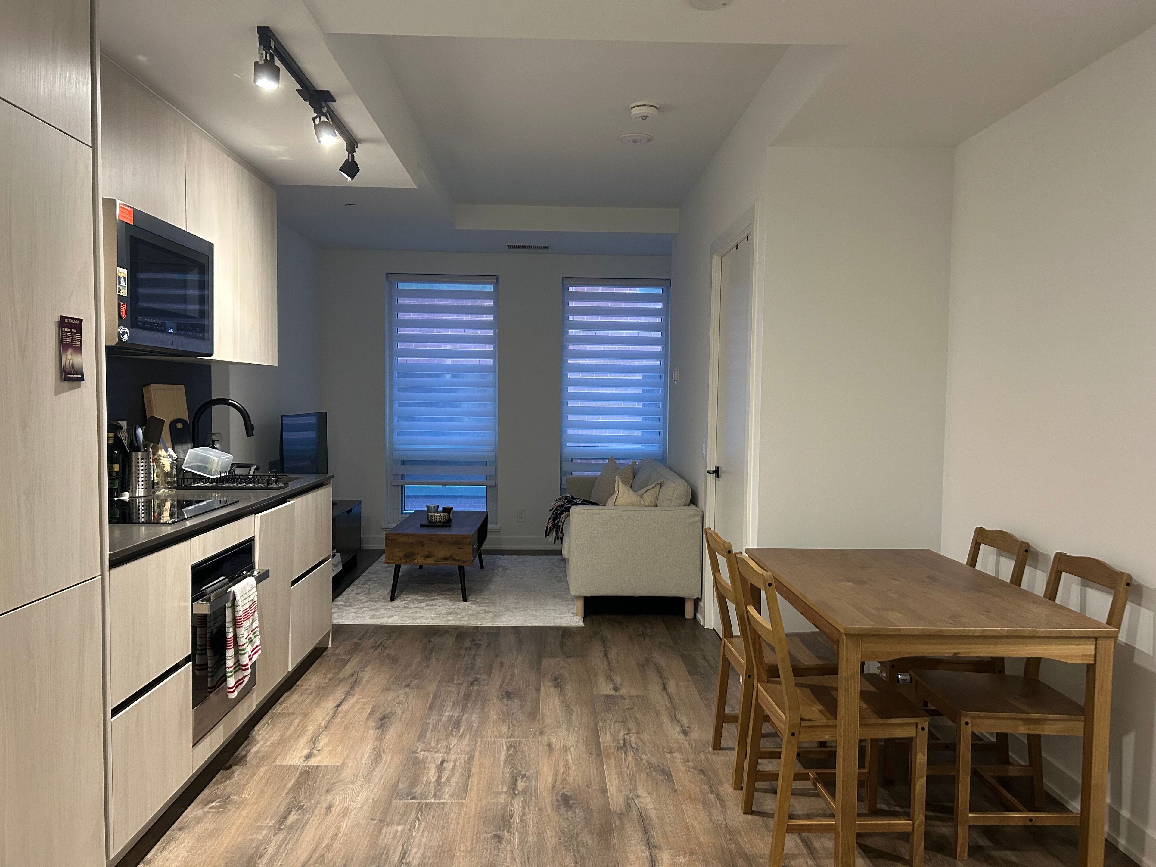 Welcome to maverick condos, located in the heart of toronto's vibrant entertainment district at 303-327 king st w. This modern 1-bedroom, 1-bathroom suite features a bright open-concept layout with a sleek contemporary kitchen, upgraded countertops, and large windows offering abundant natural light. Blinds are installed throughout for added comfort and privacy. The functional layout includes a spacious bedroom and a stylish 4-piece bathroom, ideal for professionals or students. Enjoy a premium downtown lifestyle just steps to tiff bell lightbox, restaurants, shopping, and cultural attractions. Close to cn tower, scotiabank arena, and the waterfront. Excellent transit access with st. Andrew subway station just minutes away and streetcar access at your doorstep, providing direct connectivity to union station, the financial district, and billy bishop airport. Conveniently located near university of toronto, toronto metropolitan university, and george brown college.