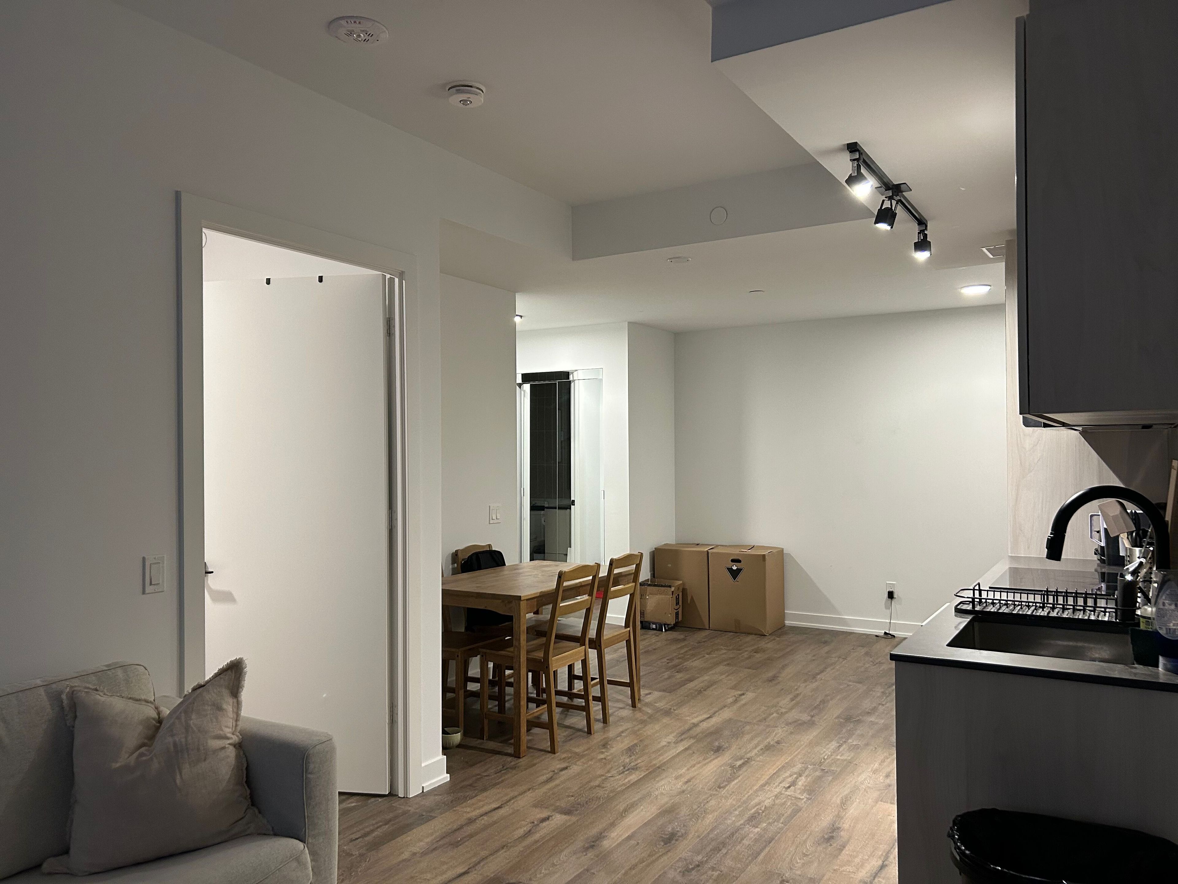 • Bright open-concept layout with large windows for natural light.