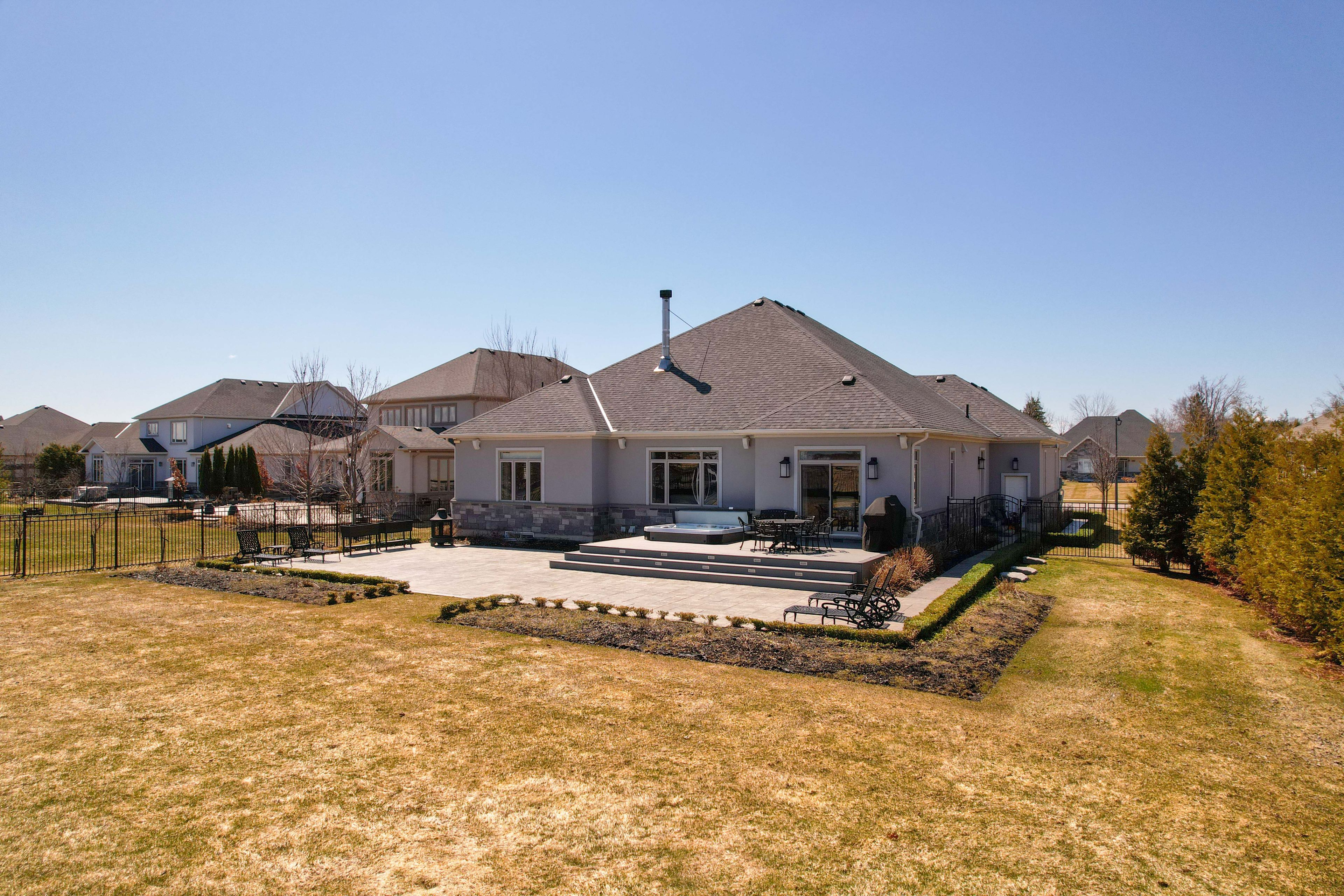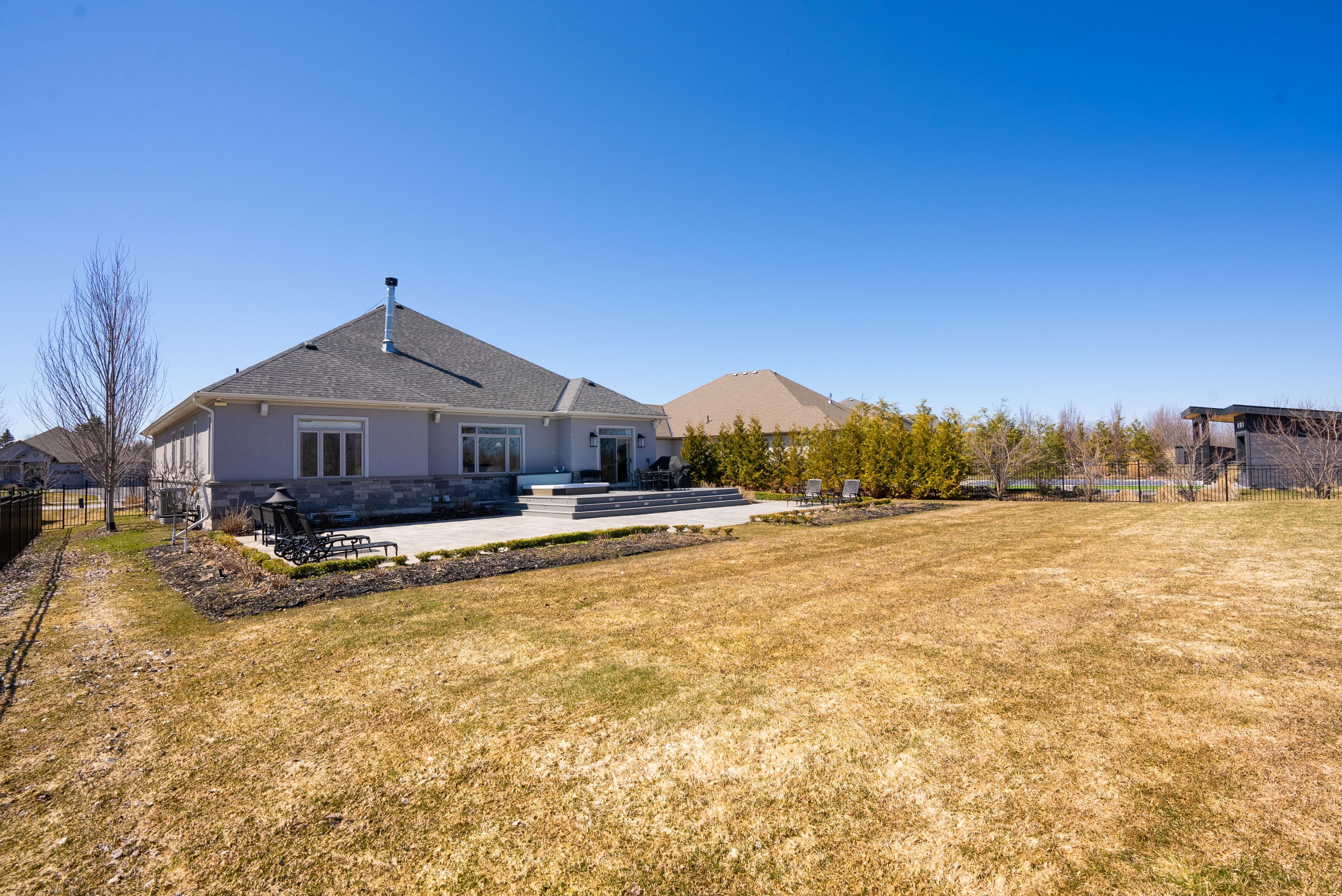 327 sunnybrae avenue presents a custom stucco and stone bungalow of exceptional finish and thoughtful design, set on a private half-acre lot with no rear neighbours in one of innisfil's most sought-after communities. Offering over 5,100 square feet of fully finished living space, this home delivers luxury, function, and privacy in equal measure. The main level features an open-concept great room with vaulted ceilings, hardwood flooring, and a wood-burning stone fireplace as its centrepiece. The gourmet kitchen is outfitted with a thermador gas range, walk-in pantry, wine fridge, oversized island, and custom glass-front display cabinetry above the separate bar area. The primary suite includes a walk-in closet and a five-piece heated-floor ensuite. Two additional bedrooms, main floor laundry, a mudroom with separate side entry, and a heated triple-car garage with epoxy flooring and lift-capable ceiling height round out the main floor. Downstairs, nine-foot ceilings set the tone for a spectacular lower level featuring engineered hardwood throughout, a large recreation room with gas fireplace, a built-in projector and electric screen for game days and movie nights, a dedicated gym, and a full kitchenette. Two bedrooms share a four-piece bathroom with heated floors and a private entrance through the garage makes this level a seamless fit for in-law or extended family living. Outside, mature trees line the rear of the lot, providing a natural backdrop to the stamped concrete patios and walkways, composite deck, eight-person hot tub, wrought iron fencing, in-ground irrigation, and impeccably maintained professional landscaping. There is also room for an in ground pool (permit is in place). Meticulously maintained, thoughtfully upgraded, and ready for its next chapter this is the one worth seeing in person.