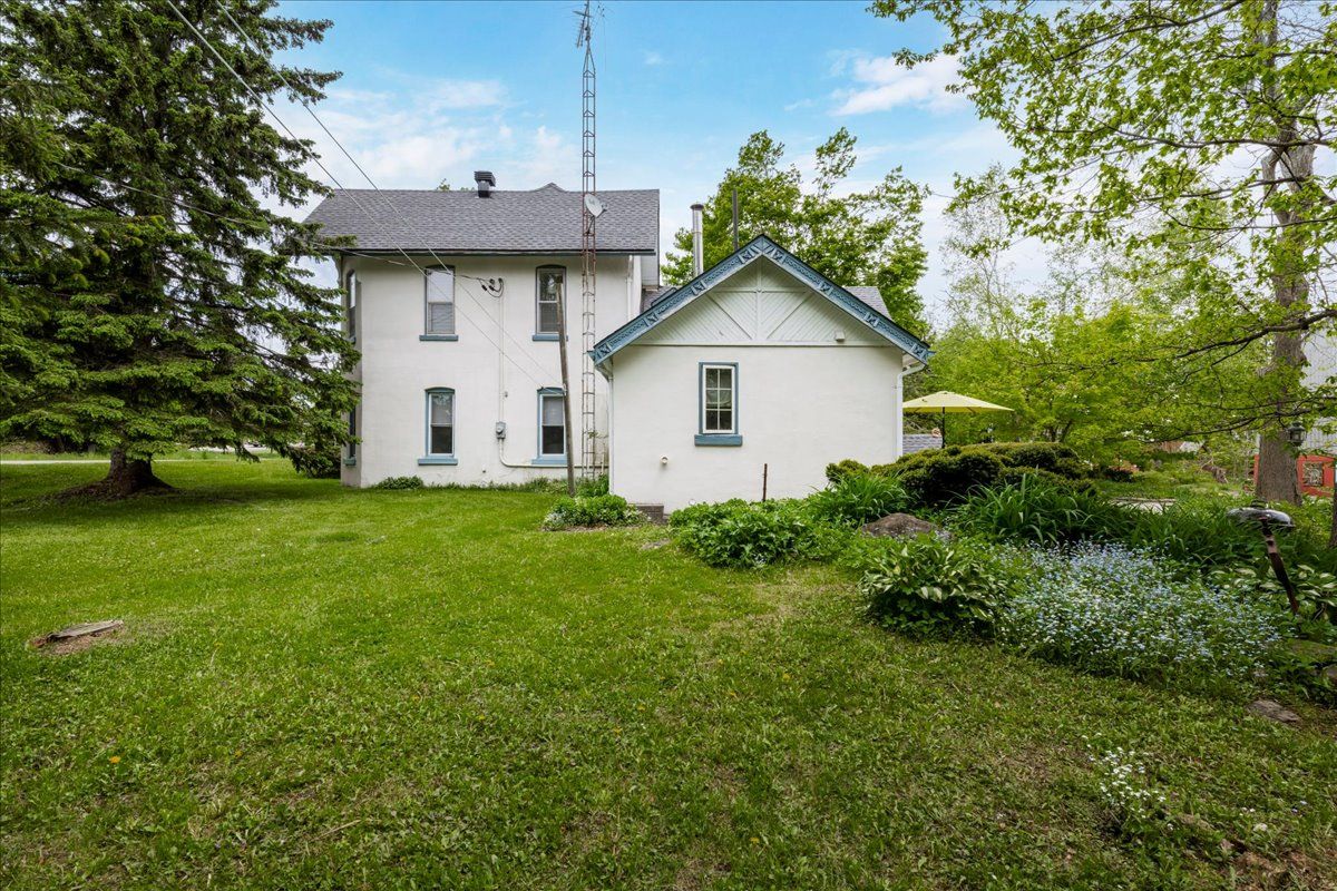 Step into a home where history and charm meet everyday comfort. Nestled on a picturesque 1-acre lot in the village of jarratt, this enchanting 4-bedroom, 2-bathroom property dates back to the 1830s and tells a story at every turn. A striking gothic-style addition, built in 1910, once served as the local post office and general store-adding a unique layer of character you simply won't find elsewhere. Inside, original hardwood floors and the warm glow of an airtight wood stove create an inviting, timeless atmosphere. The spacious country kitchen is both functional and full of charm, featuring custom terracotta tile and plenty of room to gather. The main floor offers a bright living room with sweeping views of the surrounding landscape, along with a versatile den-perfect for a home office or guest space. Upstairs, two separate staircases lead to four sun-filled bedrooms and a beautifully appointed bathroom complete with a classic clawfoot soaker tub. Thoughtful updates bring peace of mind, including a new furnace (2020), drilled well, and roof (2024), along with a 200-amp service, backup generator, and access to bell fibe internet-blending rural tranquility with modern convenience. Outdoors, the property truly shines. Mature trees, lush gardens, and an interlocking stone patio create a private, peaceful setting. The impressive 50' x 20' barn offers two full levels with hydro, a gas heater, cold running water, and an insulated sliding glass door-ideal for a workshop, studio, or hobby space. A separate drive shed with a gas-powered reduction kiln adds even more versatility. Located just minutes from town, major highways, and nearby trails, this one-of-a-kind property offers the perfect balance of history, nature, and modern living. A rare opportunity to own a truly special piece of jarratt.