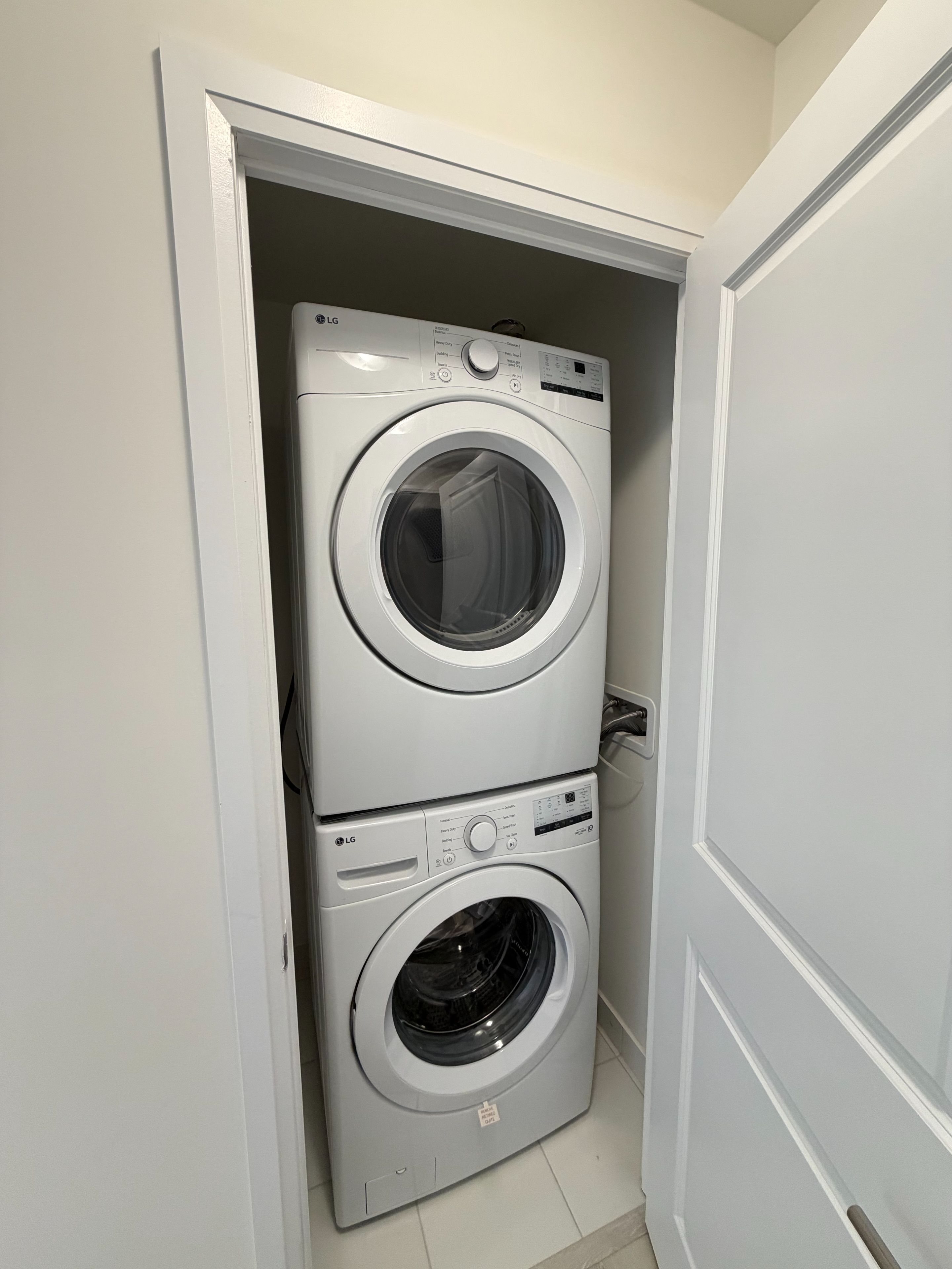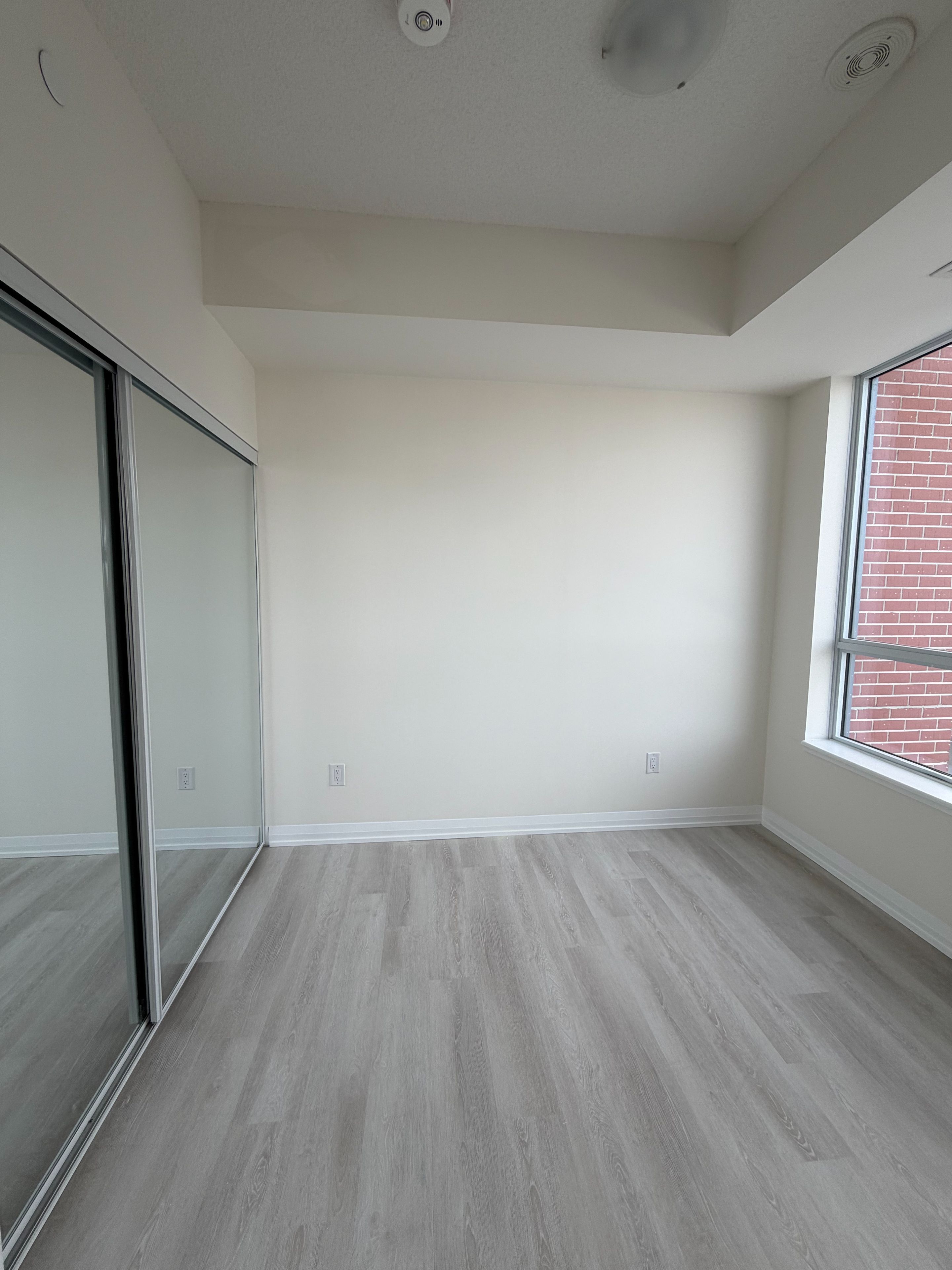 **assignment sale** - brand new corner unit by pinnacle in the sheppard & warden. This north east-facing 2-bedroom, 2-bath suite in the east tower offers 897 sq. Ft. Of interior space plus a 66 sq. Ft. Balcony for a total of 945 sq. Ft. Large windows bring in plenty of natural light throughout the unit. The open-concept living and dining area features wide plank laminate flooring and a walkout to the private balcony. The kitchen includes quartz countertops, contemporary cabinetry, glass tile backsplash, under-cabinet lighting, and upgraded full sized stainless steel appliances. This corner layout provides spacious bedrooms, offering comfortable living and good separation between rooms. The primary bedroom includes a walk-in closet and a 3-piece ensuite with a glass walk-in shower. The second bedroom features a large window and closet space. A second full bathroom includes a deep bathtub. A dedicated laundry room with full-size lg washer and dryer adds convenience rarely found in condos of this size. Building amenities include an outdoor pool, hot tub, fitness centre, yoga studio, sports lounge, kids play area, library, outdoor terrace with bbqs, party room, boardroom, and 24-hour concierge. Convenient location with quick access to highways 401 and 404, ttc transit nearby, and easy access to don mills subway station. Walking distance to grocery stores, restaurants, parks, schools, shopping and dining options. Parking & locker are located close to elevator