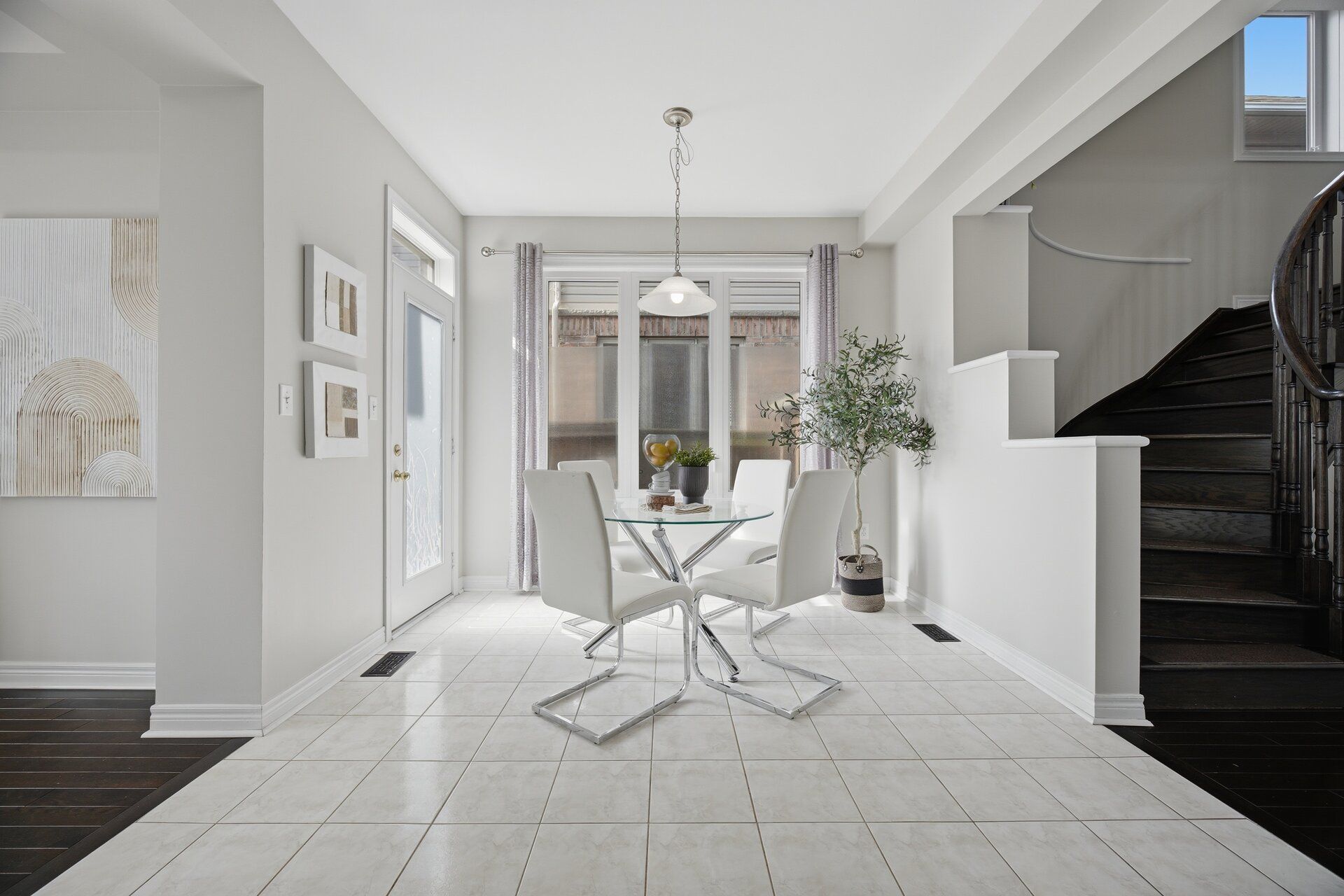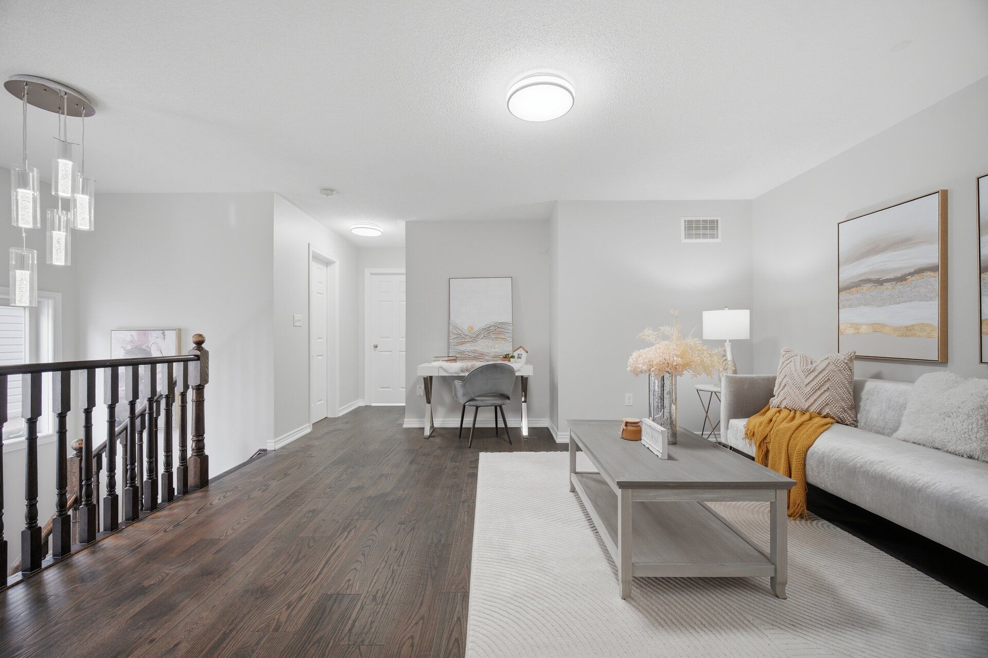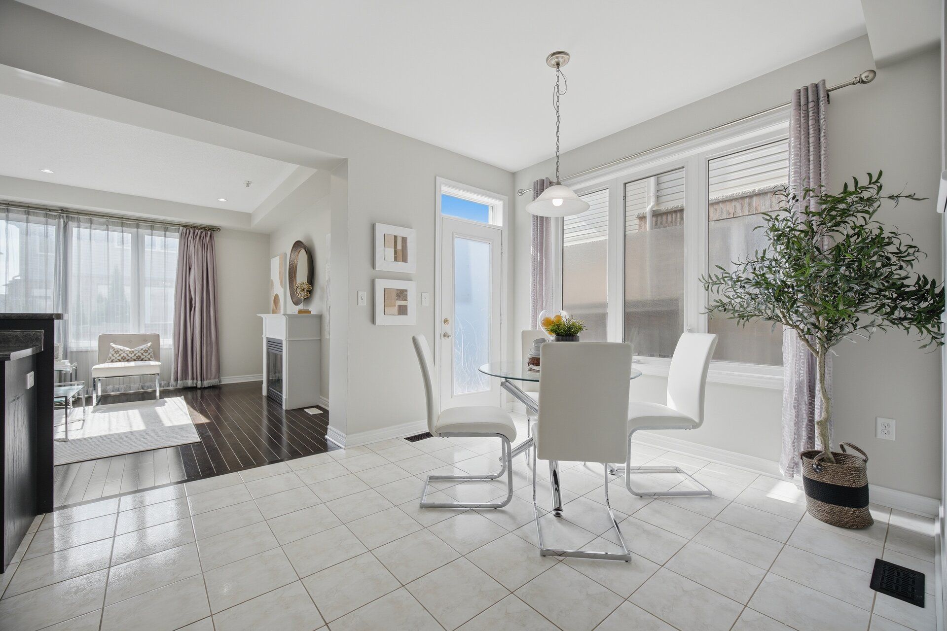 Nestled in a quiet enclave beside bronte creek provincial park, this freehold end-unit townhome by the prestigious builder monarch offers the perfect blend of comfort, style, and natural surroundings. Enjoy a peaceful, family-friendly street just steps from scenic trails, conservation areas, and abundant green space. Boasting over 2,200 sq ft of thoughtfully designed living space, this bright and inviting home is filled with natural light and quality upgrades throughout. The 9-foot ceilings on the main level create an airy, open feel, complemented by elegant hardwood flooring and warm pot lighting. The upgraded kitchen is both functional and stylish, featuring stainless steel appliances, a breakfast bar, and ample cabinetry-ideal for everyday living and entertaining. Upstairs, newly installed engineered wood flooring provides a modern, carpet-free environment. The spacious primary bedroom serves as a private retreat, complete with a walk-in closet and a 5-piece ensuite. A versatile second-floor den offers additional space for a home office or reading nook. The partially finished basement includes a 3-piece bathroom, adding flexibility for future living space. Step outside to a private backyard deck, perfect for relaxing or hosting gatherings. Conveniently located close to top-rated schools, parks, transit, major highways, shopping, restaurants, and healthcare facilities, this home delivers an exceptional lifestyle in a highly desirable community.