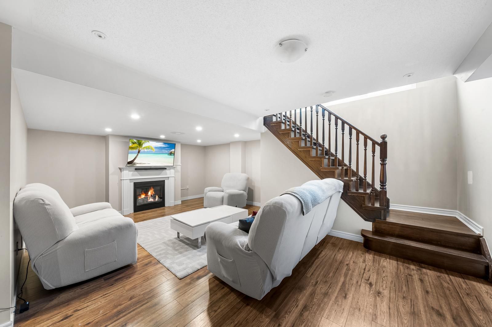 • Finished basement with a gas fireplace for cozy family time or home office.