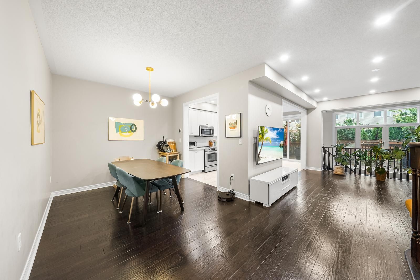 Stunning 3-bedroom, 4-bathroom family townhome in prime oakville location. Welcome to this beautifully upgraded brick townhome offering a spaciously designed living space, perfect for growing families. Step inside to a bright, open-concept layout filled with natural light from large windows and a skylight. The 9-foot ceilings enhance the sense of space, creating a warm and inviting atmosphere throughout. The modern kitchen is the heart of the home, featuring stainless steel appliances, quartz countertops, a breakfast bar, and plenty of storage-ideal for busy mornings and family gatherings. Hardwood flooring and pot lights throughout add both style and comfort. Upstairs, the spacious primary bedroom retreat offers a private 4-piece ensuite and two walk-in closets, providing the perfect space to unwind. Two additional generously sized bedrooms and multiple bathrooms ensure comfort and convenience for the whole family. The fully finished basement with a cozy gas fireplace offers flexible living space-perfect for a family room, kids' play area, or home office. Enjoy outdoor living in the private backyard with a deck ideal for summer bbqs and relaxing evenings. Located in a highly desirable, family-friendly neighbourhood just minutes to top-rated schools, parks, trails, the hospital, shopping, and restaurants. A perfect place to call home for families seeking comfort, convenience, and community.