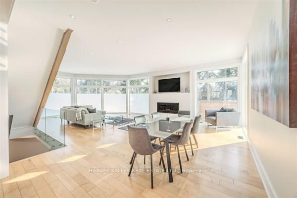 Welcome to 3279 lakeshore road, a stunning west coast-inspired custom residence offering modern elegance in a prime lakeside location. Thoughtfully designed with both style and functionality in mind, this home delivers a seamless blend of comfort and sophistication. The open-concept main floor is highlighted by floor-to-ceiling windows that flood the space with natural light, complemented by desirable southwesterly exposure and tranquil views. Rich hardwood flooring, sleek glass railings, and refined architectural details create a warm yet contemporary atmosphere. The custom eat-in kitchen is perfect for everyday living and entertaining, featuring quartz countertops, stainless steel appliances, ample cabinetry, and a walkout to a private deck-ideal for outdoor enjoyment. Upstairs, you'll find three spacious bedrooms, including a luxurious primary retreat with a spa-inspired five-piece ensuite, along with an additional beautifully appointed four-piece bathroom. The lower level offers a versatile additional bedroom and living space, while a private elevator adds convenience and flexibility throughout. Situated just steps from parks, trails, and the lake, and minutes to top-rated schools, shopping, dining, and major commuter routes, this exceptional home also offers thoughtful wheelchair accessibility, making it a rare and versatile opportunity in one of burlington's most sought-after neighbourhoods.