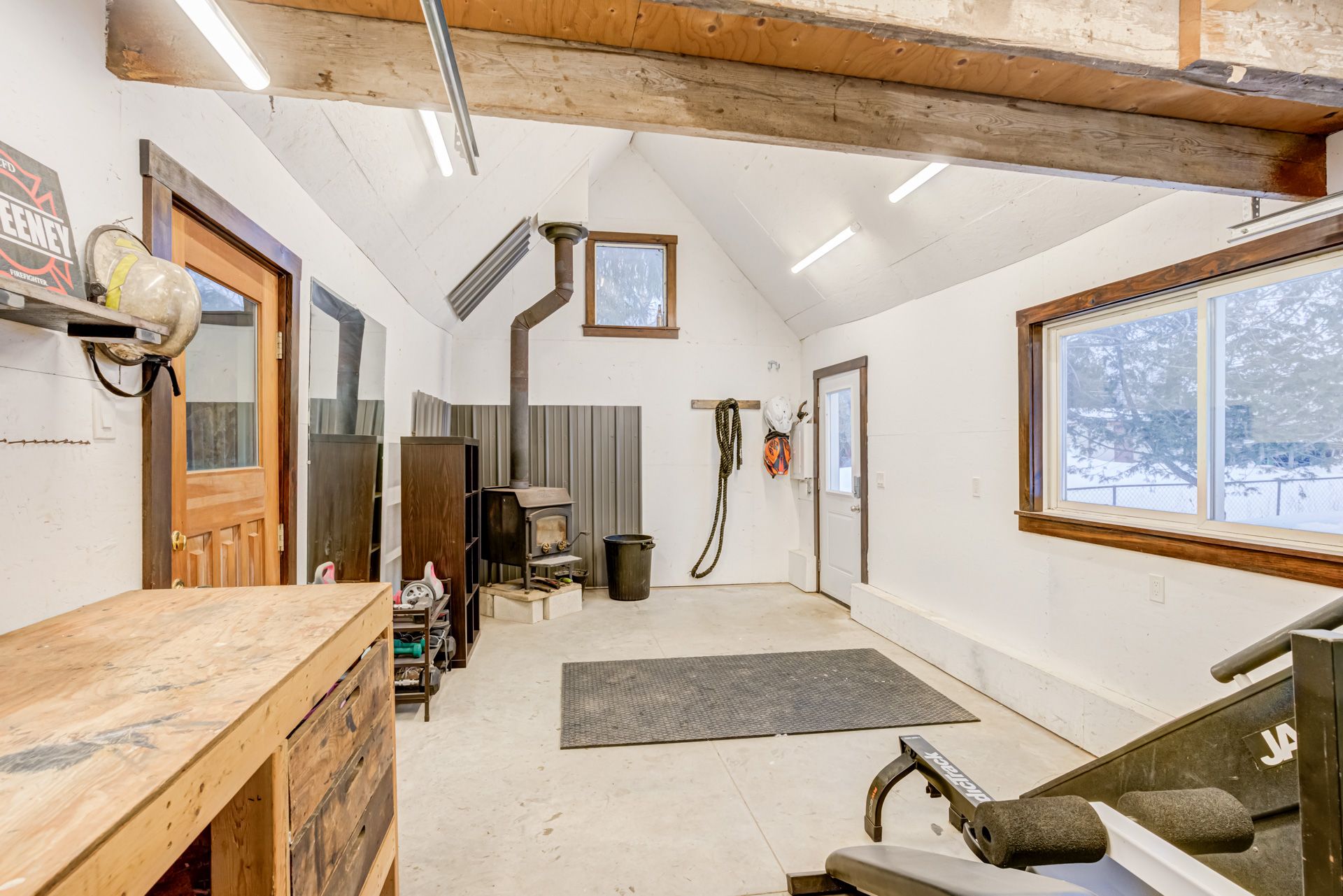• Detached shop with woodstove, ideal for hobbies or additional workspace.